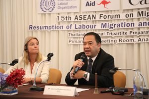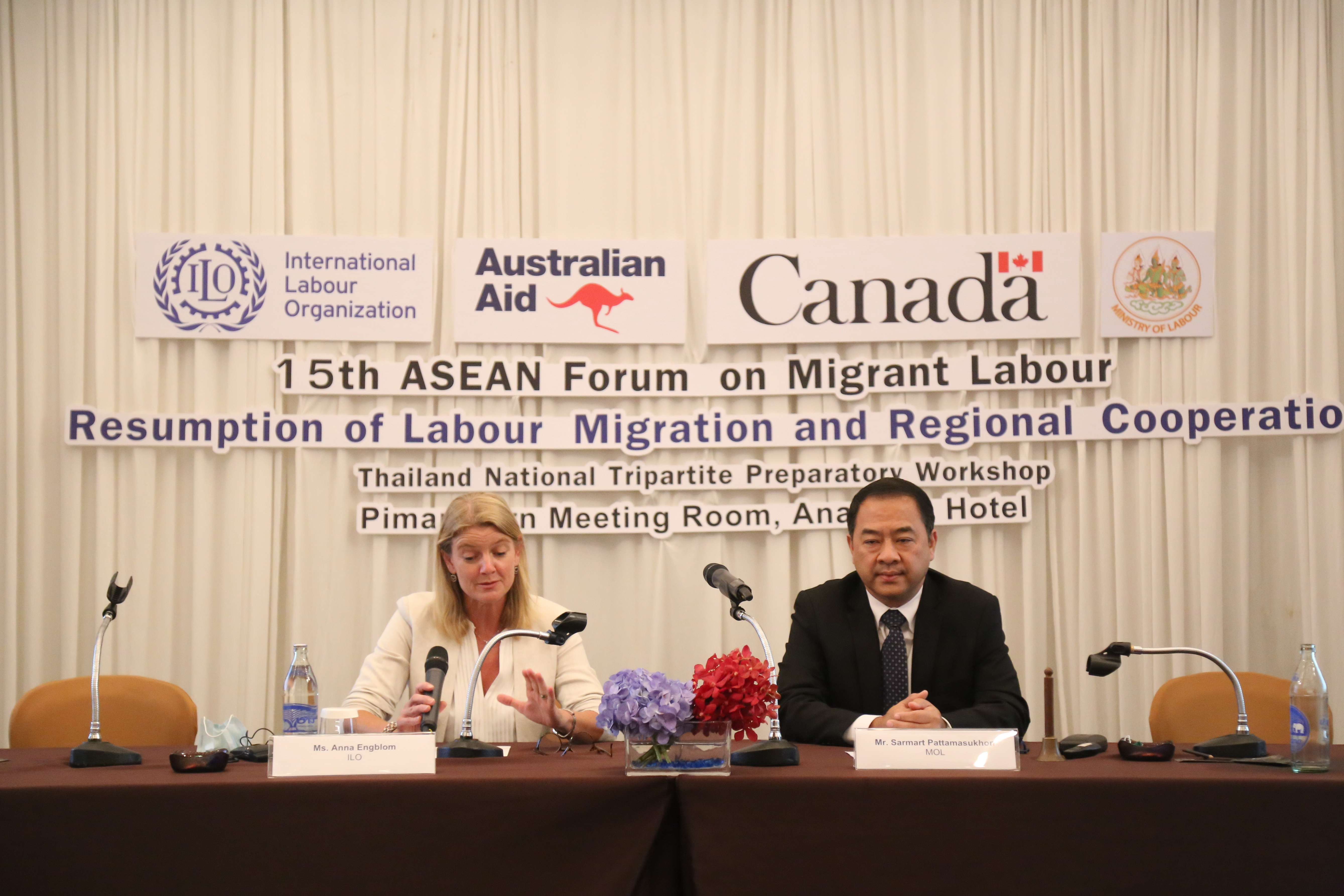 วันที่ 19 กันยายน 2565 เวลา 17.00 น. นายสมาสภ์ ปัทมะสุคนธ์ ผู้ช่วยปลัดกระทรวงแรงงาน เป็นประธานปิดการประชุมเชิงปฏิบัติการไตรภาคีเพื่อเตรียมความพร้อมระดับชาติ สำหรับการประชุมอาเขียนว่าด้วยแรงงานต่างด้าว (AFML) ครั้งที่ 15 ณ ห้องประชุมพิมานแมน ชั้น 2 โรงแรมอนันตรา สยาม กรุงเทพฯ โดยกล่าวว่า ผู้เข้าร่วมประชุมซึ่งประกอบไปด้วยผู้แทนกระทรวงแรงงาน และภาครัฐส่วนที่เกี่ยวข้อง ผู้แทนองค์การนายจ้างและลูกจ้าง ภาคประชาสังคม และองค์การแรงงานระหว่างประเทศ ได้แลกเปลี่ยนข้อมูลและแนวปฏิบัติที่ดีในการคุ้มครองสิทธิของแรงงานต่างด้าวในประเทศไทย โดยที่ประชุมได้อภิปรายใน 2 หัวข้อย่อย ได้แก่ ได้แก่ การฟื้นฟูเศรษฐกิจและการโยกย้ายถิ่นฐานของแรงงานและ และการคุ้มครองสิทธิเพื่อให้เกิดการพัฒนาสูงสุดต่อการโยกย้ายถิ่นของแรงงาน: ผลกระทบต่อแรงงานข้ามชาติจากสถานการณ์การแพร่ระบาดของโรคโควิด-19 ซึ่งผลลัพธ์ที่ได้จากการประชุมเชิงปฏิบัติการในครั้งนี้ คือข้อเสนอแนะของประเทศไทย สำหรับการประชุมอาเซียนว่าด้วยแรงงานต่างด้าว (AFML) ครั้งที่ 15 ระหว่างวันที่ 19 – 20 ตุลาคม 2565 ณ ราชอาณาจักรกัมพูชา ซึ่งประกอบไปด้วยรายละเอียดผลกระทบที่แรงงานต่างด้าวได้รับจากการระบาดของโรคติดเชื้อโควิด-19 การดำเนินงานของภาคส่วนที่เกี่ยวข้องทั้งภาครัฐและเอกชน รวมทั้งข้อเสนอแนะเพื่อให้หน่วยงานที่เกี่ยวข้องได้วางแผนจัดทำนโยบายในประเด็นด้านแรงงานต่างด้าวเพื่อรองรับการเกิดโรคระบาดในอนาคต ทั้งนี้ ผู้แทนของประเทศไทยจะได้นำเสนอข้อเสนอแนะดังกล่าวในระหว่างการประชุม AFML ที่จะจัดขึ้นโดย ราชอาณาจักรกัมพูชา ในวันที่ 19 – 20 ตุลาคม 2565 ภายใต้หัวข้อ การฟื้นฟูการโยกย้ายถิ่นฐานของแรงงานและการเสริมสร้างความร่วมมือด้านแรงงานในระดับภูมิภาค