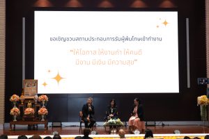 วันที่ 10 กันยายน 2568 เวลา 09.00 น. นายสมาสภ์ ปัทมะสุคนธ์ รองปลัดกระทรวงแรงงาน มอบหมายให้ นางสาวกรจิรัฏฐ์ พงจันทร์ศธร ผู้ช่วยปลัดกระทรวงแรงงาน เข้าร่วมการประชุมและเสวนา การส่งเสริมการทำงานในสถานประกอบการ และ Kick off Matching Job Platform ภายโต้โครงการกำลังใจในพระดำริ พระเจ้าหลานเธอพระองค์เจ้าพัชรกิติยาภา พร้อมร่วมเสวนา เรื่อง “โอกาสทำงานในสถานประกอบการของผู้ต้องราชทัณฑ์” โดยมี พลอากาศเอก สมคิด สุขบาง กรมวังผู้ใหญ่ประจำพระองค์ สมเด็จพระเจ้าลูกเธอ เจ้าฟ้าพัชรกิติยาภา นเรนทิราเทพยวดี กรมหลวงราชสาริณีสิริพัชร มหาวัชรราชธิดา รองประธานคณะกรรมการกองทุนกำลังใจในพระดำริพระเจ้าหลานเธอ พระองค์เจ้าพัชรกิติยาภา เป็นประธาน ณ ห้องประชุมออดิทอเรียม ขั้น 10 กระทรวงยุติธรรม ถนนแจ้งวัฒนะ กรุงเทพฯ