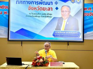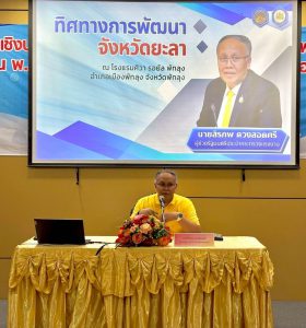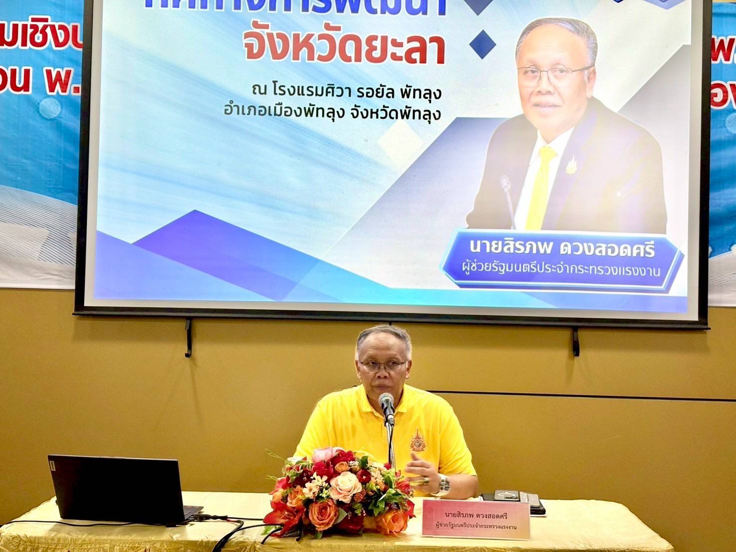 วันที่ 14 พฤษภาคม 2568 เวลา 17.00 น. นายสิรภพ ดวงสอดศรี ผู้ช่วยรัฐมนตรีประจำกระทรวงแรงงาน เป็นวิทยากรบรรยาย “ทิศทางการพัฒนาจังหวัดยะลา” ภายใต้โครงการประชุมเชิงปฏิบัติการทบทวนแผนพัฒนาจังหวัดยะลา พ.ศ. 2566 – 2570 ฉบับทบทวน พ.ศ. 2567 และแผนปฏิบัติราชการประจำปีของจังหวัดยะลา ประจำปีงบประมาณ พ.ศ. 2570 ณ โรงแรม ศิวา รอยัล จังหวัดพัทลุง