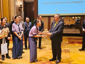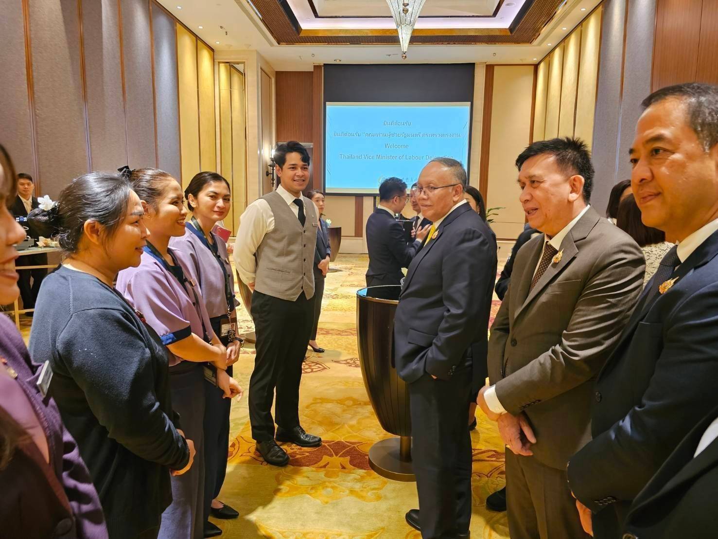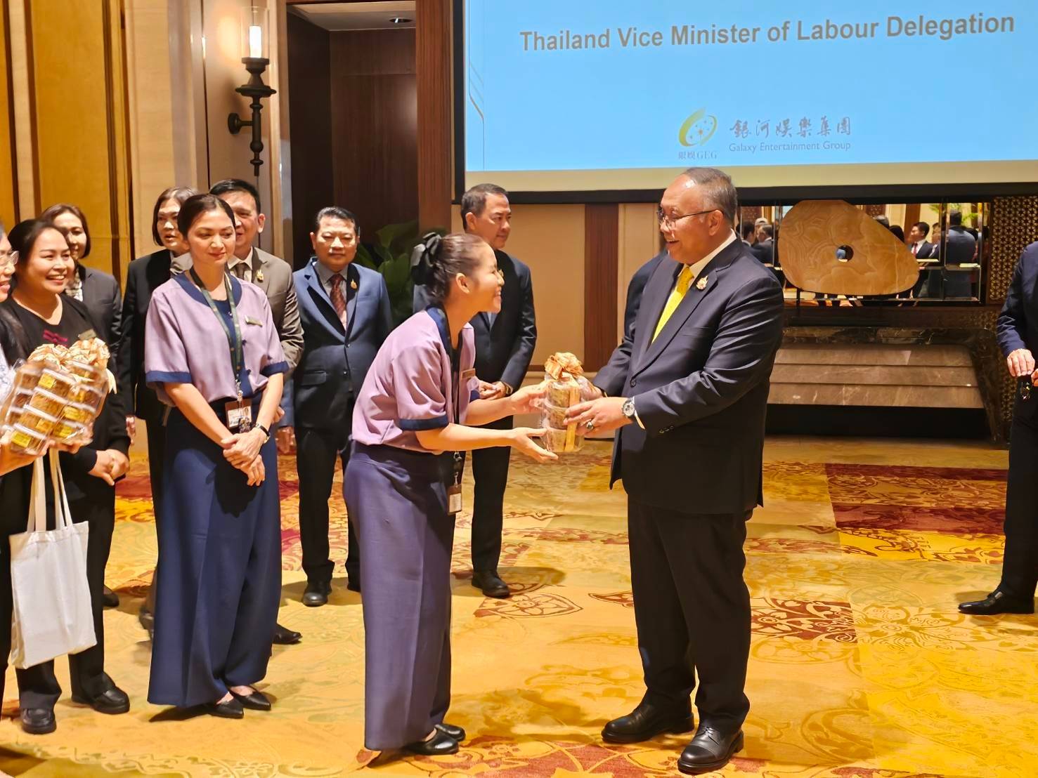 วันที่ 7 สิงหาคม 2567 เวลา 14.30 น. นายสิรภพ ดวงสอดศรี ผู้ช่วยรัฐมนตรีประจำกระทรวงแรงงาน พร้อมด้วย นายไพโรจน์ โชติกเสถียร ปลัดกระทรวงแรงงาน และผู้บริหารกระทรวงแรงงาน หารือข้อราชการ กับ Mrs.Eileen Lui ตำแหน่ง Group Director – Human Resources and Administration บริษัท Galaxy Entertainment Group มาเก๊า เกี่ยวกับแนวทางความร่วมมือและและปัญหาอุปสรรคการจัดส่งแรงงานโดยวิธีรัฐจัดส่ง ณ บริษัท Galaxy Entertainment Group พร้อมร่วมพบปะเยี่ยมให้กำลังใจแรงงานไทยที่ทำงานอยู่ในบริษัทฯ ดังกล่าวด้วย