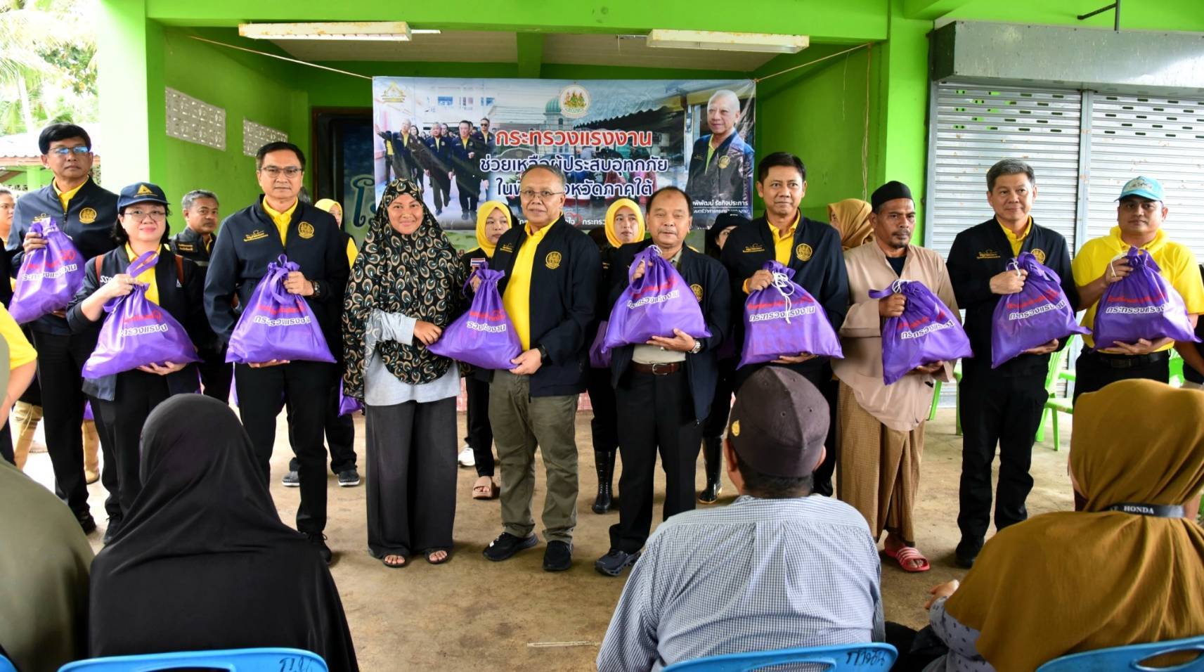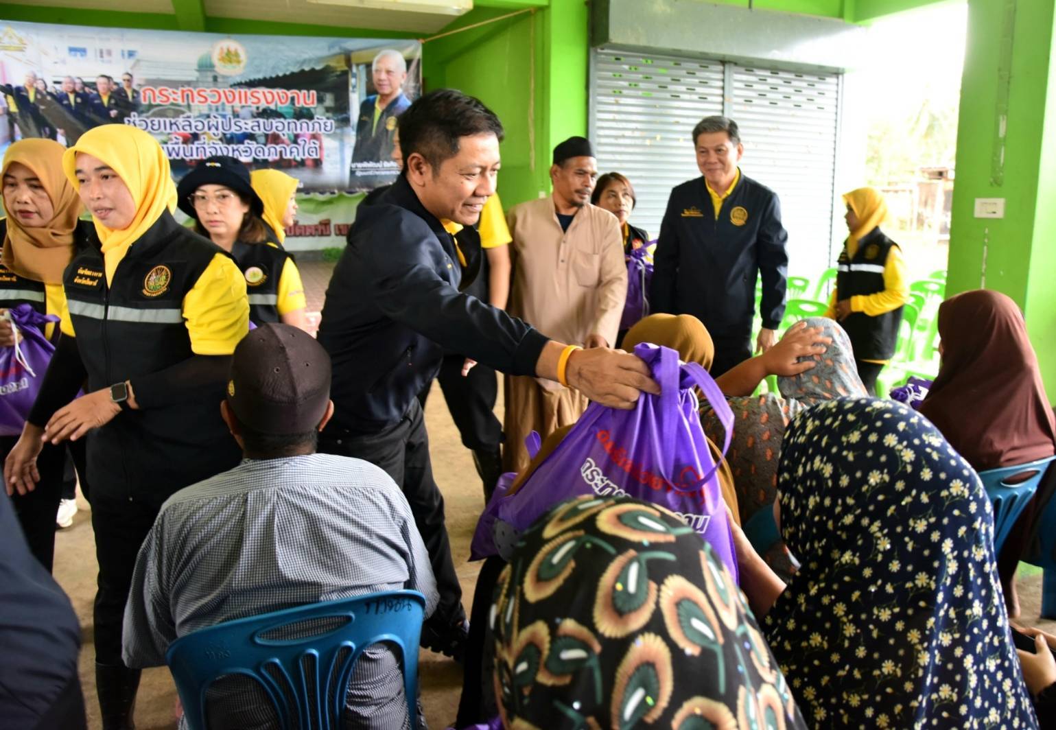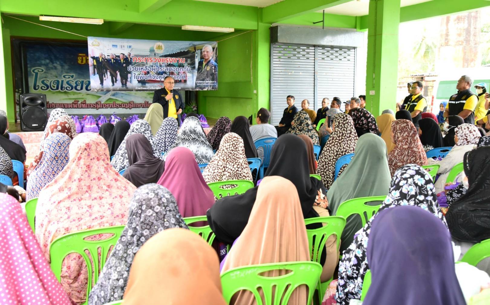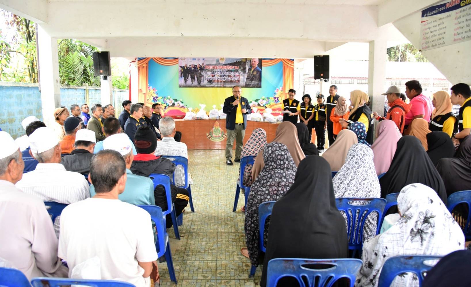 วันที่ 4 ธันวาคม 2567 นายพิพัฒน์ รัชกิจประการ รัฐมนตรีว่าการกระทรวงแรงงาน มอบ นายสิรภพ ดวงสอดศรี ผู้ช่วยรัฐมนตรีประจำกระทรวงแรงงาน ลงพื้นที่มอบถุงยังชีพช่วยเหลือแรงงานนอกระบบ ผู้ประกอบอาชีพอิสระ และประชาชนที่ได้รับผลกระทบจากอุทกภัยในพื้นที่จังหวัดปัตตานี ในการนี้ นายบุญสงค์ ทัพชัยยุทธ์ ปลัดกระทรวงแรงงาน มอบหมายให้ นายพิเชษฐ์ ทองพันธ์ ผู้ตรวจราชการกระทรวงแรงงาน พร้อมด้วย นายศักดินาถ สนธิศักดิ์โยธิน ผู้ช่วยปลัดกระทรวงแรงงาน ผู้บริหารกระทรวงแรงงาน ร่วมลงพื้นที่ โดยมี หัวหน้าส่วนราชการสังกัดกระทรวงแรงงานจังหวัดปัตตานี องค์กรปกครองส่วนท้องถิ่น ผู้นำชุมชน และประชาชนในพื้นที่ร่วมให้การต้อนรับ โดย นายสิรภพ และคณะ ได้ลงพื้นที่มอบถุงยังชีพ จำนวน 4 จุด ประกอบด้วย จุดที่ 1 โรงเรียนบ้านบาโงมูลง หมู่ที่ 6 ตำบลเตราะบอน อำเภอสายบุรี มอบถุงยังชีพ จำนวน 100 ชุด จุดที่ 2. ศูนย์พักพิงโรงเรียนบ้านหัวคลอง หมู่ที่ 4 ตำบลบ้านนอก อำเภอปะนาเระ มอบถุงยังชีพ จำนวน 200 ชุด จุดที่ 3. ที่ทำการผู้ใหญ่บ้าน หมู่ที่ 1 ตำบลเกาะเปาะ อำเภอหนองจิก มอบถุงยังชีพ จำนวน 100 ชุด และ จุดที่ 4 หมู่ที่ 4 ตำบลดอนรัก อำเภอหนองจิก มอบถุงยังชีพ จำนวน 100 ชุด รวมจำนวน ทั้งสิ้น 500 ชุด