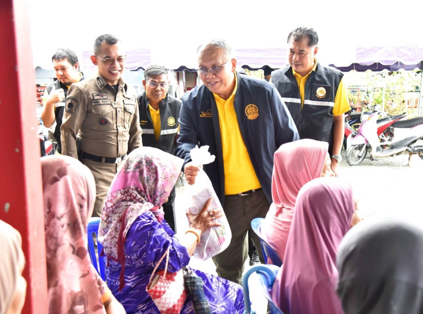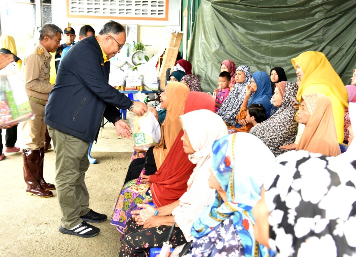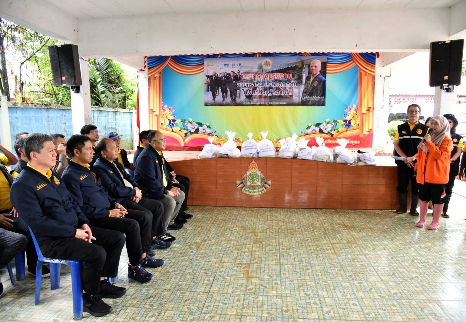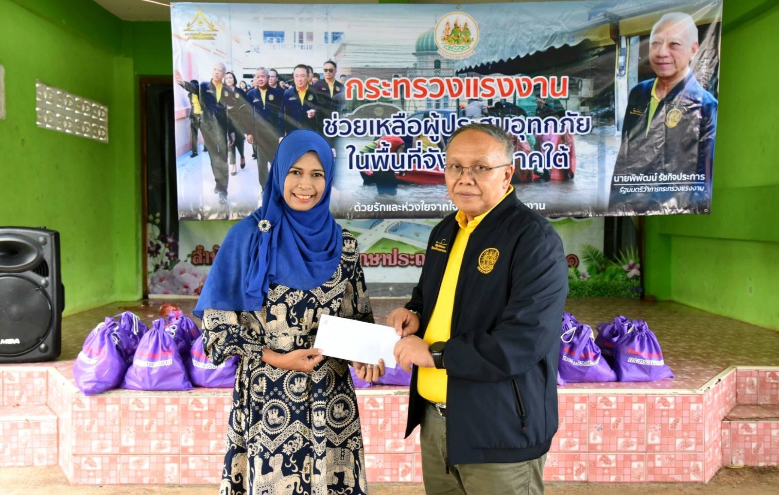 วันที่ 4 ธันวาคม 2567 นายพิพัฒน์ รัชกิจประการ รัฐมนตรีว่าการกระทรวงแรงงาน มอบ นายสิรภพ ดวงสอดศรี ผู้ช่วยรัฐมนตรีประจำกระทรวงแรงงาน ลงพื้นที่มอบถุงยังชีพช่วยเหลือแรงงานนอกระบบ ผู้ประกอบอาชีพอิสระ และประชาชนที่ได้รับผลกระทบจากอุทกภัยในพื้นที่จังหวัดปัตตานี ในการนี้ นายบุญสงค์ ทัพชัยยุทธ์ ปลัดกระทรวงแรงงาน มอบหมายให้ นายพิเชษฐ์ ทองพันธ์ ผู้ตรวจราชการกระทรวงแรงงาน พร้อมด้วย นายศักดินาถ สนธิศักดิ์โยธิน ผู้ช่วยปลัดกระทรวงแรงงาน ผู้บริหารกระทรวงแรงงาน ร่วมลงพื้นที่ โดยมี หัวหน้าส่วนราชการสังกัดกระทรวงแรงงานจังหวัดปัตตานี องค์กรปกครองส่วนท้องถิ่น ผู้นำชุมชน และประชาชนในพื้นที่ร่วมให้การต้อนรับ โดย นายสิรภพ และคณะ ได้ลงพื้นที่มอบถุงยังชีพ จำนวน 4 จุด ประกอบด้วย จุดที่ 1 โรงเรียนบ้านบาโงมูลง หมู่ที่ 6 ตำบลเตราะบอน อำเภอสายบุรี มอบถุงยังชีพ จำนวน 100 ชุด จุดที่ 2. ศูนย์พักพิงโรงเรียนบ้านหัวคลอง หมู่ที่ 4 ตำบลบ้านนอก อำเภอปะนาเระ มอบถุงยังชีพ จำนวน 200 ชุด จุดที่ 3. ที่ทำการผู้ใหญ่บ้าน หมู่ที่ 1 ตำบลเกาะเปาะ อำเภอหนองจิก มอบถุงยังชีพ จำนวน 100 ชุด และ จุดที่ 4 หมู่ที่ 4 ตำบลดอนรัก อำเภอหนองจิก มอบถุงยังชีพ จำนวน 100 ชุด รวมจำนวน ทั้งสิ้น 500 ชุด