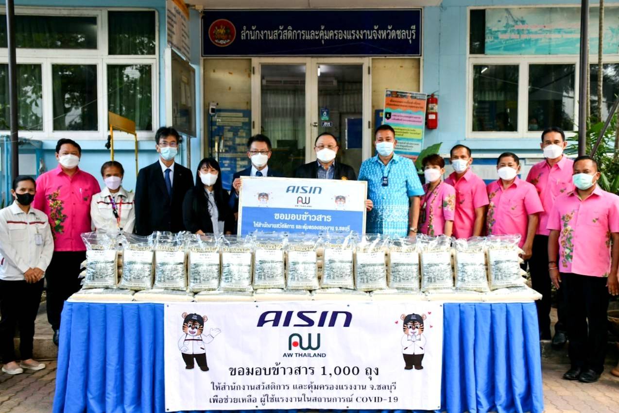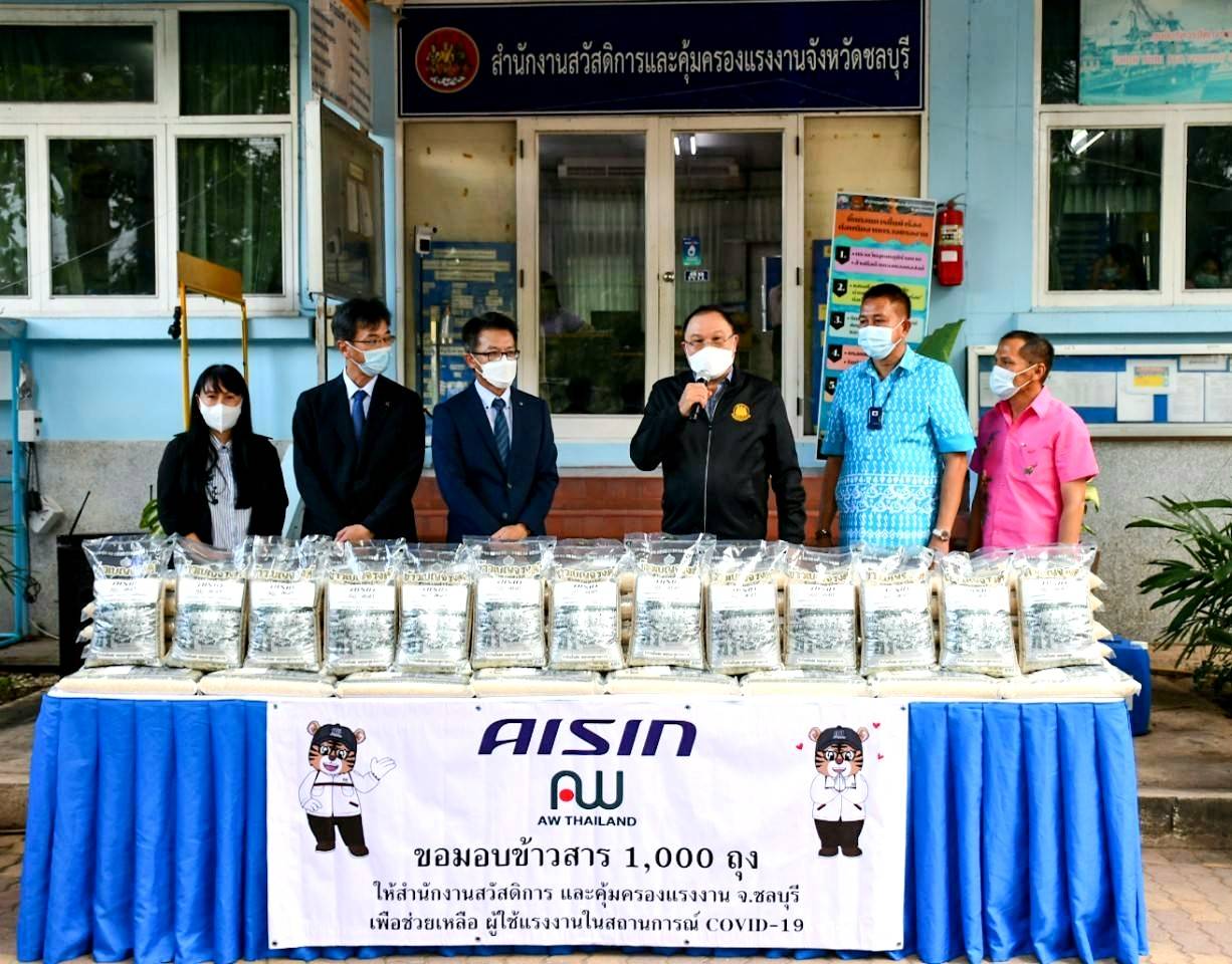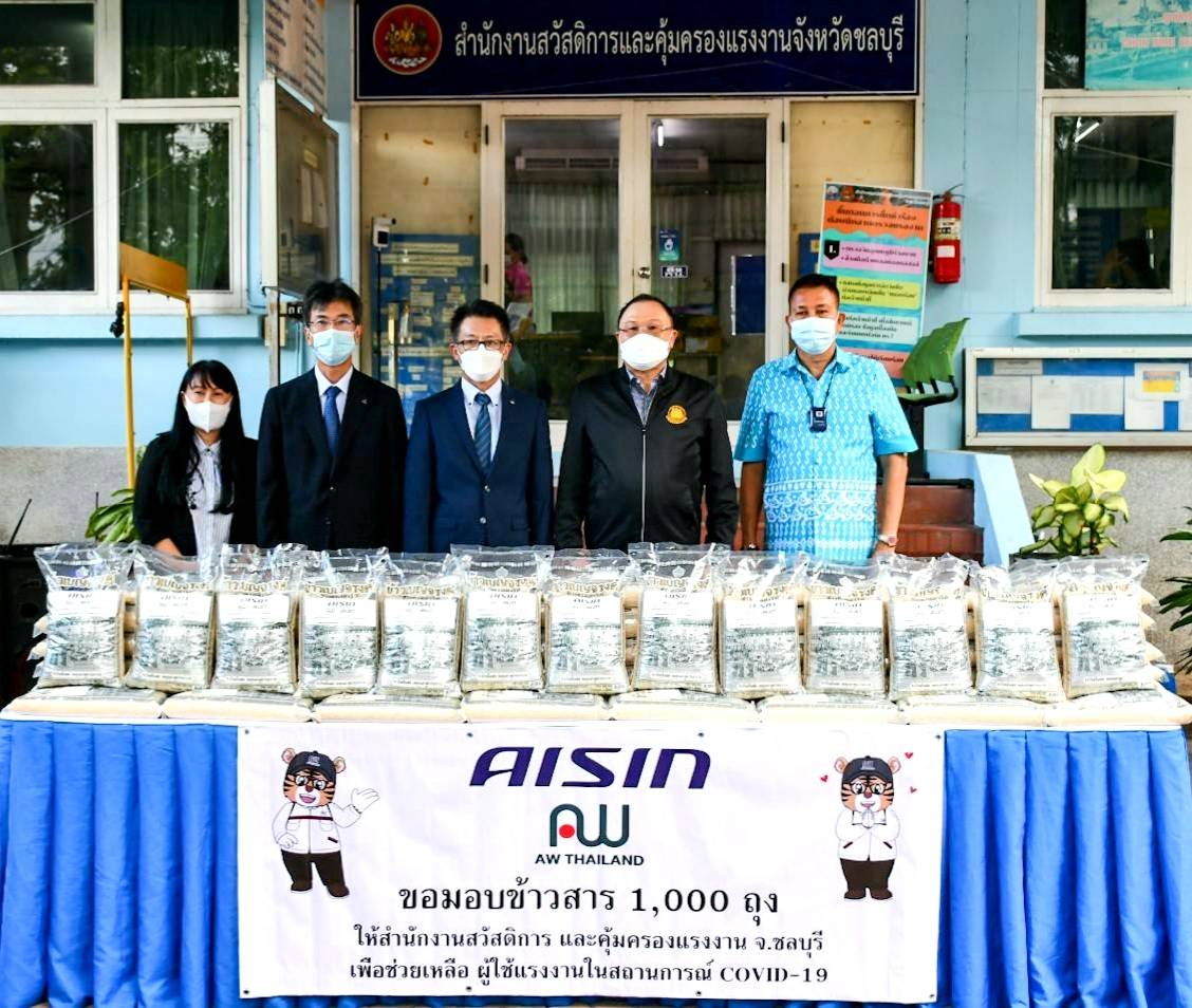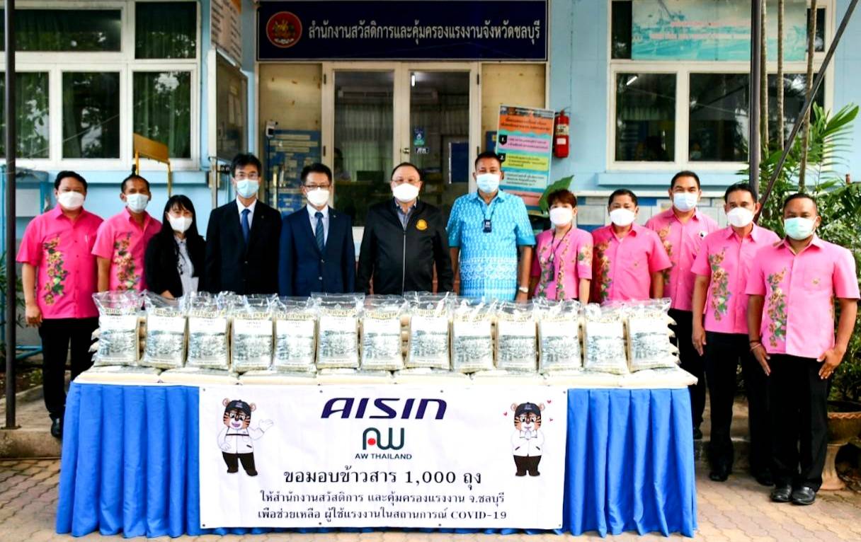 วันที่ 25 มีนาคม 2565 เวลา 14.00 น. นายสุรชัย ชัยตระกูลทอง ผู้ช่วยรัฐมนตรีประจำกระทรวงแรงงาน รับมอบข้าวสารจาก Mr. Hiroyuki Hasegawa ประธานบริษัท AW (THAILAND) จำกัด ขนาด 5 กิโลกรัม จำนวน 1,000 ถุง เข้าร่วมโครงการกระทรวงแรงงานช่วยเหลือผู้ป่วยติดเชื้อโควิด 19 ของนายสุชาติ ชมกลิ่น รัฐมนตรีว่าการกระทรวงแรงงาน รวมถึงได้มีโอกาสช่วยเหลือผู้ป่วยติดเชื้อโควิด 19 เพื่อบรรเทาความยากลำบาก และเป็นประโยชน์แก่ผู้ใช้แรงงานที่เป็นกำลังสำคัญในการขับเคลื่อนธุรกิจ และเศรษฐกิจของไทย โดยมี นายธวัชชัย ศรีทอง ผู้ตรวจราชการกระทรวงมหาดไทย ร่วมรับมอบข้าวสารในครั้งนี้ด้วย ณ สำนักงานสวัสดิการและคุ้มครองแรงงานจังหวัดชลบุรี อำเภอศรีราชา จังหวัดชลบุรี