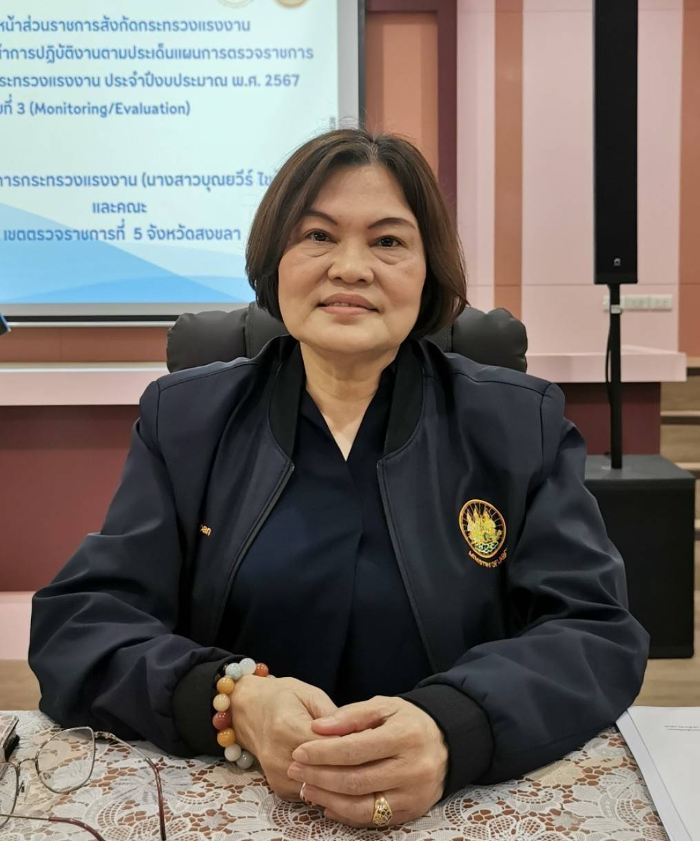 วันที่ 4 กันยายน 2567 เวลา 10.00 น. นางสาวบุณยวีร์ ไขว้พันธุ์ ผู้ตรวจราชการกระทรวงแรงงาน พร้อมด้วย นางสาวอาภากร ว่องเขตกร ผู้ตรวจราชการกรม กรมพัฒนาฝีมือแรงงาน ประชุมหัวหน้าส่วนราชการสังกัดกระทรวงแรงงานจังหวัดสงขลา เพื่อตรวจประเมินผลการปฏิบัติงานตามแผนการตรวจราชการของผู้ตรวจราชการประจำปีงบประมาณ พ.ศ. 2567 รอบที่ 3 และตรวจติดตามการขับเคลื่อนเร่งรัดการจัดระบบแรงงานต่างด้าวในพื้นที่ 22 จังหวัดชายทะเล ณ ห้องประชุมสำนักงานจัดหางานจังหวัดสงขลา