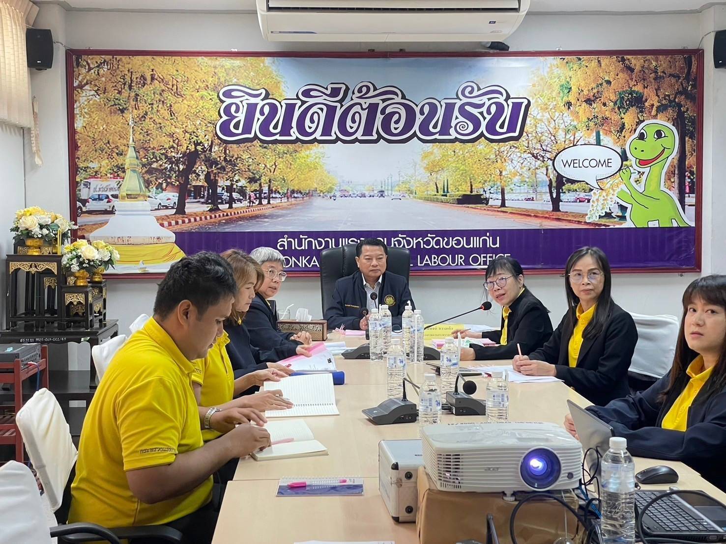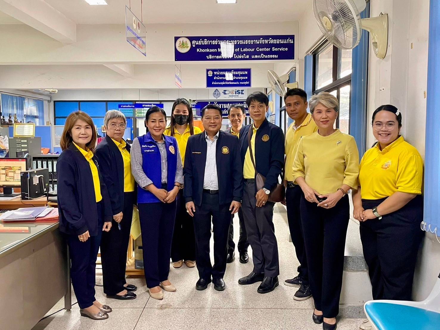 จากนั้นในช่วงบ่าย ผู้ตรวจราชการกระทรวงแรงงาน ตรวจประเมินการจัดมาตรฐานคุณภาพของศูนย์บริการร่วมกระทรวงแรงงาน จังหวัดขอนแก่น พร้อมทั้งพูดคุยกับบัณฑิตแรงงานประจำอำเภอชุมแพ โดยมี นางสาวอ้อยใจ คำบุญเรือง นายอำเภอชุมแพ ร่วมให้การต้อนรับและหารือ ณ ที่ว่าการอำเภอชุมแพ อำเภอชุมแพ จังหวัดขอนแก่น