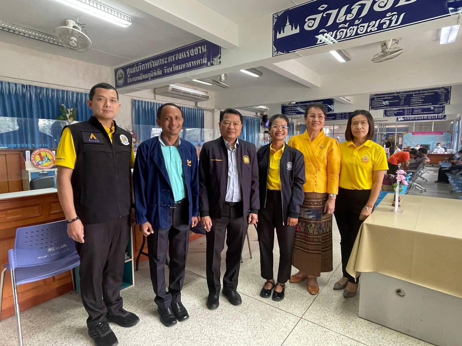 จากนั้นในช่วงบ่าย ตรวจประเมินการจัดมาตรฐานคุณภาพของศูนย์บริการร่วมกระทรวงแรงงาน จังหวัดมหาสารคาม โดยมี นายสัมฤทธิ์ หน่อแก้ว นายอำเภอพยัคฆภูมิพิสัย ร่วมให้การต้อนรับ ณ ที่ว่าการอำเภอพยัคฆภูมิพิสัย อำเภอพยัคฆภูมิพิสัย จังหวัดมหาสารคาม