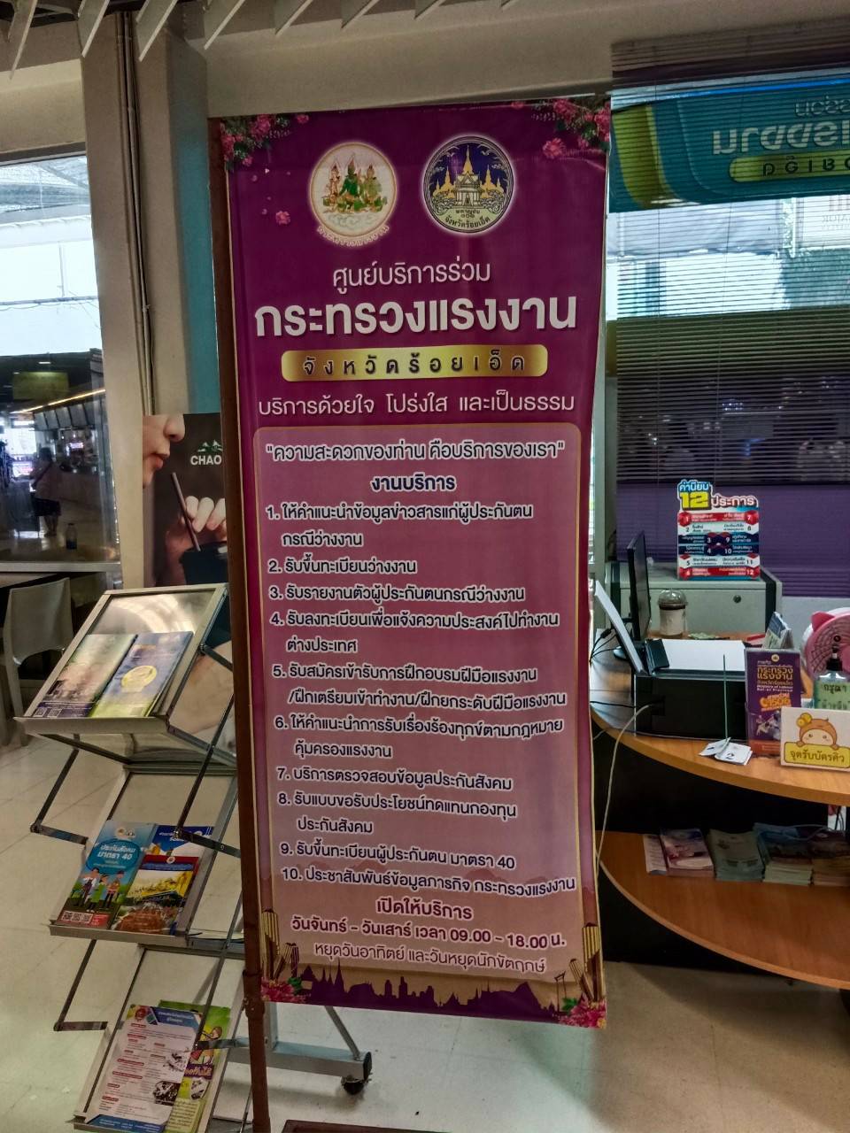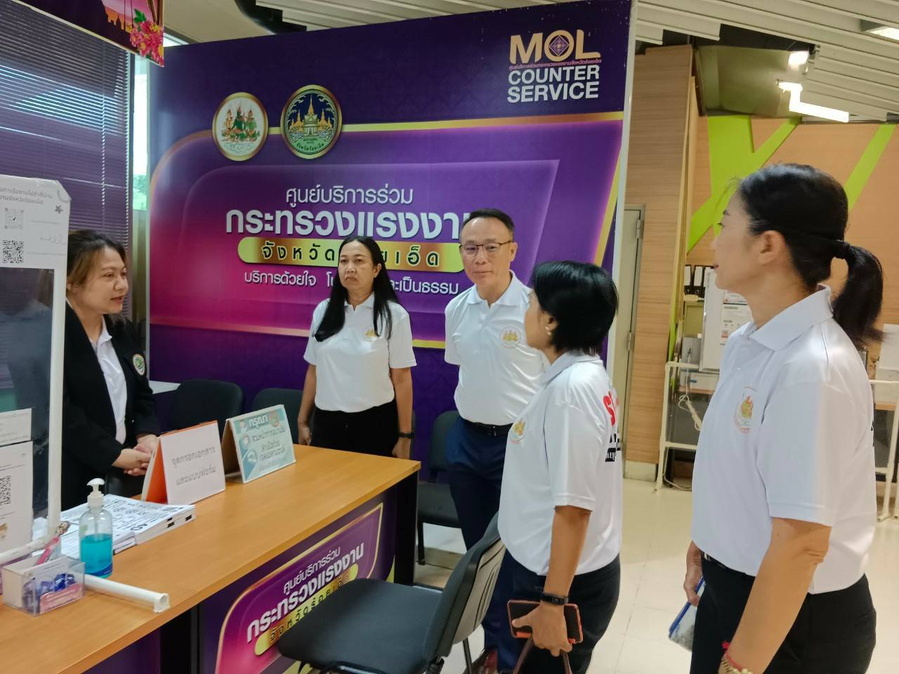 ในวันเดียวกัน นายสมชาย มรกตศรีวรรณ ผู้ตรวจราชการกระทรวงแรงงาน และคณะหัวหน้าส่วนราชการสังกัดกระทรวงแรงงานจังหวัดร้อยเอ็ด ยังได้ลงพื้นที่ตรวจเยี่ยมให้กำลังใจเจ้าหน้าที่ที่ให้บริการประชาชนของศูนย์บริการร่วมกระทรวงแรงงาน ณ ห้างสรรพสินค้าบิ๊กซีร้อยเอ็ด โดยมีเจ้าหน้าที่ประจำศูนย์บริการร่วมให้การต้อนร้รับ และได้รายงานผลการปฏิบัติงาน กระบวนการขั้นตอน การให้บริการแก่ประชาชนผู้มาติดต่อขอรับบริการงานเกี่ยวกับด้านแรงงาน อาทิ การสมัครขึ้นทะเบียนผู้ประกันตนตามมาตรา 40 การลงทะเบียนการประกันการว่างงาน เป็นต้น ทั้งนี้ ผู้ตรวจราชการกระทรวงแรงงาน ได้ให้แนวทางการฏิบัติงานของศูนย์บริการร่วมกระทรวงแรงงาน โดยให้หน่วยงานในสังกัดกระทรวงแรงงานให้การสนับสนุนจัดเจ้าหน้าที่สลับสับเปลี่ยนมาปฏิบัติงานให้บริการประชาชน ณ ศูนย์บริการร่วมกระทรวงแรงงาน ณ ห้างสรรพสินค้าบิ๊กซีร้อยเอ็ด เพื่อเป็นการร่วมกันให้บริการประชาชนได้อย่างเต็มที่ การให้ความรู้เจ้าหน้าที่ในภารกิจของหน่วยงานสังกัดกระทรวงแรงานจังหวัดร้อยเอ็ดเพิ่มเติมเกี่ยวกับกระบวนงานต่างๆ เพื่อให้เสร็จสิ้นเบ็ดเสร็จในทันที