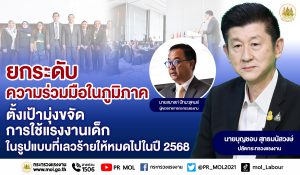 ผู้ตรวจราชการ ก.แรงงาน เปิดประชุมเชิงปฏิบัติการ ยกระดับความร่วมมือในภูมิภาค ตั้งเป้ามุ่งขจัดการใช้แรงงานเด็กในรูปแบบที่เลวร้ายให้หมดไปในปี 2568 Ministry of Labour’s Inspector General Commences Workshop to Enhance Cooperation in the Region to Eradicate the Worst Forms of Child Labour by 2025