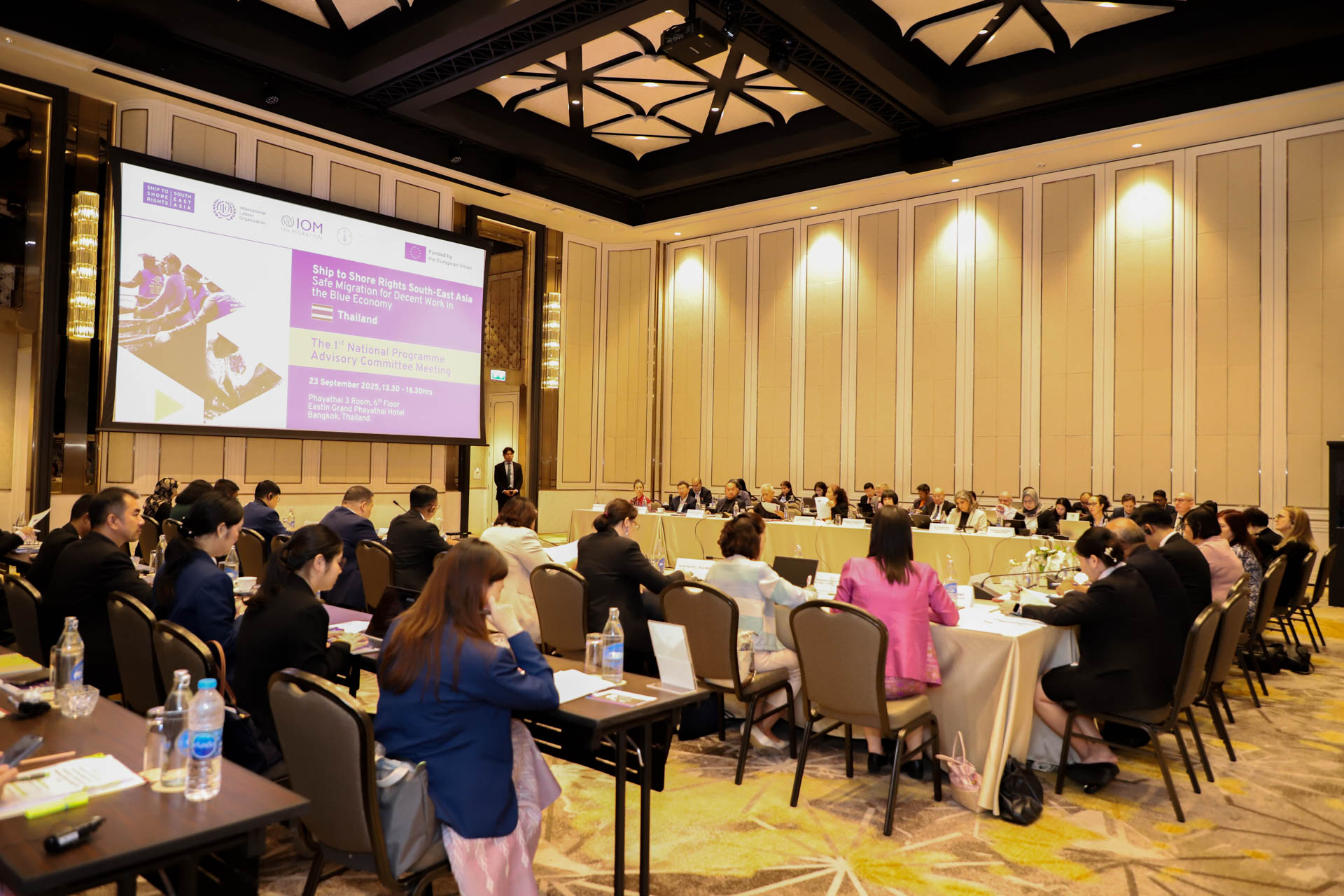 วันที่ 23 กันยายน 2568 เวลา 13.30 น. นางสาวกาญจนา พูลแก้ว ผู้ตรวจราชการกระทรวงแรงงาน เป็นประธานการประชุมคณะกรรมการที่ปรึกษาระดับชาติโครงการสิทธิจากเรือสู่ฝั่งภูมิภาคเอเชียตะวันออกเฉียงใต้:การย้ายถิ่นเพื่อการทำงานที่ปลอดภัยและงานที่มีคุณค่าในเศรษฐกิจสีน้ำเงิน ครั้งที่ 1 ร่วมกับคุณซาร่า เรโซอายิ รองหัวหน้าคณะผู้แทนสหภาพยุโรปประจำประเทศไทย โดยมีผู้แทนหน่วยงานที่เกี่ยวข้องเข้าร่วมการประชุม ณ โรงแรมอีสติน แกรนด์ พญาไท (Eastin Grand Phayathai) กรุงเทพฯ