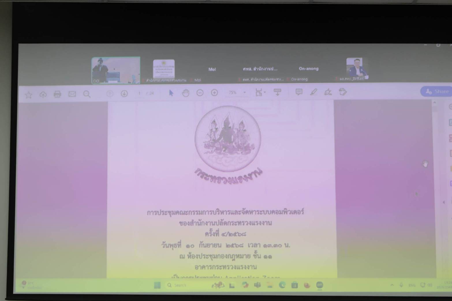 ผู้บริหารกระทรวงแรงงาน รวมถึง รับรองรายงานการประชุมคณะกรรมการบริหารและจัดหาระบบคอมพิวเตอร์ของสำนักงานปลัดกระทรวงแรงงาน ครั้งที่ 3/2568 เมื่อวันที่ 18 มิถุนายน 2568