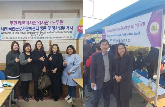 เมื่อวันที่ 19 มีนาคม 2560 ฝ่ายแรงงานฯ ได้จัดโครงการแรงงานสัมพันธ์สัญจร ครั้งที่ 5/2560 ณ ศูนย์วัฒนธรรมแรงงานต่างชาติ มหานครกวางจู สาธารณรัฐเกาหลี ในการนี้ นางกาญจนา วงศ์สุวรรณ์ อัครราชทูตที่ปรึกษา(ฝ่ายแรงงาน) ได้ประชุมหารือกับนายจอง ยอง ซอง รองหัวหน้ากองการร้องเรียนด้านสวัสดิการและแรงงาน และนายจาง คโย อิก พนักงานสํารวจข้อมูลของคณะกรรมการต่อต้านการทุจริตและคุ้มครองสิทธิพลเมือง (ACRC) เพื่อขยายความช่วยเหลือแรงงานไทยและประชาชนชาวไทย