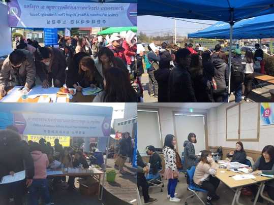 ฝ่ายแรงงานฯ ได้จัดบูธกิจกรรมถาม-ตอบปัญหา ให้คำปรึกษาและเป็นล่ามแปลภาษา สำรวจความพึงพอใจของแรงงานไทยในสาธารณรัฐเกาหลี แจกเอกสารคู่มือแรงงานไทยและอธิบายเรื่องสิทธิประโยชน์เรื่องค่าจ้าง ค่าล่วงเวลา เงินรางวัลสิ้นสุดการทำงาน การย้ายงาน เป็นต้น พร้อมทั้งประชาสัมพันธ์ช่องทางการติดต่อฝ่ายแรงงานฯ และศูนย์ช่วยเหลือแรงงานต่างชาติในเขตต่างๆ ทั้งนี้มีผู้สนใจเข้าเยี่ยมบูธและลงทะเบียนรับเอกสาร จำนวนทั้งสิ้น 138 คน