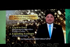 วันที่ 3 กันยายน 2568 – ūนายพงศ์กวิน จึงรุ่งเรืองกิจ รัฐมนตรีว่าการกระทรวงแรงงาน มอบรางวัลสถานประกอบกิจการดีเด่นด้านความปลอดภัยและอาชีวอนามัยของอาเซียน ครั้งที่ 6 และเปิดการประชุมวิชาการเครือข่ายความปลอดภัยและอาชีวอนามัยของอาเซียน ครั้งที่ 12 โดยประเทศไทยได้รับเกียรติให้เป็นเจ้าภาพจัดงาน โดยมี เรือเอก สาโรจน์ คมคาย อธิบดีกรมสวัสดิการและคุ้มครองแรงงาน กล่าวรายงาน นายสุรสิทธิ์ นิธิวุฒิวรรักษ์ เลขานุการรัฐมนตรีว่าการกระทรวงแรงงาน นายสมาสภ์ ปัทมะสุคนธ์ รองปลัดกระทรวงแรงงาน นายพิเชษฐ์ ทองพันธ์ ผู้ตรวจราชการกระทรวงแรงงาน รักษาราชการแทนอธิบดีกรมการจัดหางาน นายเดชา พฤกษ์พัฒนรักษ์ อธิบดีกรมพัฒนาฝีมือแรงงาน ดร.นันทชัย ปัญญาสุรฤทธิ์ ผู้อำนวยการ สถาบันส่งเสริมความปลอดภัย อาชีวอนามัย และสภาพแวดล้อมในการทำงาน (สสปท.) และ นางสาวกาญจนา พูลแก้ว ผู้ตรวจราชการกระทรวงแรงงาน เข้าร่วมด้วย ณ โรงแรม อมารี กรุงเทพฯ