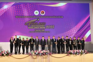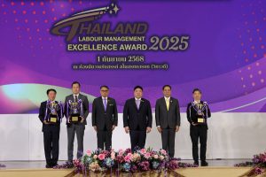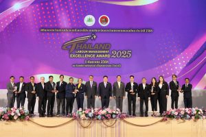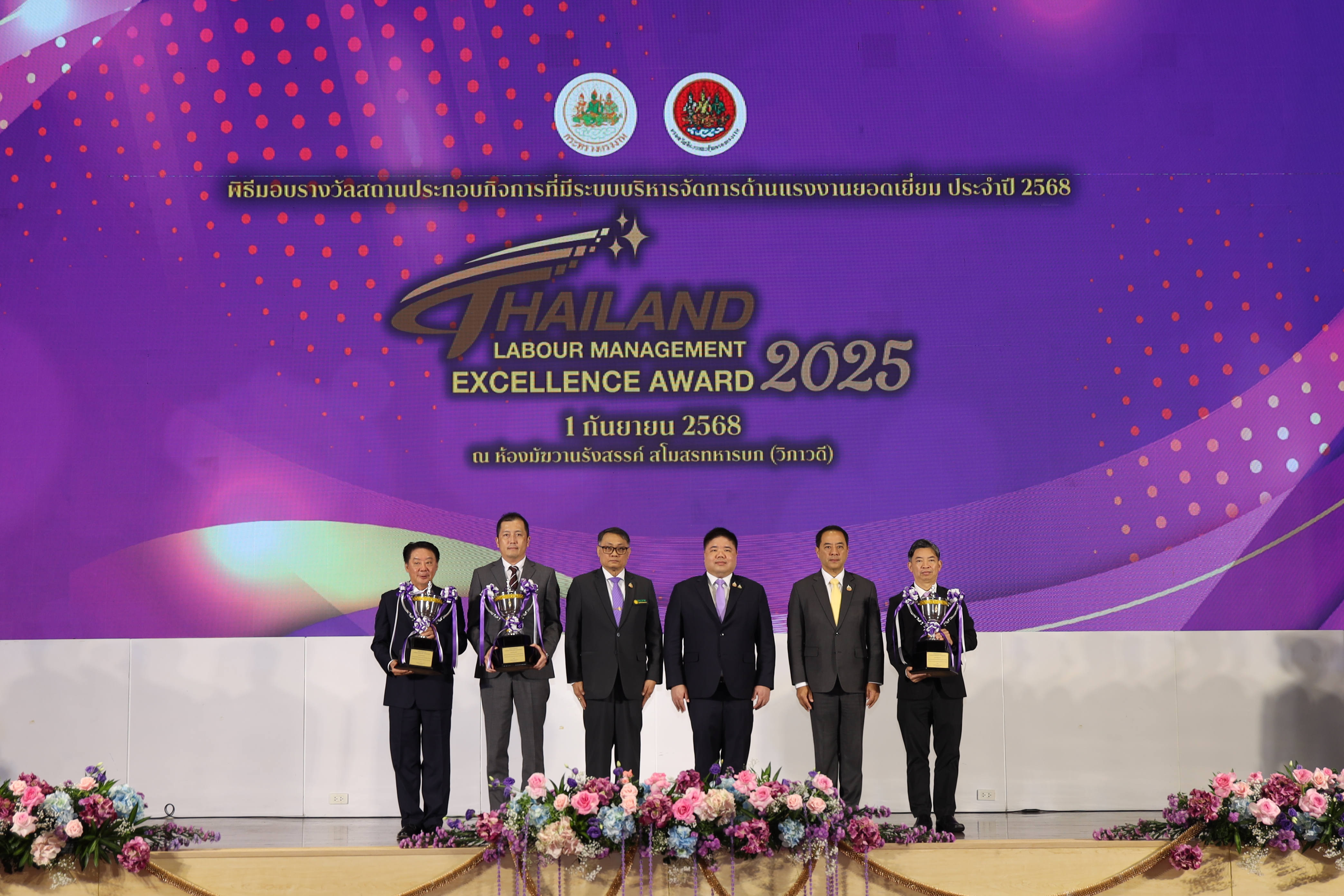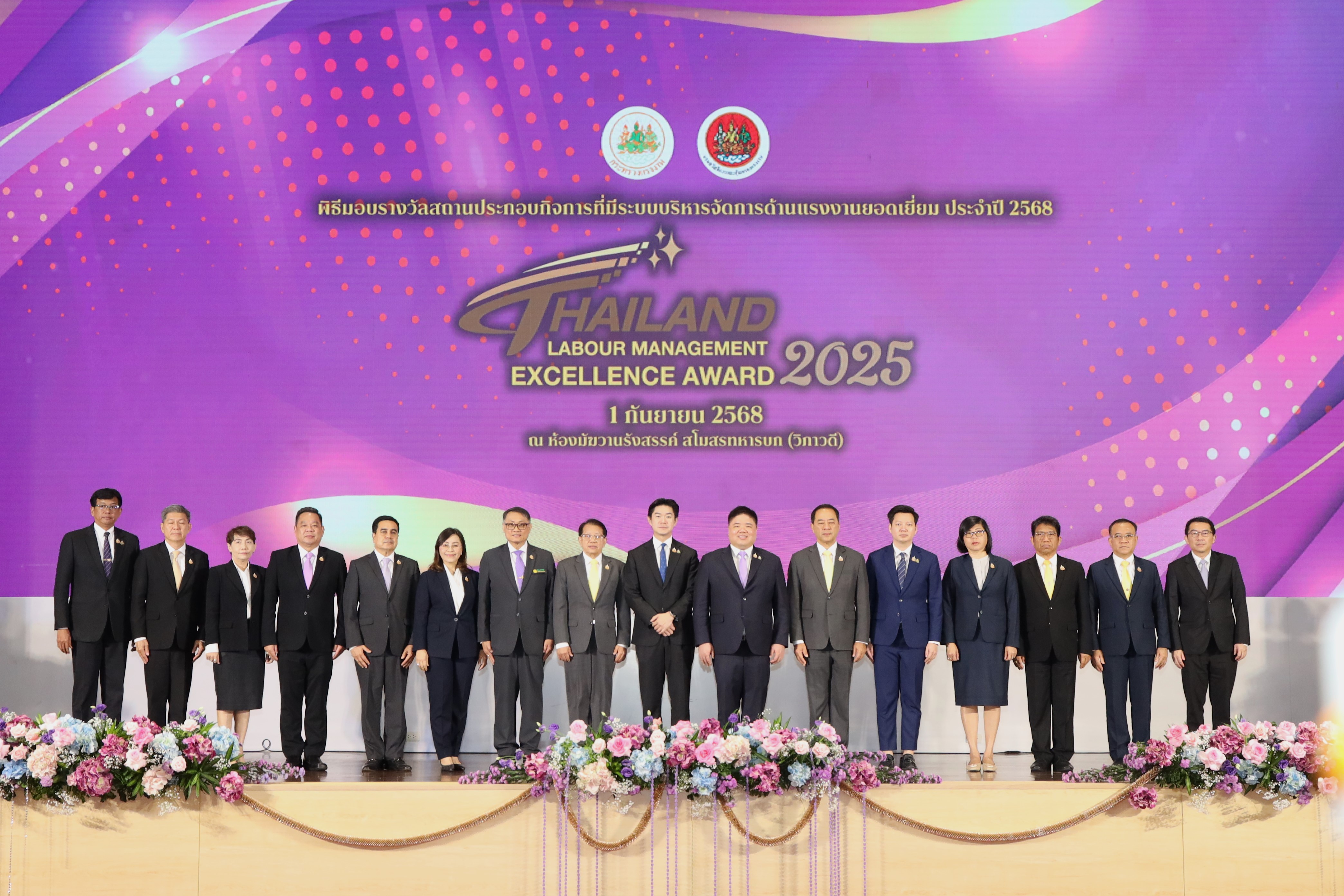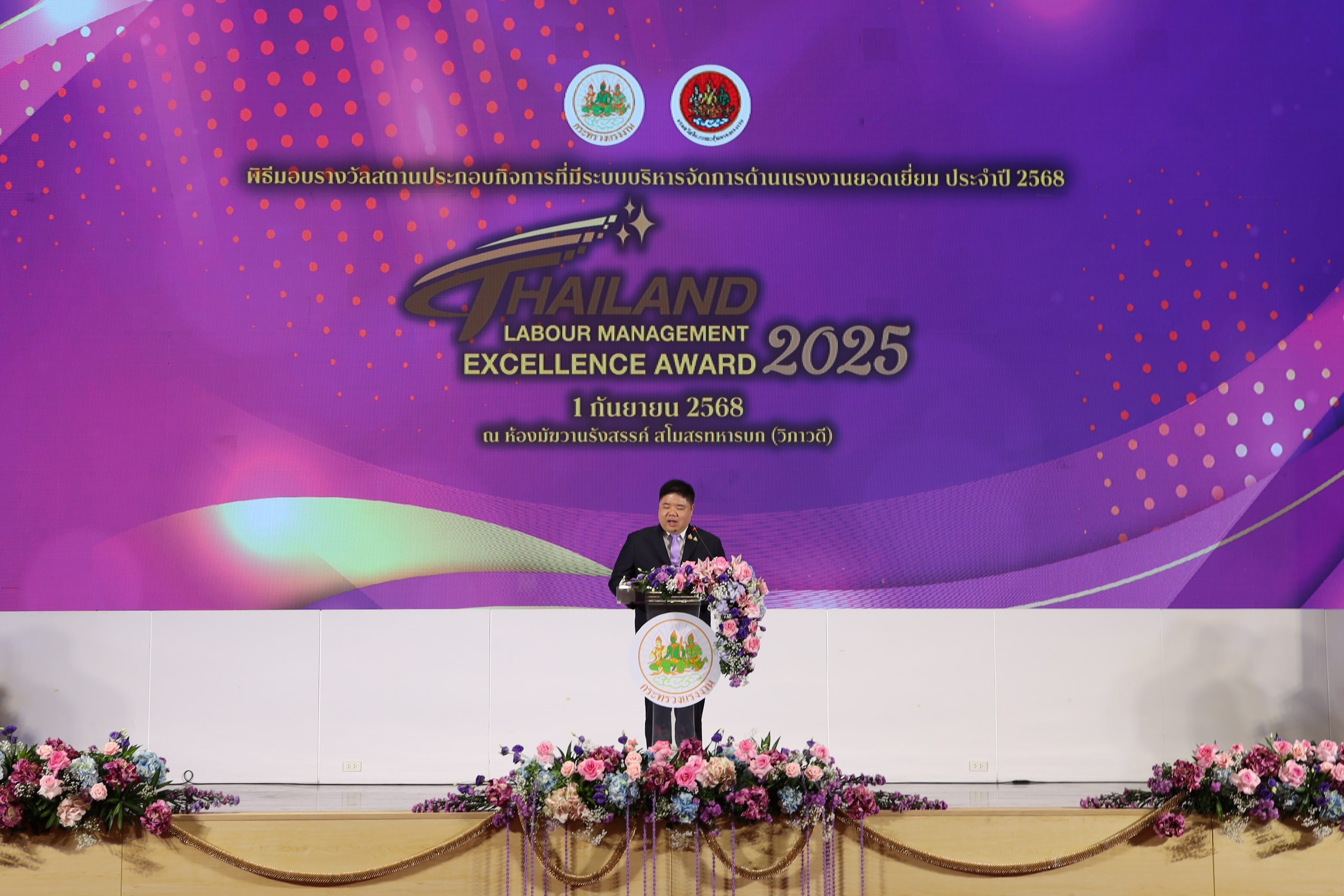 วันที่ 1 กันยายน 2568 – นายพงศ์กวิน จึงรุ่งเรืองกิจ รัฐมนตรีว่าการกระทรวงแรงงาน มอบรางวัลสถานประกอบกิจการที่มีระบบบริหารจัดการด้านแรงงานยอดเยี่ยม ประจำปี 2568 (Thailand Labour Management Excellence Award 2025) ยกย่องสถานประกอบกิจการที่มีดำเนินงานอย่างมีความรับผิดชอบต่อสังคม ดูแลแรงงานด้วยความเป็นธรรมและเท่าเทียม โดยมี นายจักรพงส์ สุเมธโชติเมธา ที่ปรึกษารัฐมนตรีว่าการกระทรวงแรงงาน นายสุรสิทธิ์ นิธิวุฒิวรรักษ์ เลขานุการรัฐมนตรีว่าการกระทรวงแรงงาน นายสมาสภ์ ปัทมะสุคนธ์ รองปลัดกระทรวงแรงงาน รักษาราชการแทนปลัดกระทรวงแรงงาน นางสาวกาญจนา พูลแก้ว ผู้ตรวจราชการกระทรวงแรงงาน ว่าที่ร้อยตรี สมศักดิ์ พรหมดำ ผู้ตรวจราชการกระทรวงแรงงาน นายเกริกไกร นาสมยนต์ ที่ปรึกษากฎหมาย นายณัฐวุฒิ ภัทรประยูร ที่ปรึกษาวิชาการแรงงาน นางสาวกรจิรัฏฐ์ พงจันทร์ศธร ผู้ช่วยปลัดกระทรวงแรงงาน นายศักดินาถ สนธิศักดิ์โยธิน ผู้ช่วยปลัดกระทรวงแรงงาน พร้อมด้วย ผู้บริหารระดับสูงกระทรวงแรงงาน ร่วมเป็นเกียรติด้วย ณ ห้องมัฆวานรังสรรค์ สโมสรทหารบก (วิภาวดี) กรุงเทพฯ