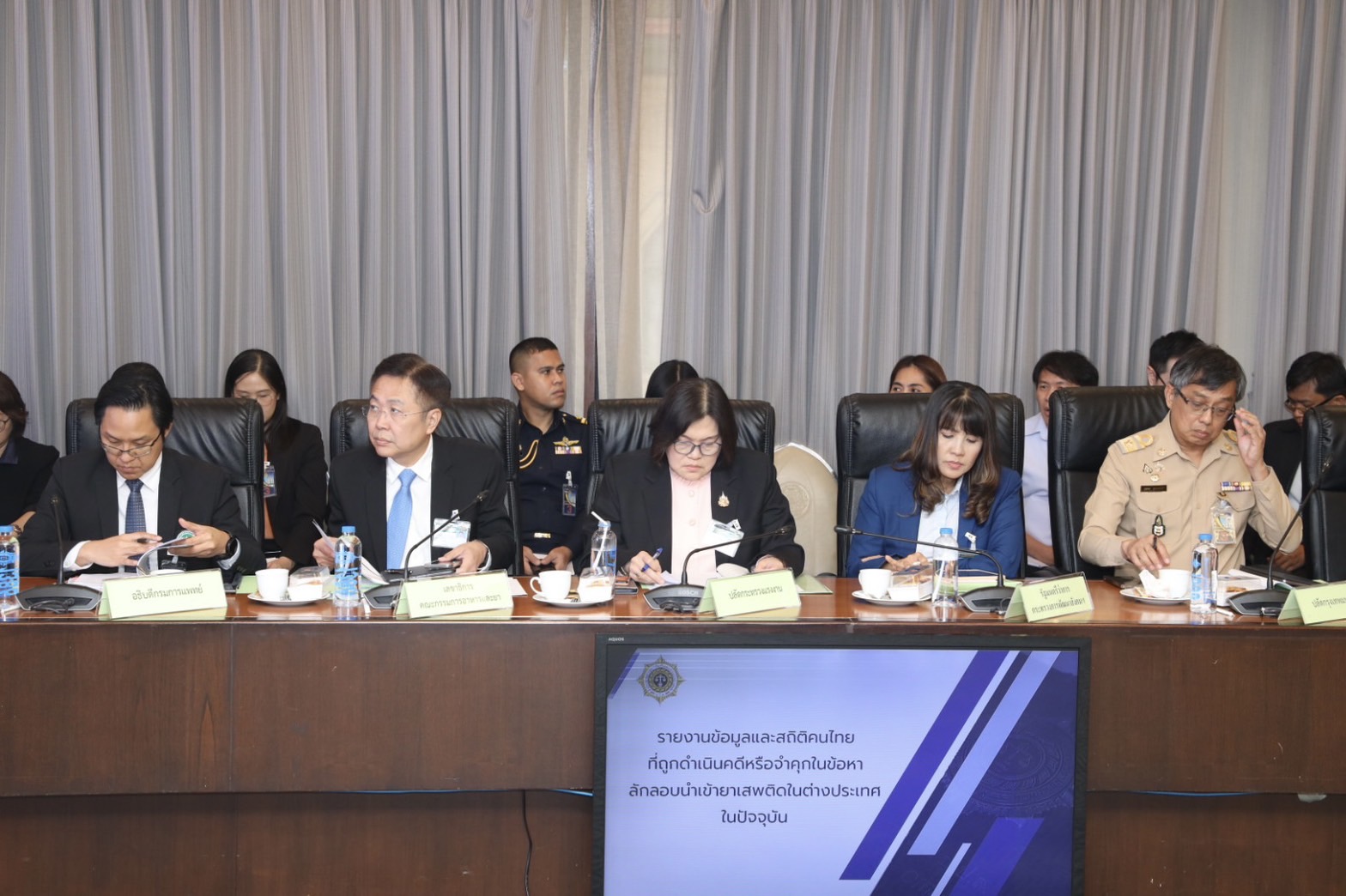สำหรับการประชุมดังกล่าว ที่ประชุมได้พิจารณา (ร่าง) ปฏิบัติการกวาดล้างยาเสพติด ผนึกกำลัง ชุมชนปลอดยาเสพติด และ (ร่าง) ข้อสั่งการมอบนโยบายปฏิบัติการกวาดล้างยาเสพติด “ No Drugs No Dealers” ผนึกกำลัง ชุมชนปลอดยาเสพติด เมื่อวันที่ 17 กรกฎาคม 2568 รายงานผลการปฏิบัติตามข้อสั่งการมอบนโยบายปฏิบัติการกวาดล้างยาเสพติด “ No Drugs No Dealers ” ผนึกกำลัง ชุมชนปลอดยาเสพติด และรายงานความคืบหน้าคณะอนุกรรมการอำนวยการกองทุนแม่ของแผ่นดิน