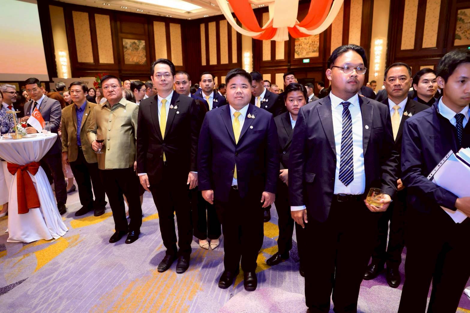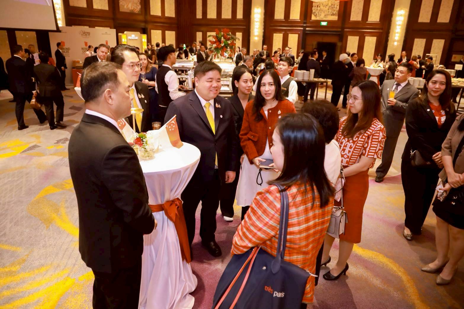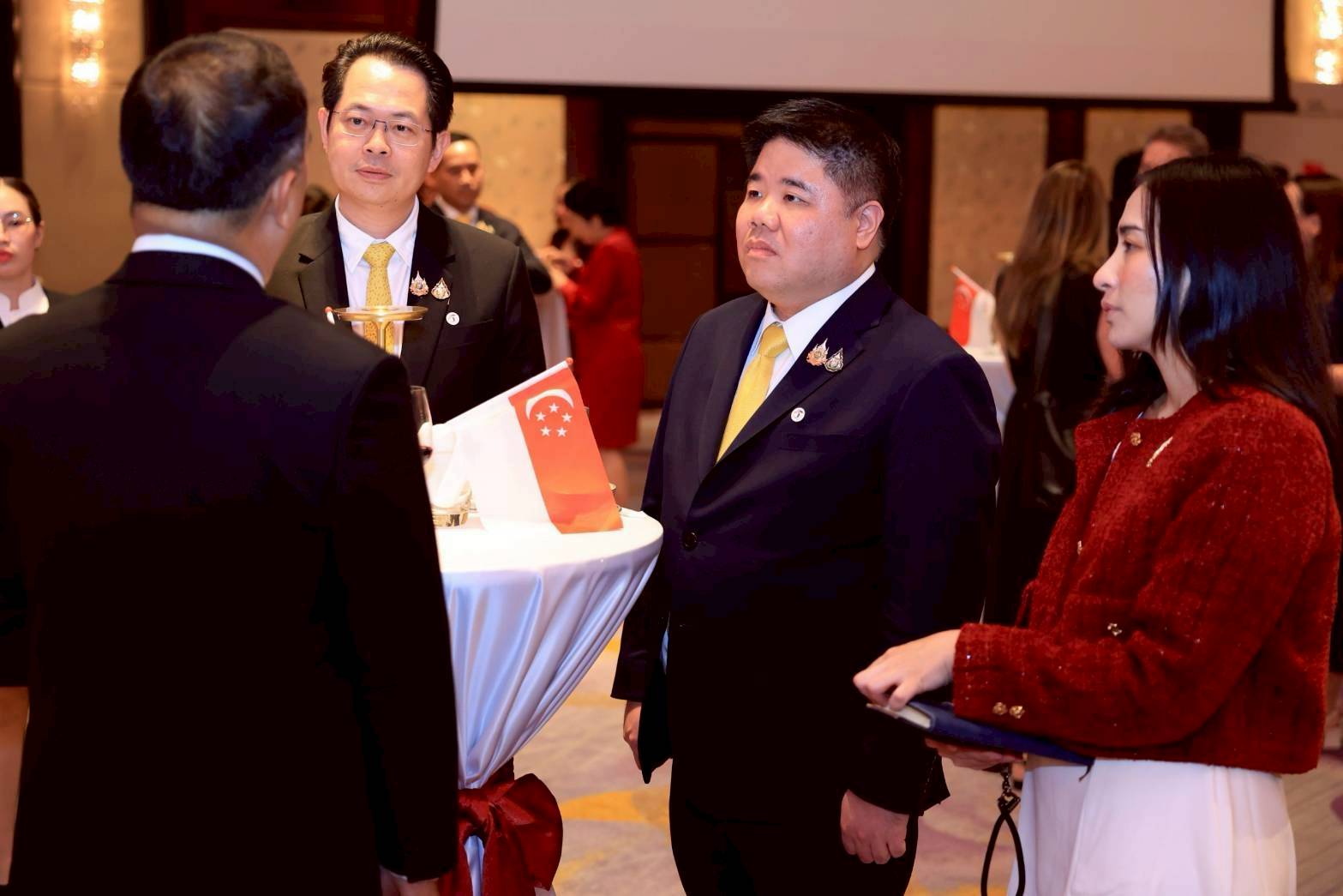วันที่ 6 สิงหาคม 2568 เวลา 18.30 น. นายพงศ์กวิน จึงรุ่งเรืองกิจ รัฐมนตรีว่าการกระทรวงแรงงาน มอบแจกันดอกไม้ร่วมแสดงความยินดีเนื่องในงานฉลองวันชาติสิงคโปร์ ครบรอบ 60 ปี โดยมี นายสมาสภ์ ปัทมะสุคนธ์ รองปลัดกระทรวงแรงงาน ร่วมเป็นเกียรติด้วย ในการนี้ นางสาวหว่อง เสี่ยว ผิง แคเทอริน (H.E. Ms. Wong Siow Ping Catherine) เอกอัครราชทูตสิงคโปร์ประจำประเทศไทย และคณะ ร่วมให้การต้อนรับ ณ ห้องแกรนด์ บอลรูม โรงแรมแชงกรี-ลา เขตบางรัก กรุงเทพฯ
