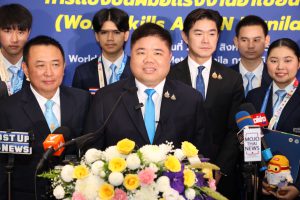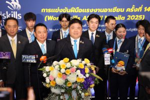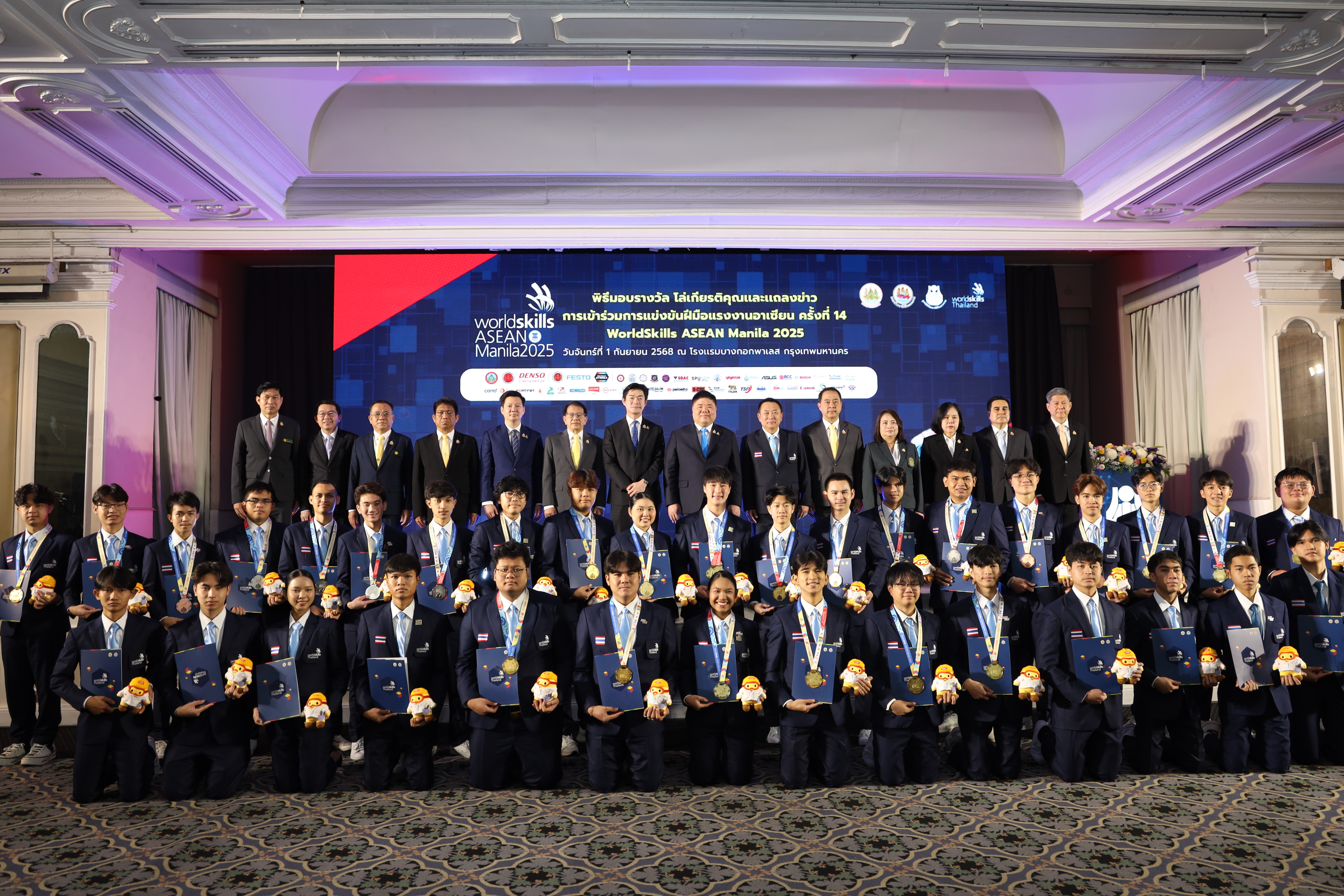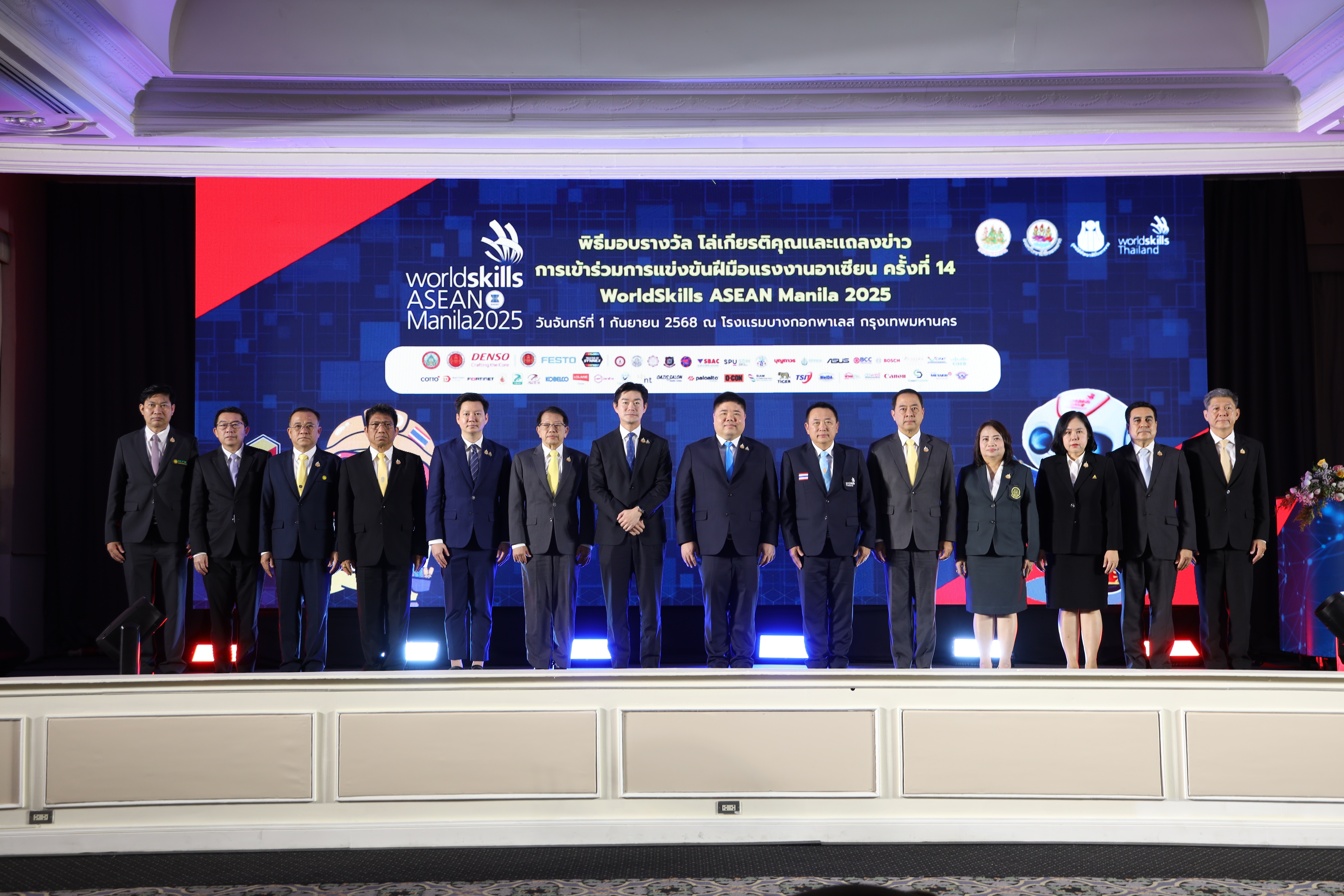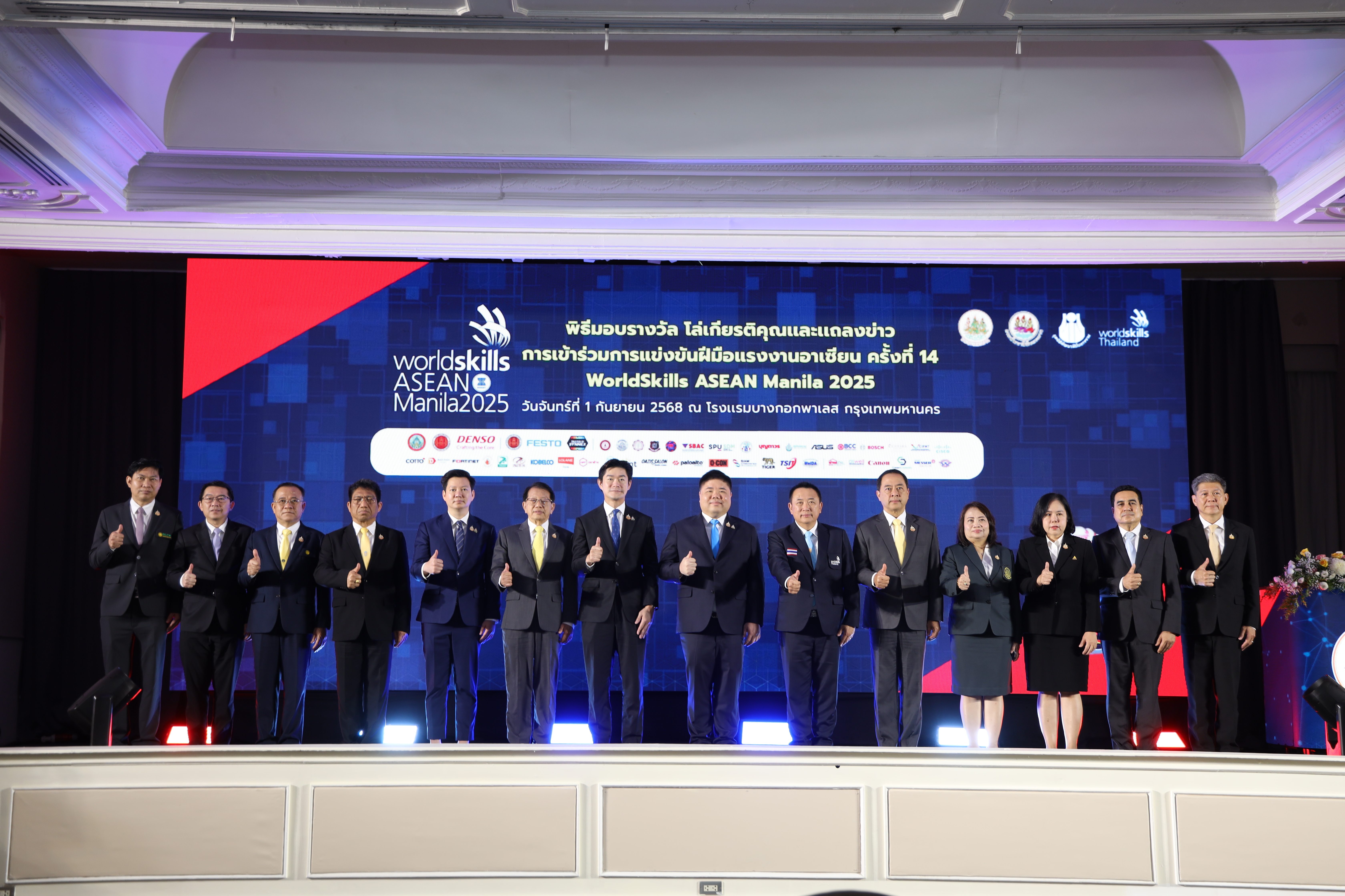 วันที่ 1 กันยายน 2568 เวลา 08.30 น. นายพงศ์กวิน จึงรุ่งเรืองกิจ รัฐมนตรีว่าการกระทรวงแรงงาน มอบเกียรติบัตร พร้อม เงินรางวัลแก่เยาวชน และโล่ขอบคุณผู้สนับสนุน การแข่งขันฝีมือแรงงานอาเซียน ครั้งที่ 14 ที่สาธารณรัฐฟิลิปปินส์ โดยมี นายจักรพงส์ สุเมธโชติเมธา ที่ปรึกษารัฐมนตรีว่าการกระทรวงแรงงาน นายสุรสิทธิ์ นิธิวุฒิวรรักษ์ เลขานุการรัฐมนตรีว่าการกระทรวงแรงงาน นายสุทธิเกียรติ วีระกิจพานิช โฆษกกระทรวงแรงงาน (ฝ่ายการเมือง) นายสมาสภ์ ปัทมะสุคนธ์ รองปลัดกระทรวงแรงงาน รักษาราชการแทนปลัดกระทรวงแรงงาน ว่าที่ร้อยตรี สมศักดิ์ พรหมดำ ผู้ตรวจราชการกระทรวงแรงงาน นายเกริกไกร นาสมยนต์ ที่ปรึกษากฎหมาย นายณัฐวุฒิ ภัทรประยูร ที่ปรึกษาวิชาการแรงงาน นายศักดินาถ สนธิศักดิ์โยธิน ผู้ช่วยปลัดกระทรวงแรงงาน นายเดชา พฤกษ์พัฒนรักษ์ อธิบดีกรมพัฒนาฝีมือแรงงาน และคณะผู้บริหารกระทรวงแรงงาน ร่วมในพิธี ณ ห้องบอลรูมวิง โรงแรมบางกอกพาเลส เขตราชเทวี กรุงเทพ