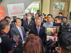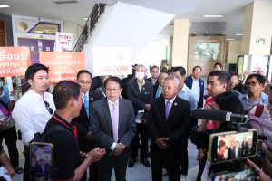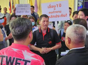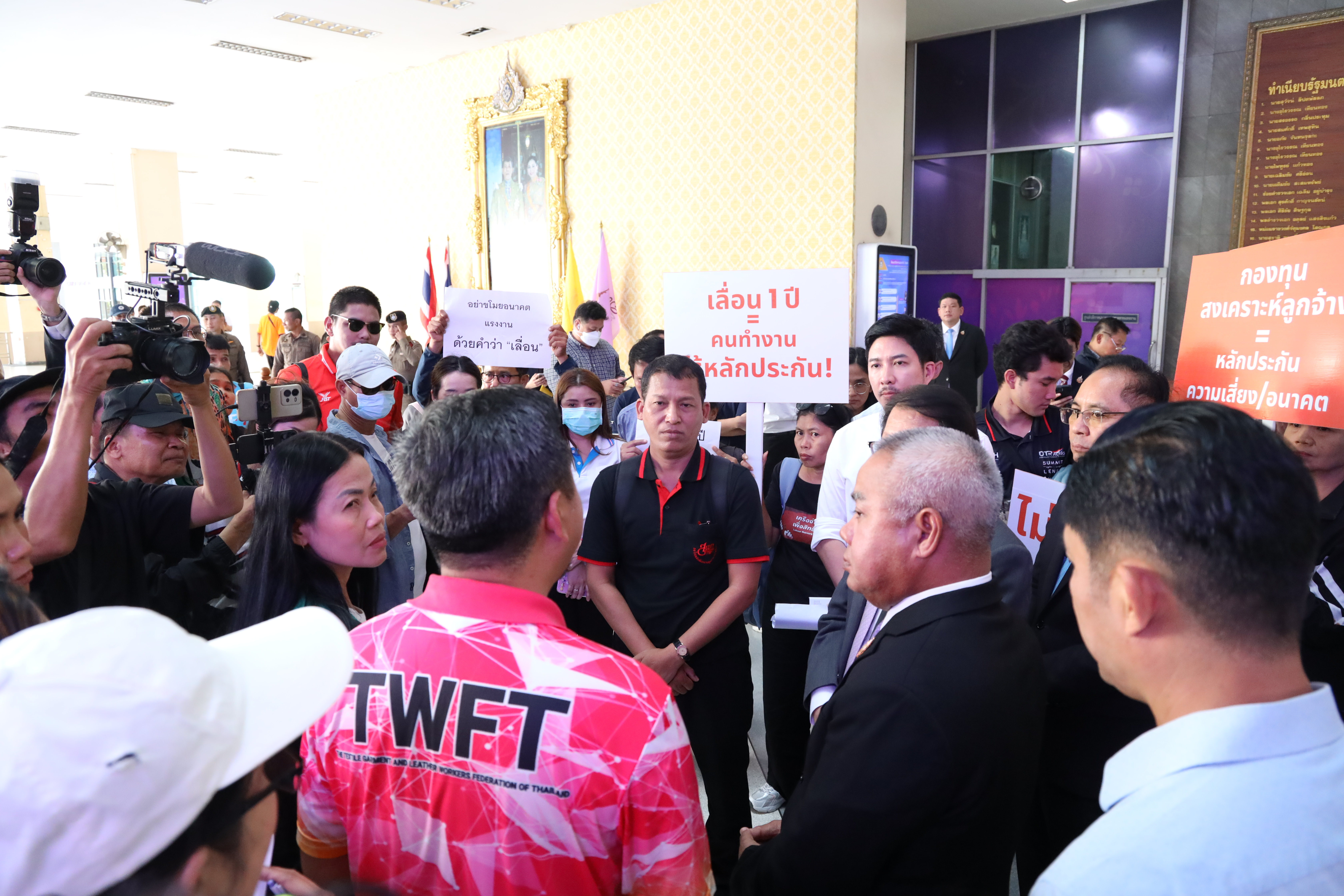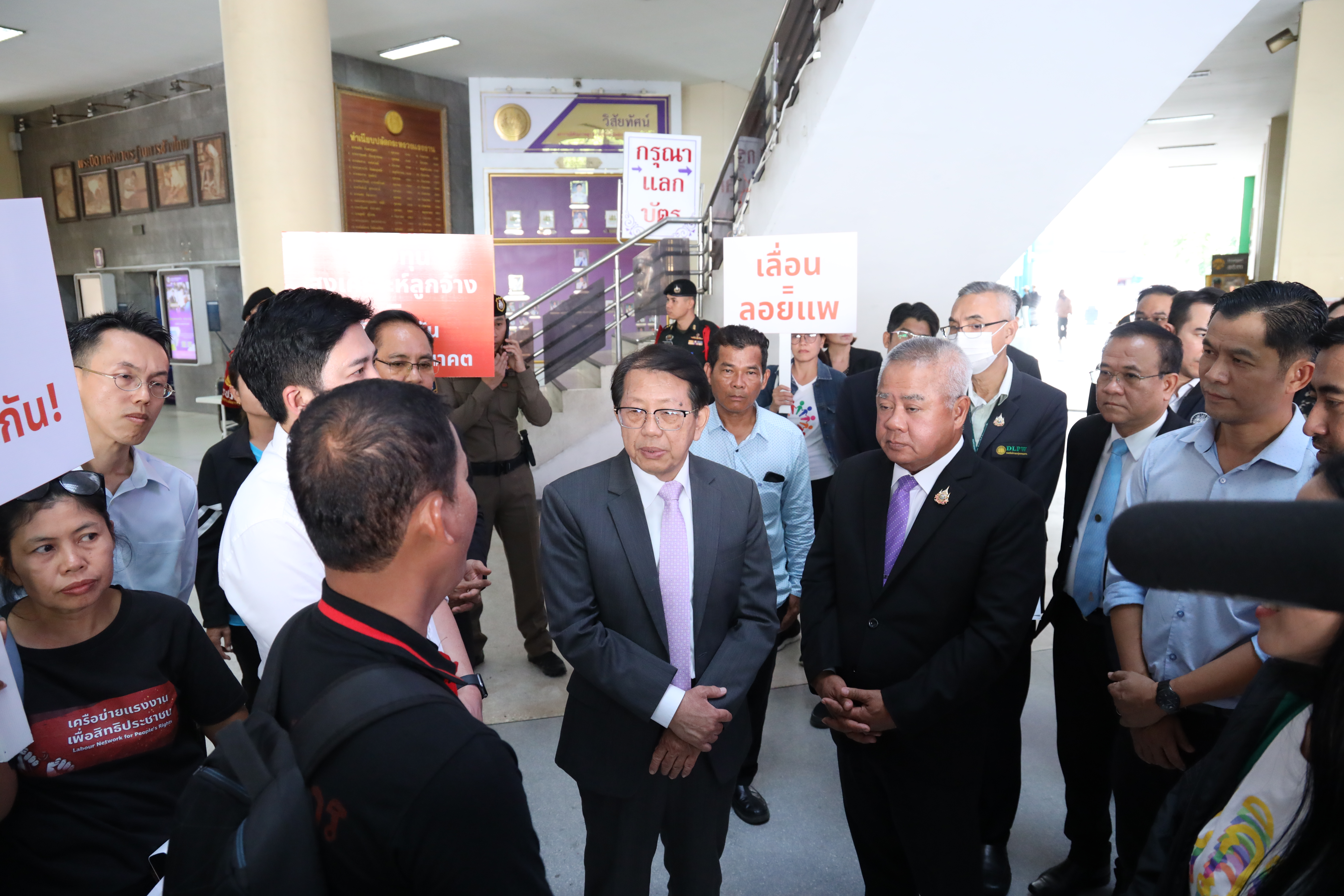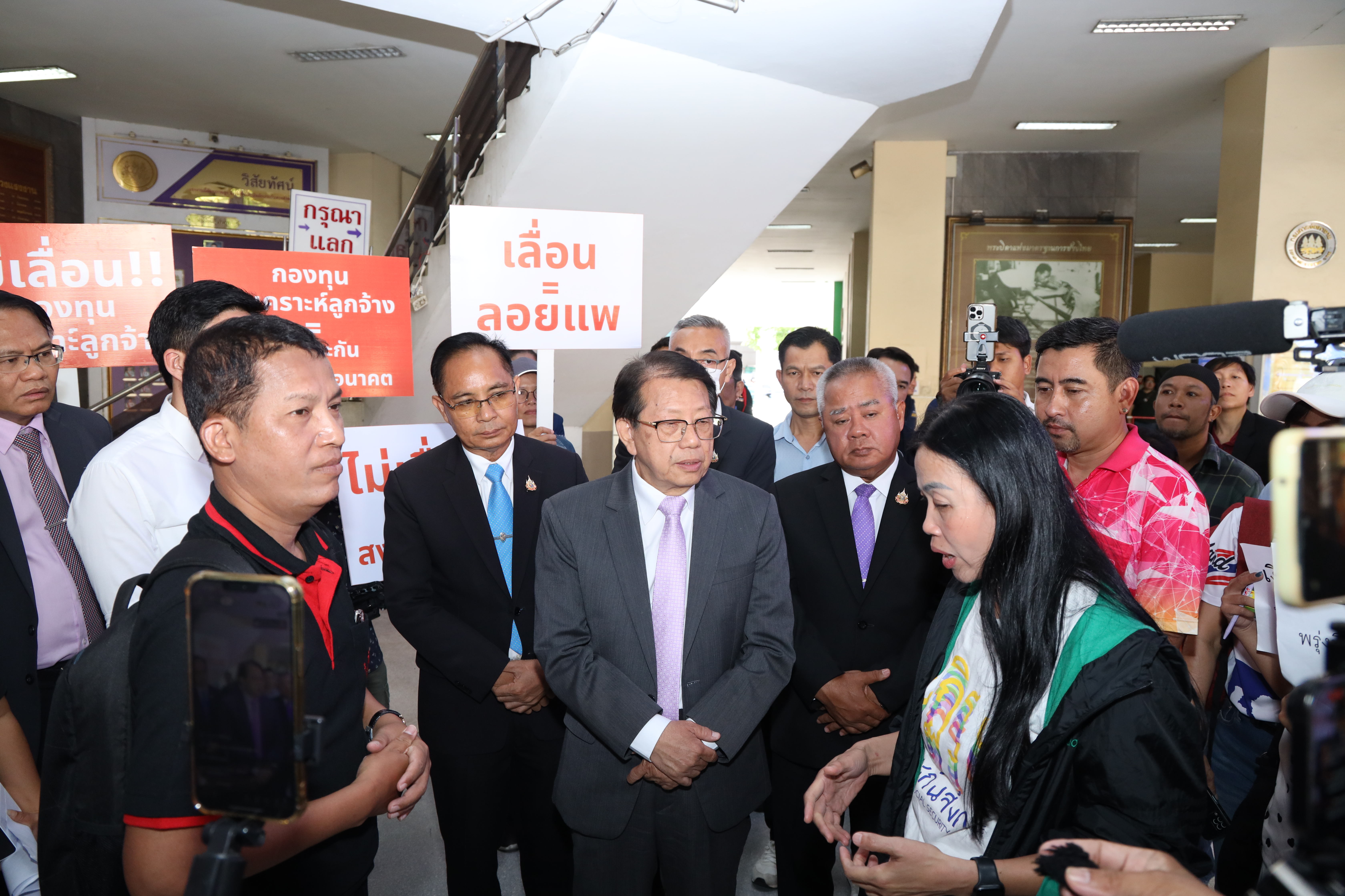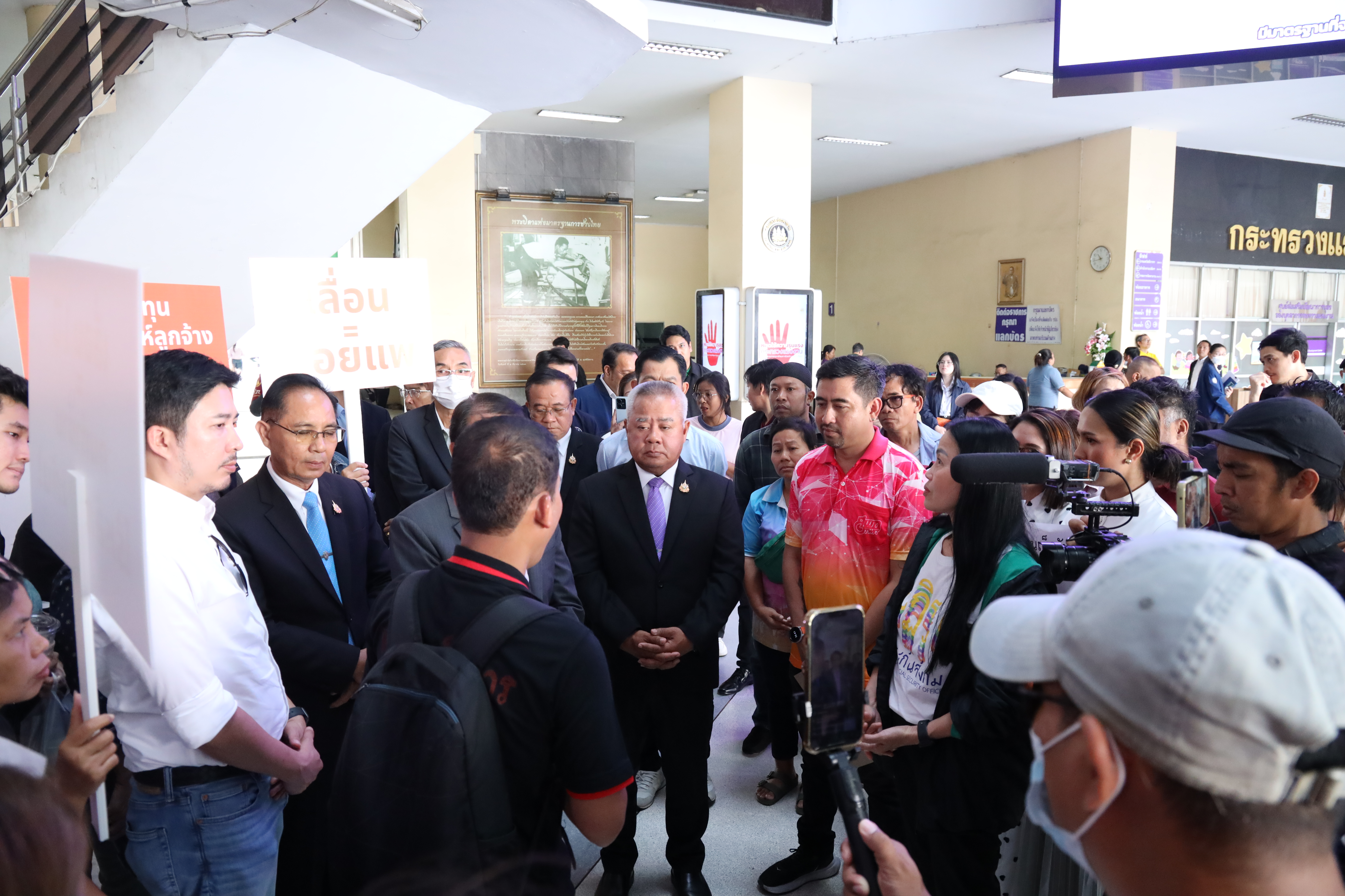วันที่ 20 สิงหาคม 2568 เวลา 10.00 น. นายพงศ์กวิน จึงรุ่งเรืองกิจ รัฐมนตรีว่าการกระทรวงแรงงาน มอบหมายให้ นายสุรสิทธิ์ นิธิวุฒิวรรักษ์ เลขานุการรัฐมนตรีว่าการกระทรวงแรงงาน พร้อมด้วย นายบุญสงค์ ทัพชัยยุทธ์ ปลัดกระทรวงแรงงาน นายเกริกไกร นาสมยนต์ ที่ปรึกษากฎหมาย และผู้บริหารกระทรวงแรงงาน รับฟัง กลุ่มเครือข่ายแรงงานเพื่อสิทธิประชาชน ที่ได้นำเครื่อข่ายเข้าพบเพื่อขอให้กระทรวงแรงงานพิจารณาทบทวน เรื่อง การเลื่อนการจัดเก็บเงินกองทุนสงเคราะห์ลูกจ้าง ณ บริเวณด้านล่าง อาคารกระทรวงแรงงาน