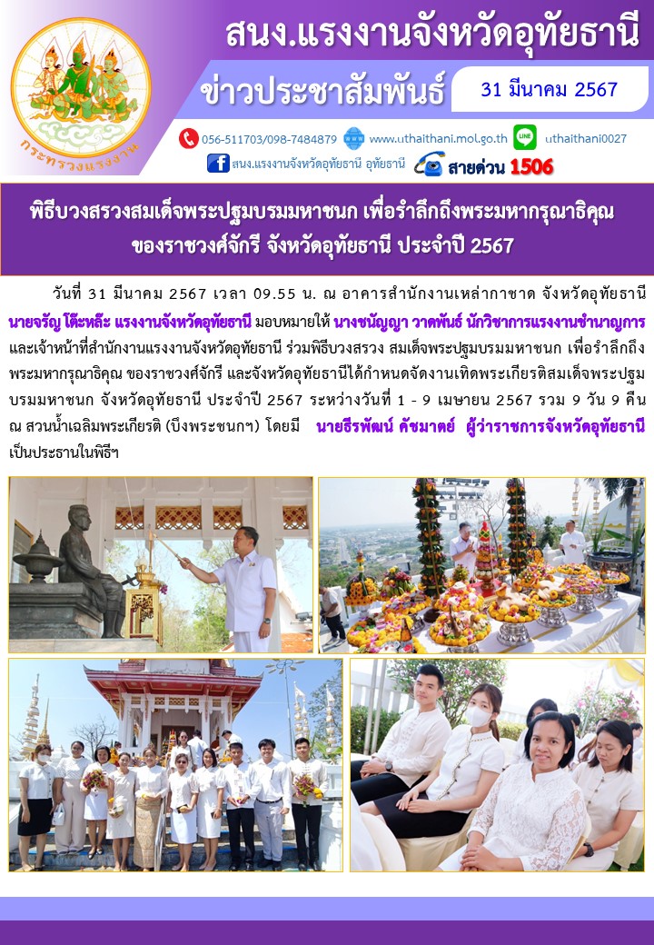 พิธีบวงสรวงสมเด็จพระปฐมบรมมหาชนก เพื่อรำลึกถึงพระมหากรุณาธิคุณ ของราชวงศ์จักรี จังหวัดอุทัยธานี ประจำปี 2567