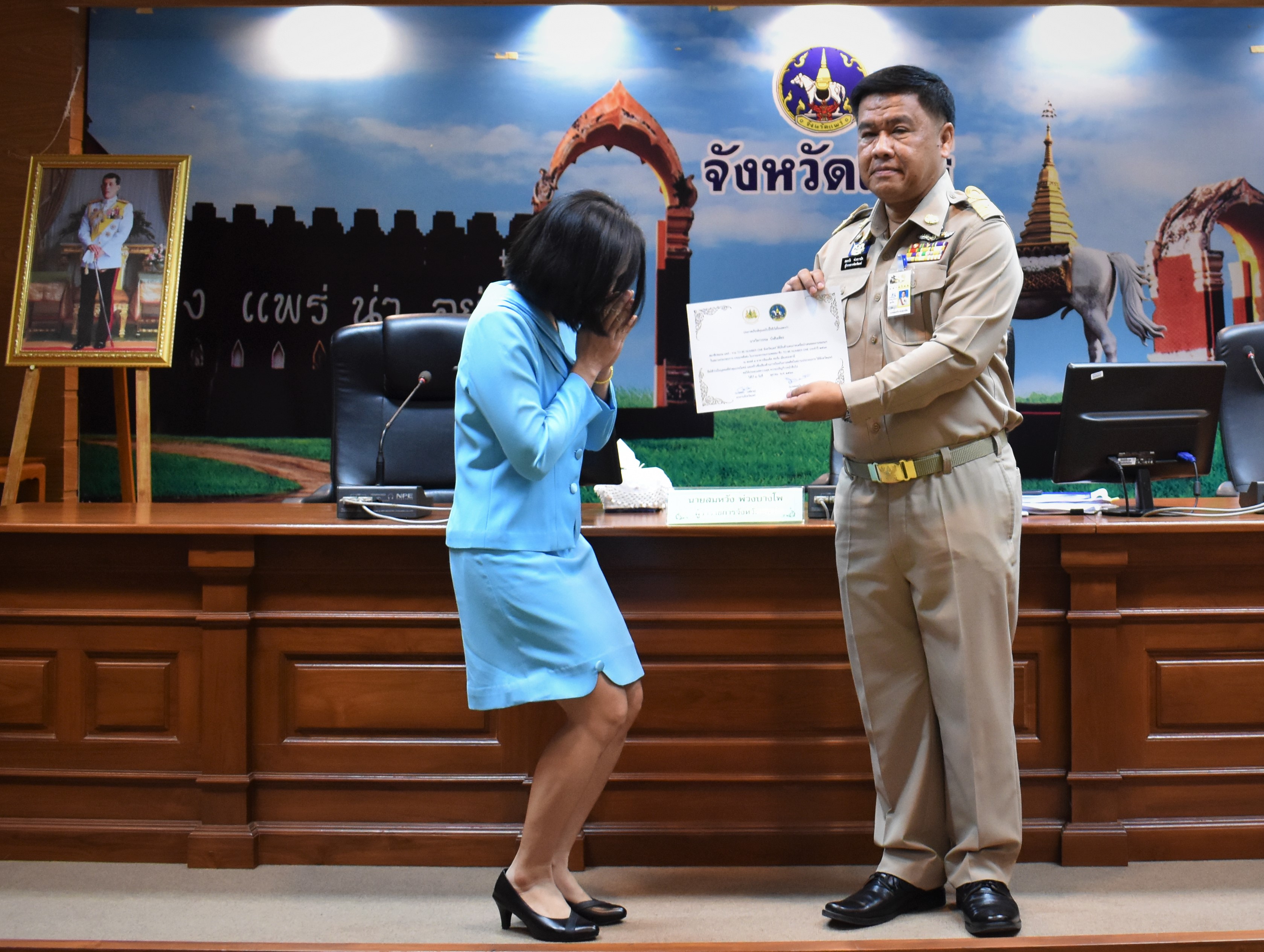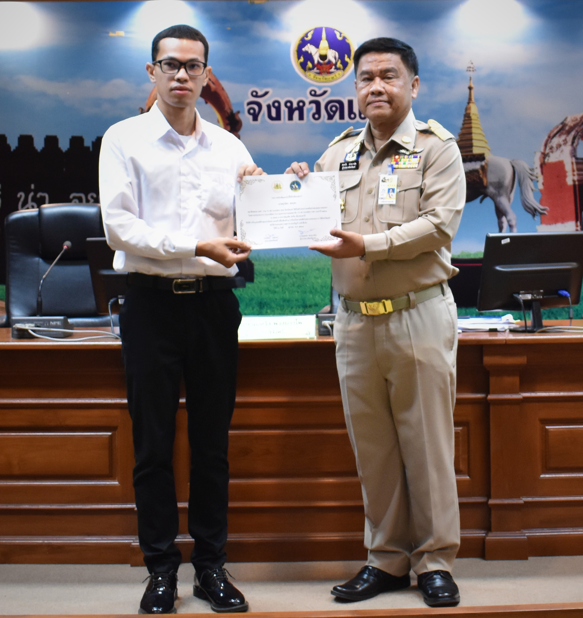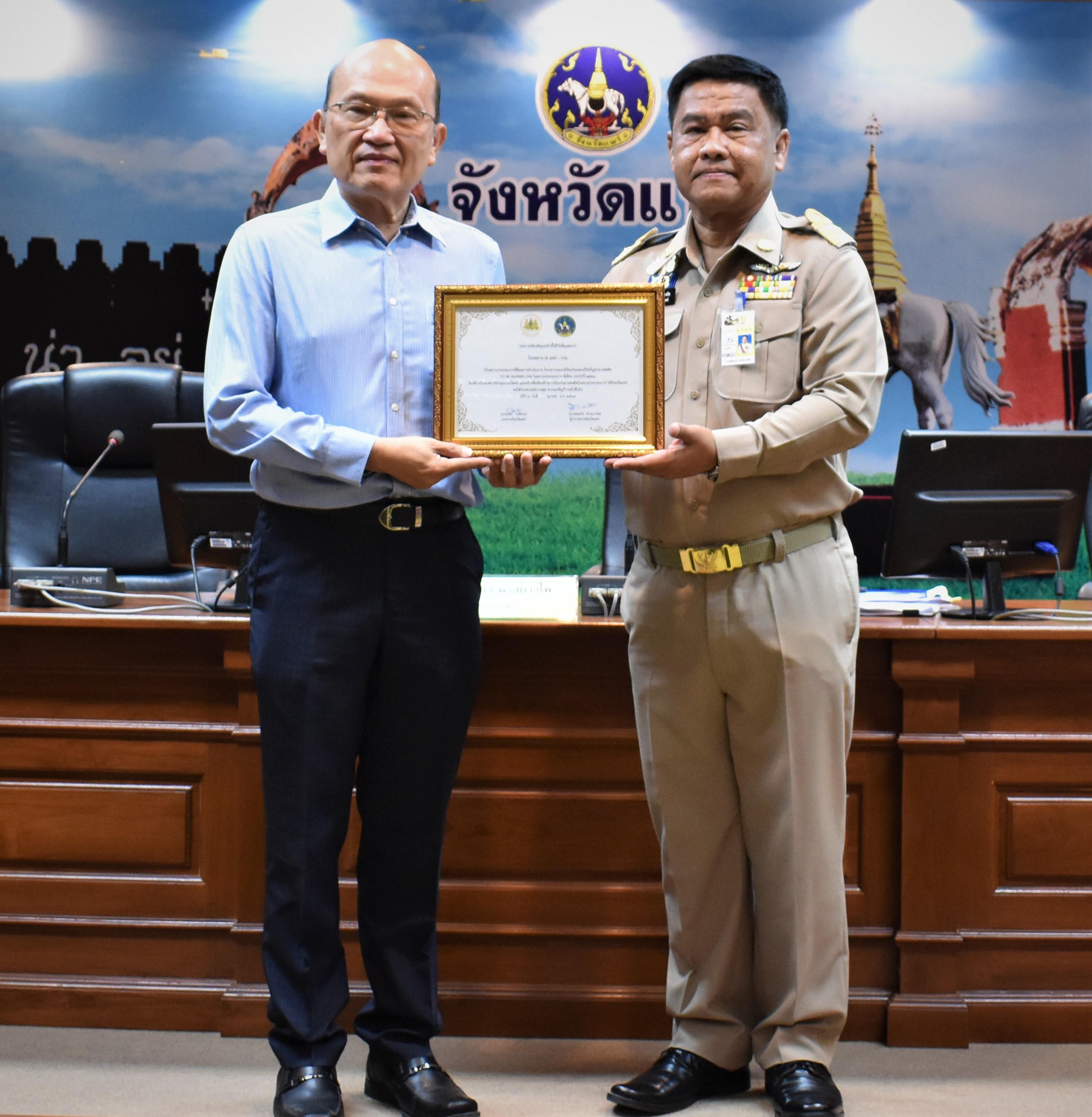 วันที่ 29 ตุลาคม 2563 เวลา 09.00 น. นายขจร วงศ์สวย แรงงานจังหวัดแพร่ นำผู้แทนสถานประกอบการและสมาชิกชมรมแพร่-ราม TO BE NUMBER ONE ของโรงพยาบาลแพร่-ราม จังหวัดแพร่ เข้ารับมอบใบประกาศเกียรติคุณ ที่มีผลงานเป็นที่ประจักษ์ และสร้างชื่อเสียงด้านการป้องกันยาเสพติดในสถานประกอบการ จากนายสมหวัง พ่วงบางโพ ผู้ว่าราชการจังหวัดแพร่ ในที่ประชุมคณะกรมการจังหวัดแพร่ หัวหน้าส่วนราชการและหน่วยงานที่เกี่ยวข้อง ครั้งที่ 10/2563 ณ ห้องประชุมจดหมายเหตุ ศาลากลางจังหวัด ชั้น 2 ตำบลในเวียง อำเภอเมือง จังหวัดแพร่