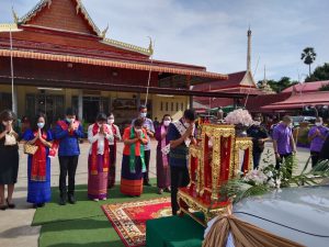 วันที่ 27 ตุลาคม 2564 เวลา 08.30 น. นางสาวสุกัญญา องค์วิเศษไพบูลย์ แรงงานจังหวัดลพบุรี เข้าร่วมพิธีเปิดงานสืบสานประเพณีไทยรามัญบางขันหมาก ประจำปี 2564 เพื่ออนุรักษ์และสืบสานวัฒนธรรมที่ดีงามของท้องถิ่น สร้างความสามัคคีความเข็มแข็งของชุมชนเป็นการส่งเสริมการท่องเที่ยวทางศาสนาและวัฒนธรรมท้องถิ่นให้เป็นที่รู้จัก ส่งเสริมให้วัดเป็นศูนย์กลางในการจัดกิจกรรมด้านศาสนา ศิลปวัฒนธรรม ณ วัดอัมพวัน ตำบลบางขันหมาก อำเภอเมืองลพบุรี จังหวัดลพบุรี