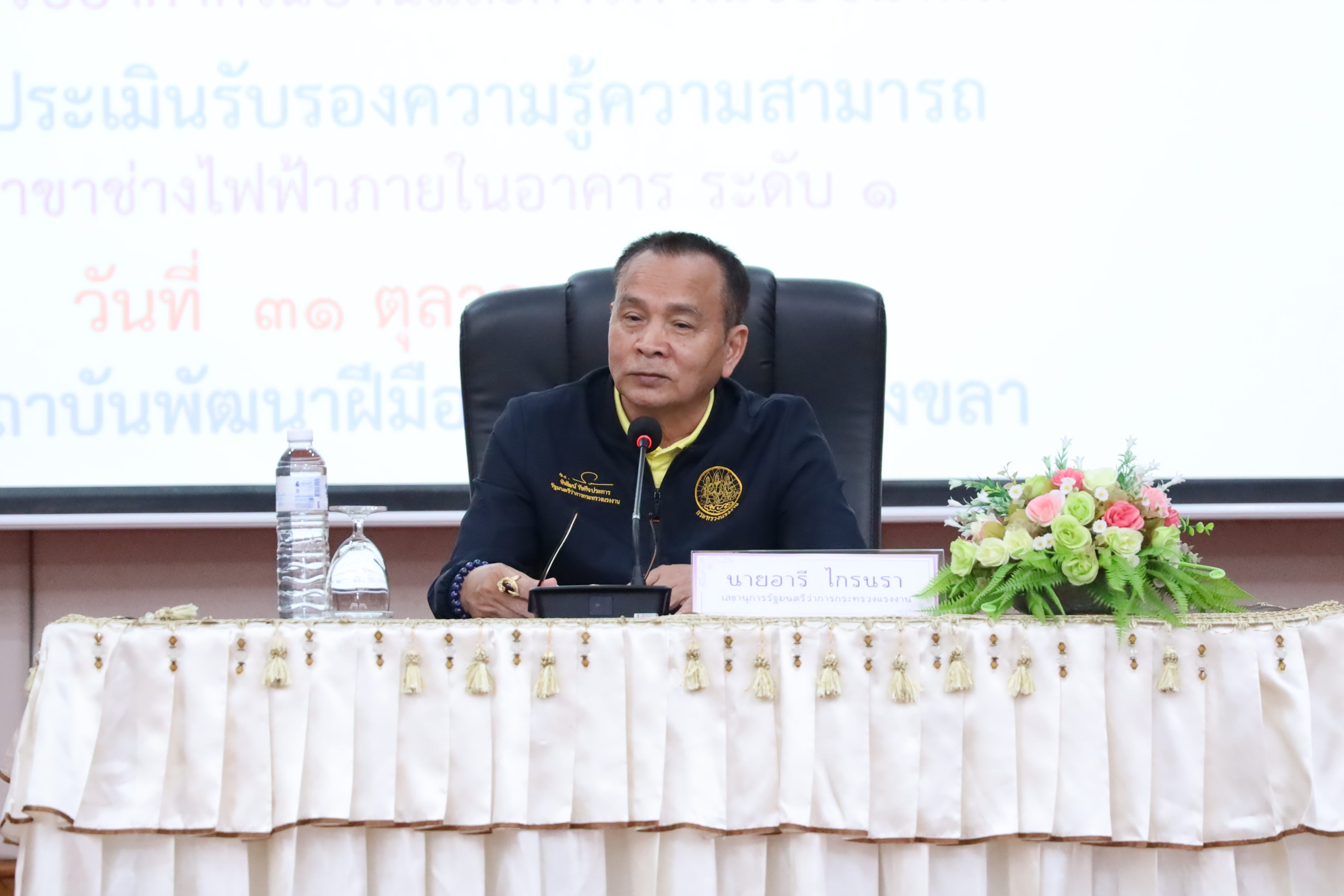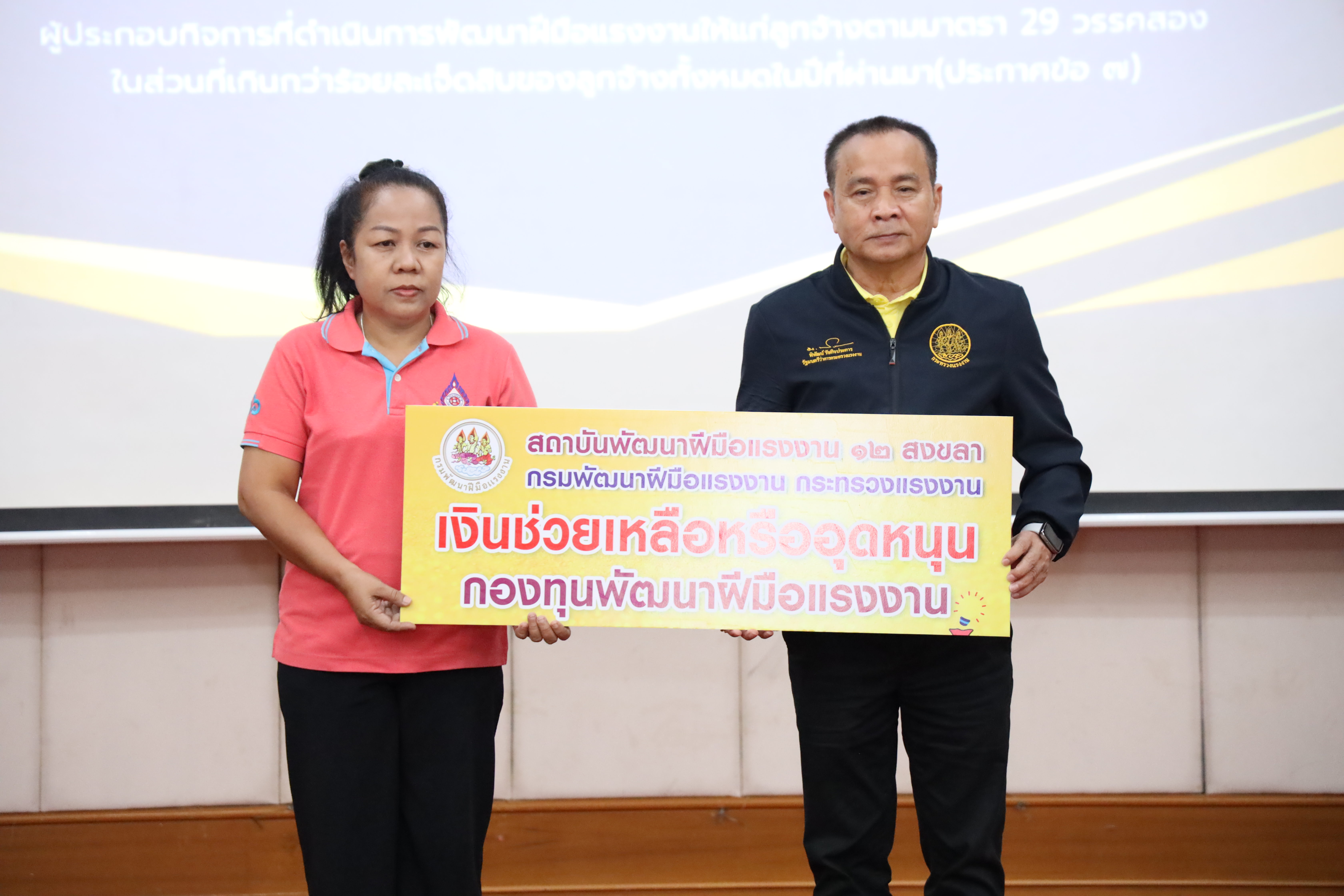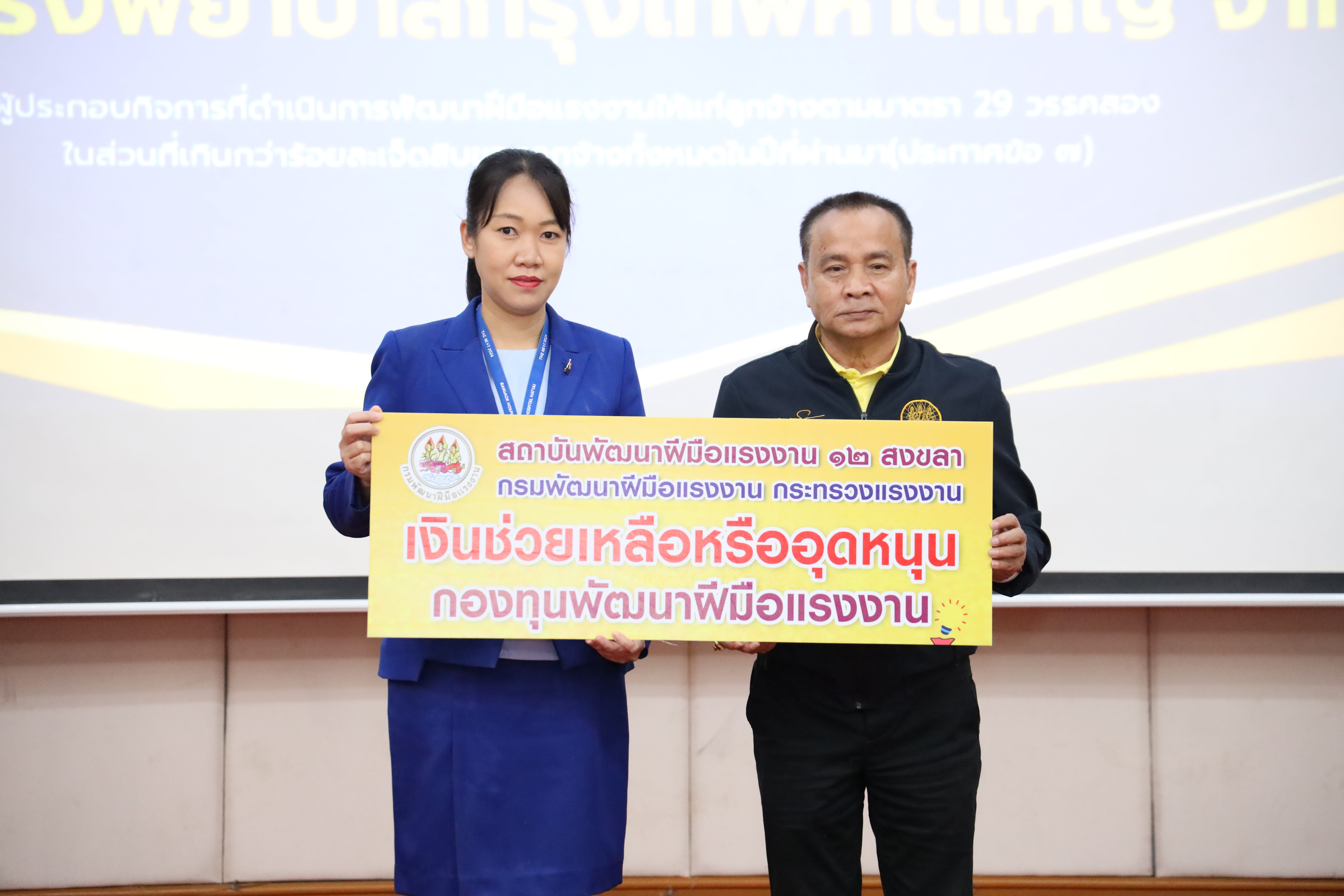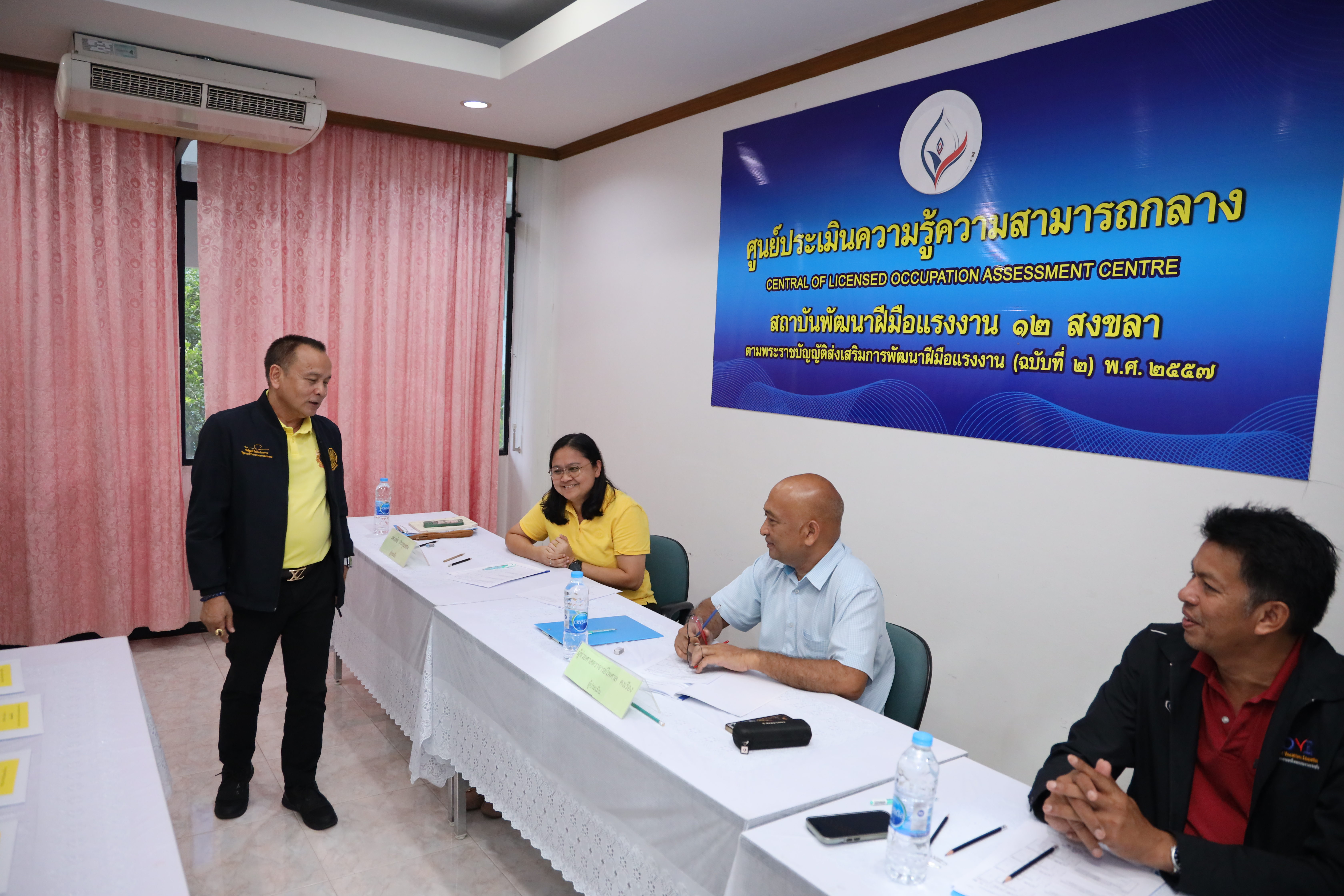 ด้าน นายเดชา พฤกษ์พัฒนรักษ์ รองปลัดกระทรวงแรงงาน รักษาราชการแทนอธิบดีกรมพัฒนาฝีมือแรงงาน กล่าวเพิ่มเติมว่า การลงพื้นที่ในครั้งนี้ สพร.12 สงขลา ยังได้จัดกิจกรรมการทดสอบมาตรฐานฝีมือแรงงานแห่งชาติ สาขาช่างไฟฟ้าภายในอาคาร ระดับ 1 ดำเนินการร่วมกับการไฟฟ้าส่วนภูมิภาค สาขาเมืองสงขลา ช่างเครื่องปรับอากาศในบ้านและการพาณิชย์ขนาดเล็ก ระดับ 1 และกิจกรรมการประเมินความรู้ความสามารถ สาขาช่างไฟฟ้าภายในอาคาร ระดับ 1 โดยมีกำลังแรงงานเข้าร่วมกิจกรรมจำนวน 135 คน โดยในปีงบประมาณ 2568 สถาบันพัฒนาฝีมือแรงงาน 12 สงขลา มีเป้าหมายในการพัฒนาทักษะฝีมือแรงงานภายในจังหวัดจำนวน 7 หมื่นกว่าคน มีการดำเนินงานที่ส่งเสริมสถานประกอบกิจการที่ตั้งอยู่ในพื้นที่ร่วมดำเนินการจัดฝึกอบรมให้แก่พนักงานของตนเอง ตาม พ.ร.บ.ส่งเสริมการพัฒนาฝีมือแรงงาน พ.ศ. 2545 อีกด้วย กิจกรรมต่างๆ ที่ดำเนินการจัดขึ้นในครั้งนี้ เป็นการแสดงให้เห็นถึงศักยภาพ ความพร้อมในการดำเนินงานด้านการพัฒนาทักษะของหน่วยงานของกรมพัฒนาฝีมือแรงงาน ที่ครอบคลุมในหลายด้าน ตั้งแต่การพัฒนาทักษะ จนเข้าสู่กระบวนการรับรองด้านมาตรฐานฝีมือ เพื่อสร้างความมั่นใจแก่สถานประกอบกิจการและภาคอุตสาหกรรม ในการคัดเลือกหรือร่วมกับหน่วยงานของกรมเพื่อจัดฝึกอบรมร่วมกัน เพื่อให้แรงงานมีทักษะที่ได้มาตรฐาน สร้างการยอมรับร่วมกัน