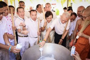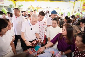Mr. Phiphat said that the Madhupayas rice stirring ceremony and traditional blanket parade worshiping the “Father Than Klai Wajasit” for 2024 in Nakhon Si Thammarat Province is a promotion of arts and culture tourism, which shows the great power of the Buddhist faith. In addition to joining the traditional merit-making ceremony, the Ministry of Labour by its affiliated agencies in Nakhon Si Thammarat Province, provided labour services to serve the people in the area, such as displaying products by informal sector workers under the project to solve occupational issues and promote employment. There were booths to apply for a job, demonstrations of training in installing solar cell systems, labour law consultation, an occupational safety exhibition, recruitment of insured persons to receive social security contributions under Section 40, and a visit to OTOP handicraft products of the villagers of Phipun District.