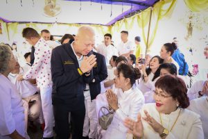 On March 27, 2024, the Labour Minister, Mr. Phiphat Ratchakitprakarn, paid a visit to the area to inspect the activities of agencies under the Ministry of Labour under the Ministry of Labour’s project to meet with the people in Nakhon Si Thammarat Province. He participated in a traditional ceremony and parade worshiping the “Father Than Klai Wajasit” for 2024. From the Prime Minister’s Secretariat’s Office, performing duties for the Ministry of Labour, Mr. Phuchong Worasri joined in honour. Mayor of Chandi Subdistrict Municipality, Mr. Thanaset Kittiwimonchai, gave a report. The heads of government agencies under the Ministry of Labour, labour volunteers, independent workers and villagers in the area joined in giving a welcome at Wat That Noi, Pho Than Klai Wajasit Chedi, Lak Chang Subdistrict, Chang Klang District, Nakhon Si Thammarat Province.
