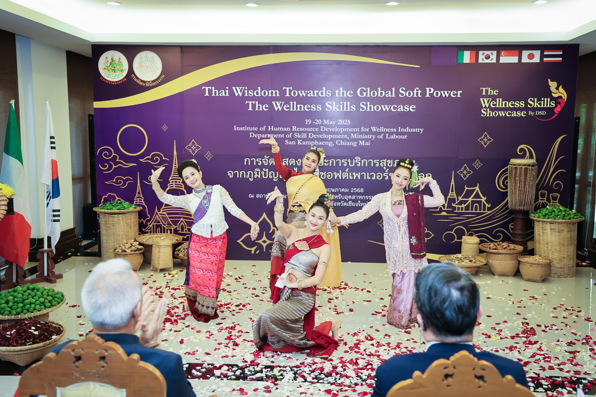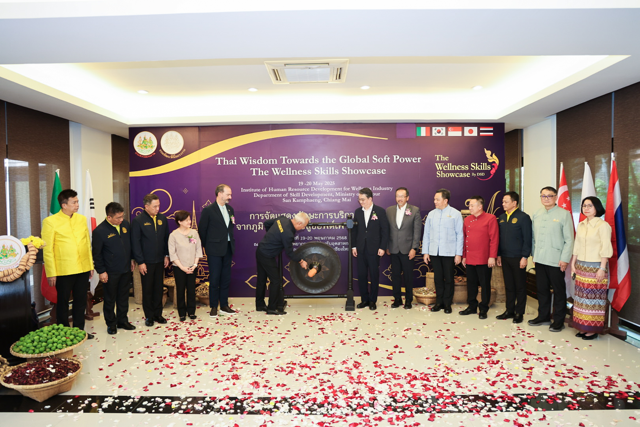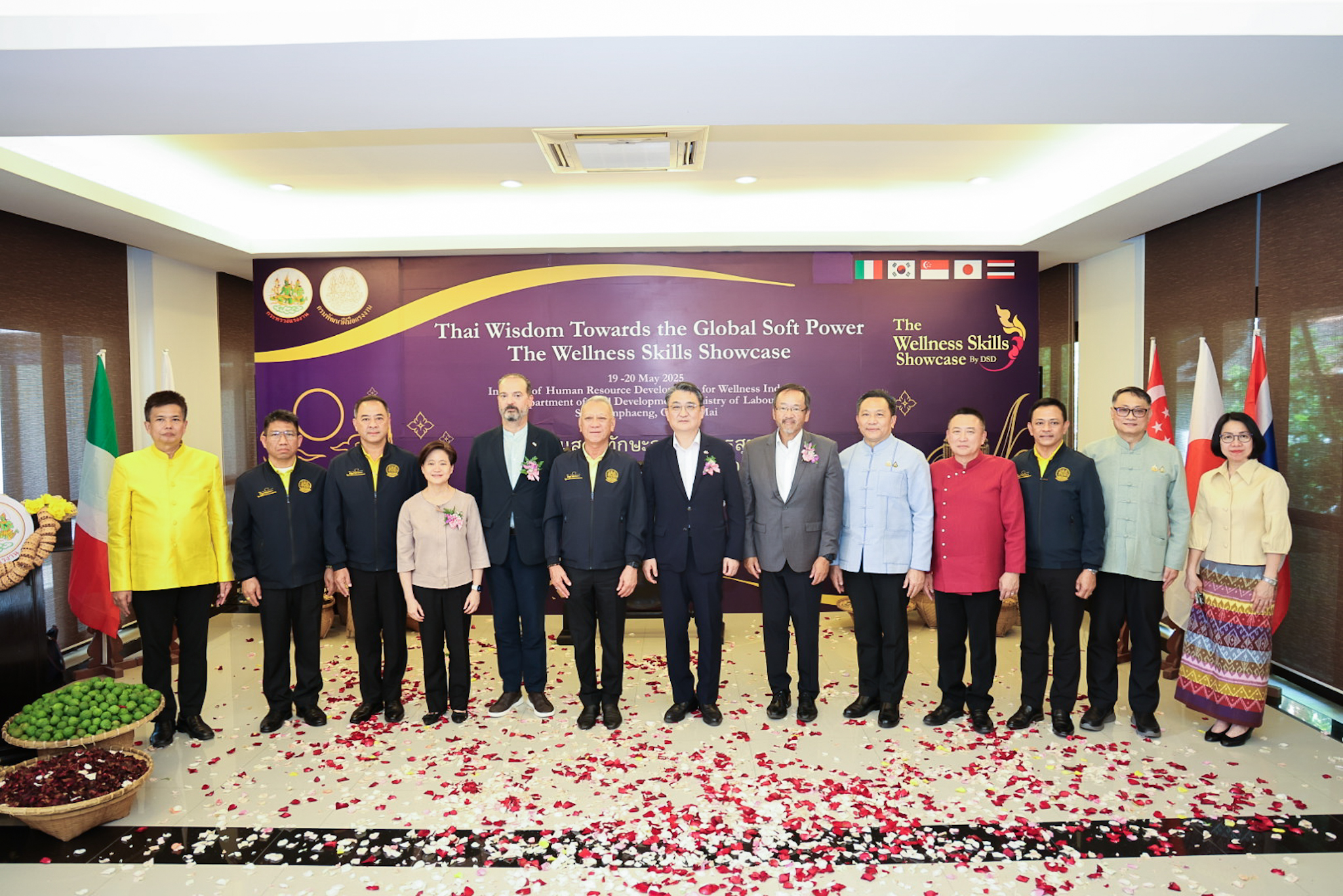 วันที่ 19 พฤษภาคม 2568 – นายพิพัฒน์ รัชกิจประการ รัฐมนตรีว่าการกระทรวงแรงงาน นำคณะเอกอัครราชทูตจาก 4 ประเทศ ได้แก่ นายเปาโล ดีโอนีซี (H.E. Mr. Paolo Dionisi) เอกอัครราชทูตสาธารณรัฐอิตาลี นายปาร์ค ยง-มิน (H.E. Mr. Park Yong-min) เอกอัครราชทูตสาธารณรัฐเกาหลี นางสาวแคทเทอรีน หว่อง (H.E. Ms. Catherine Wong) เอกอัครราชทูตสาธารณรัฐสิงคโปร์ นายมาซาโตะ โอตากะ (H.E. Mr. Masato Otaka) เอกอัครราชทูตญี่ปุ่น เยี่ยมชม สถาบันพัฒนาทรัพยากรมนุษย์เพื่ออุตสาหกรรมบริการสุขภาพ จังหวัดเชียงใหม่ และ โครงการหลวงศูนย์วิจัยและพัฒนาการเกษตรชนกาธิเบศรดำริ เพื่อศึกษาศักยภาพแรงงานด้านบริการสุขภาพแบบองค์รวม อาทิ การนวดไทย สปา และการใช้สมุนไพรไทย ซึ่งเป็นส่วนหนึ่งของการผลักดัน “Soft Power” ของไทยสู่ตลาดโลก โดยมี นายนิรัตน์ พงษ์สิทธิถาวร ผู้ว่าราชการจังหวัดเชียงใหม่ นายสมาสภ์ ปัทมะสุคนธ์ รองปลัดกระทรวงแรงงาน นายเดชา พฤกษ์พัฒนรักษ์ อธิบดีกรมพัฒนาฝีมือแรงงาน ผู้บริหารกระทรวงแรงงาน เข้าร่วม