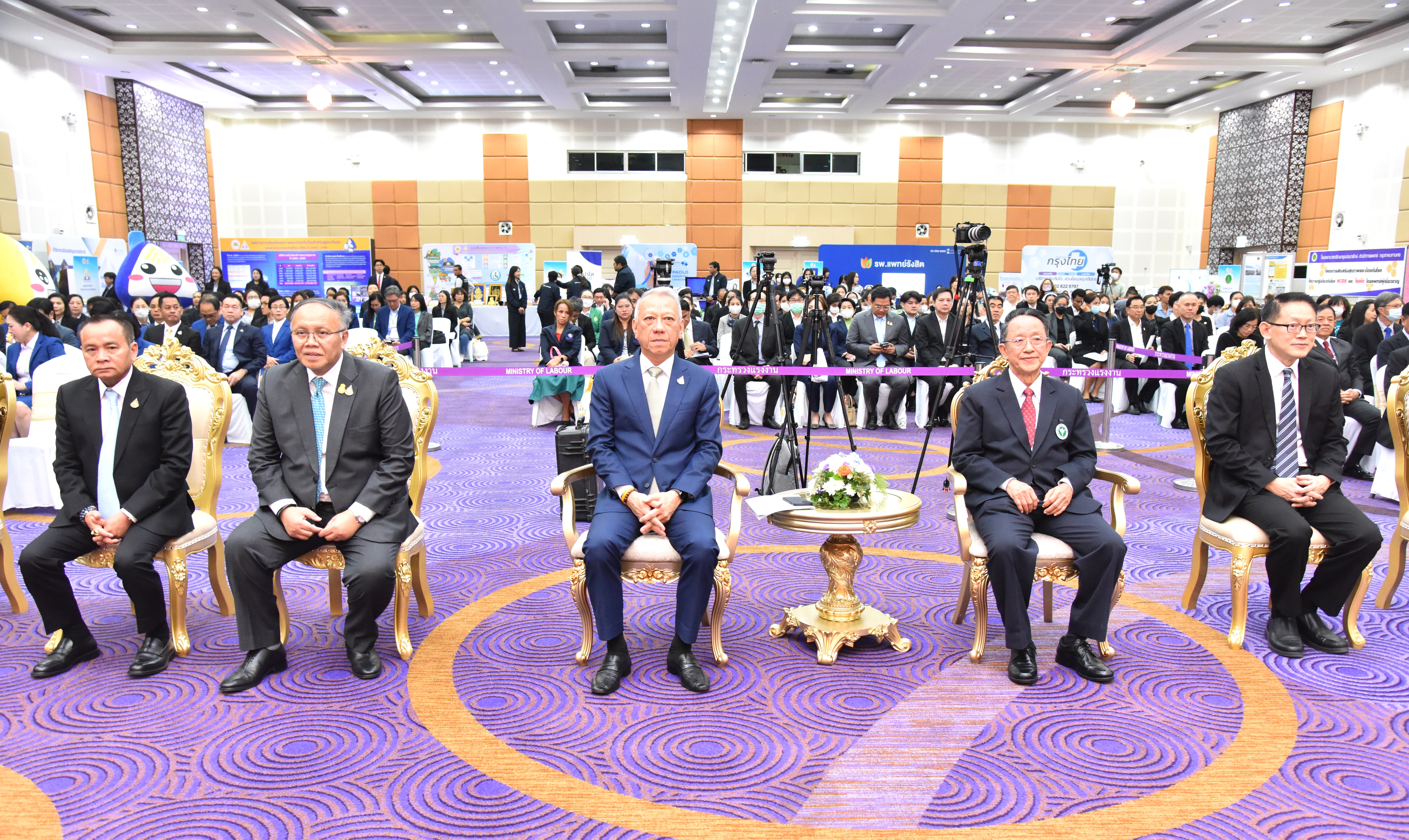 On December 20, 2023, at 10.00 hours, the Labour Minister, Mr. Phiphat Ratchakitprakarn, and the Minister of Public Health, Mr. Cholnan Srikaew, assigned the Assistant to the Minister of Public Health, Associate Professor Dr. Cherdchai Tantisirin, to co-chair the signing ceremony of the Memorandum of Understanding in integrating and organizing health promotion and disease prevention services for insured persons in the social security system between the Social Security Office and the National Health Security Office. The Assistant to the Labour Minister, Mr. Siraphop Duangsodsri, Secretariat to the Labour Minister, Mr. Aree Krainara; the Ministry of Labour’s Spokesperson (on Politics), Mr. Phumiphat Mueanchan, and the Deputy Permanent Secretary of Labour, Mr. Wannarat Srisuksai, participated in the signing ceremony. The Social Security Office’s Secretary-General, Mr. Boonsong Thapchaiyut, joined in signing the Memorandum of Understanding with the Secretary-General of the National Health Security Office, Dr. Jadej Thamthatcharee. The Ministry of Labour’s executives, the Social Security Office’s executives, the National Health Security Office’s executives, and hospital representatives attended the ceremony at the Ministry of Labour’s meeting room, 5th floor, Ministry of Labour, Mitmaitri Road, Din Daeng District, Bangkok.