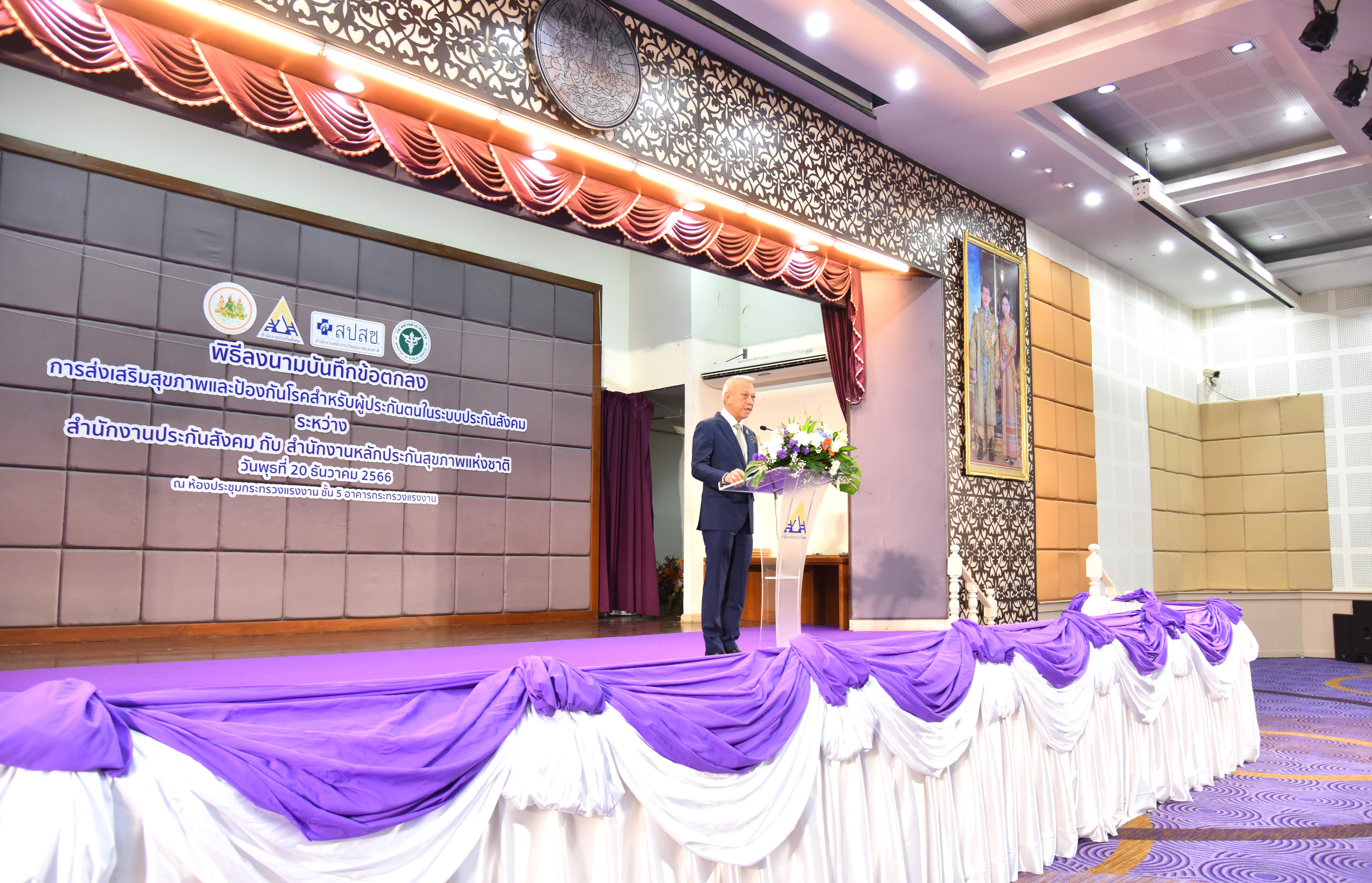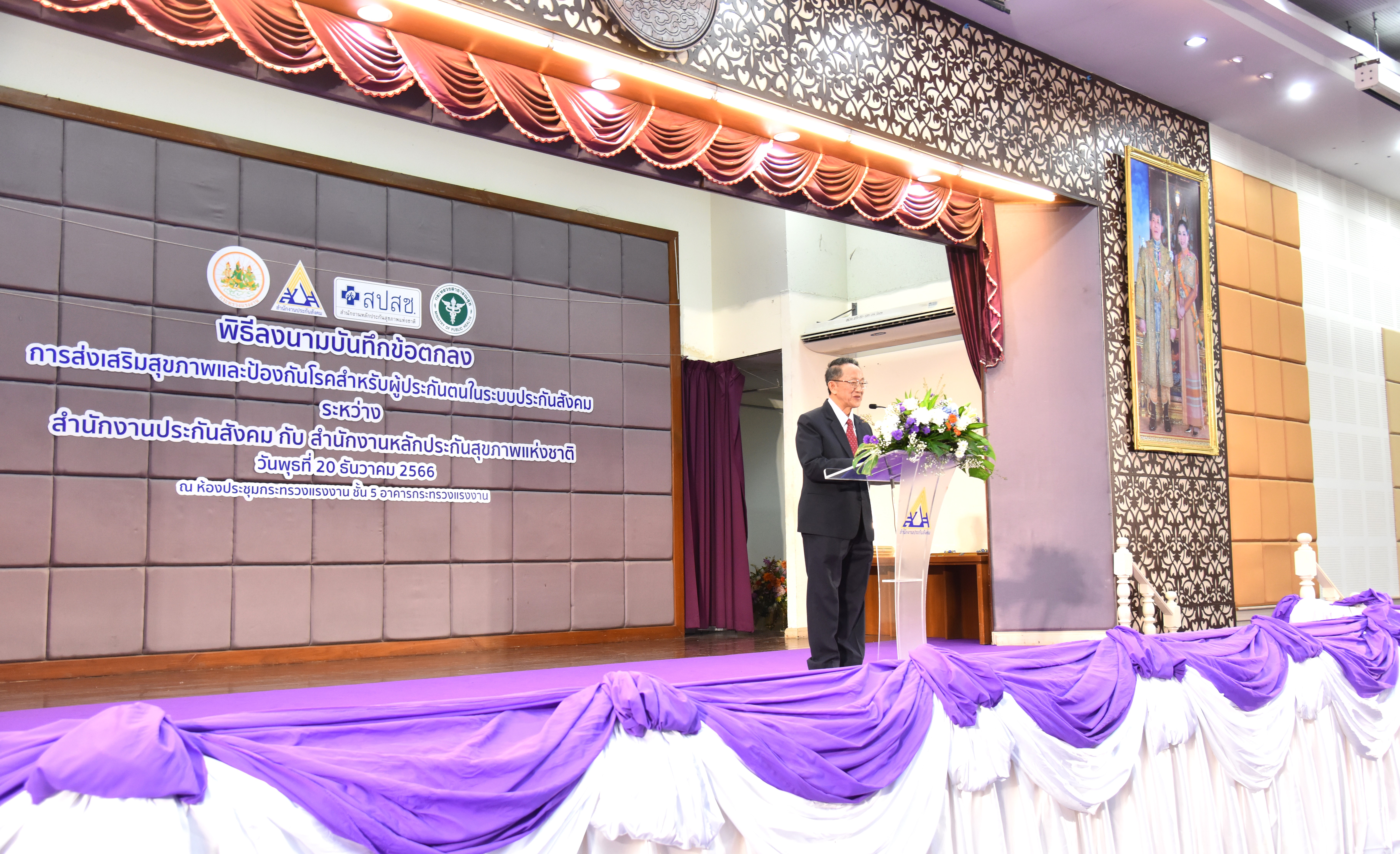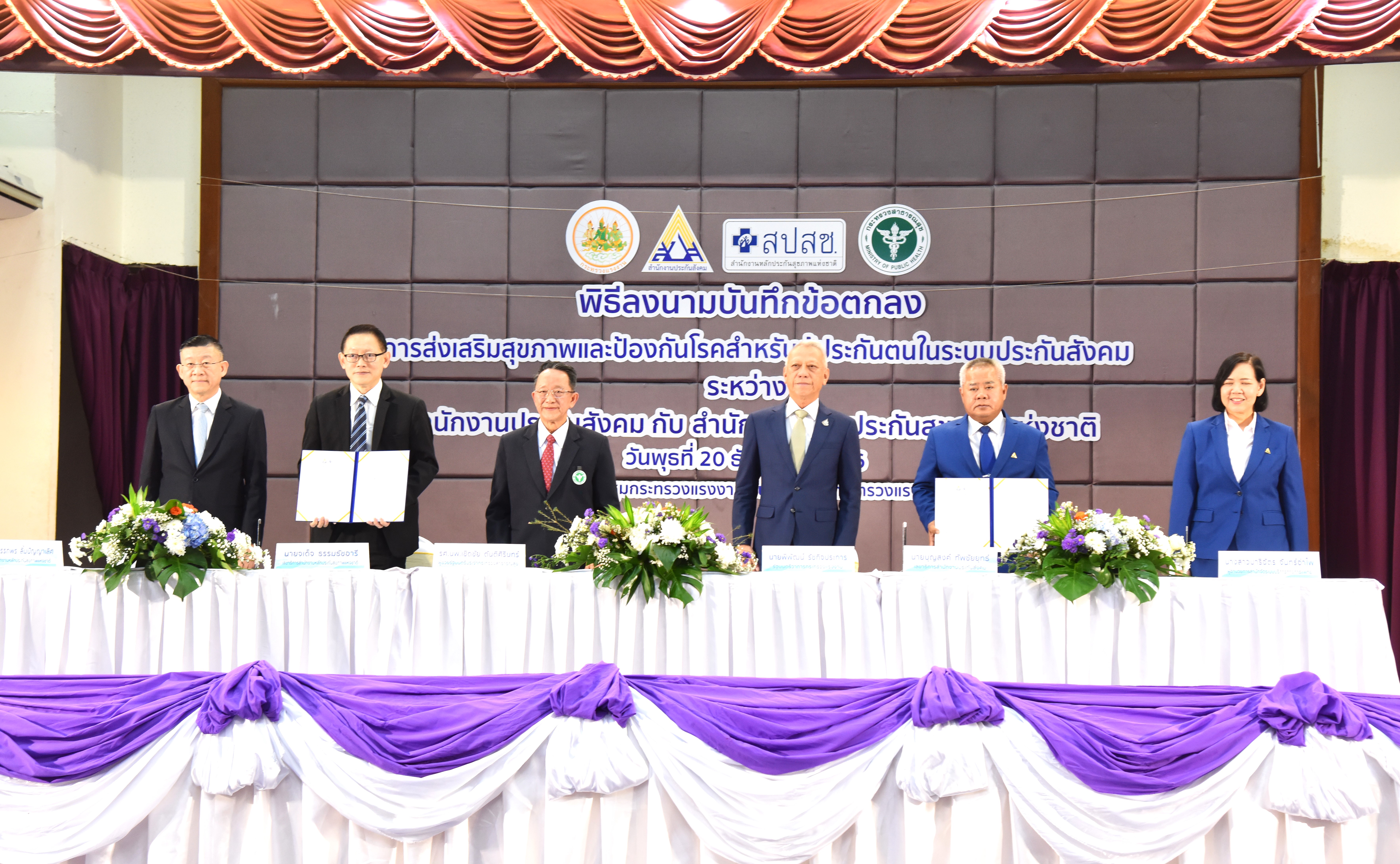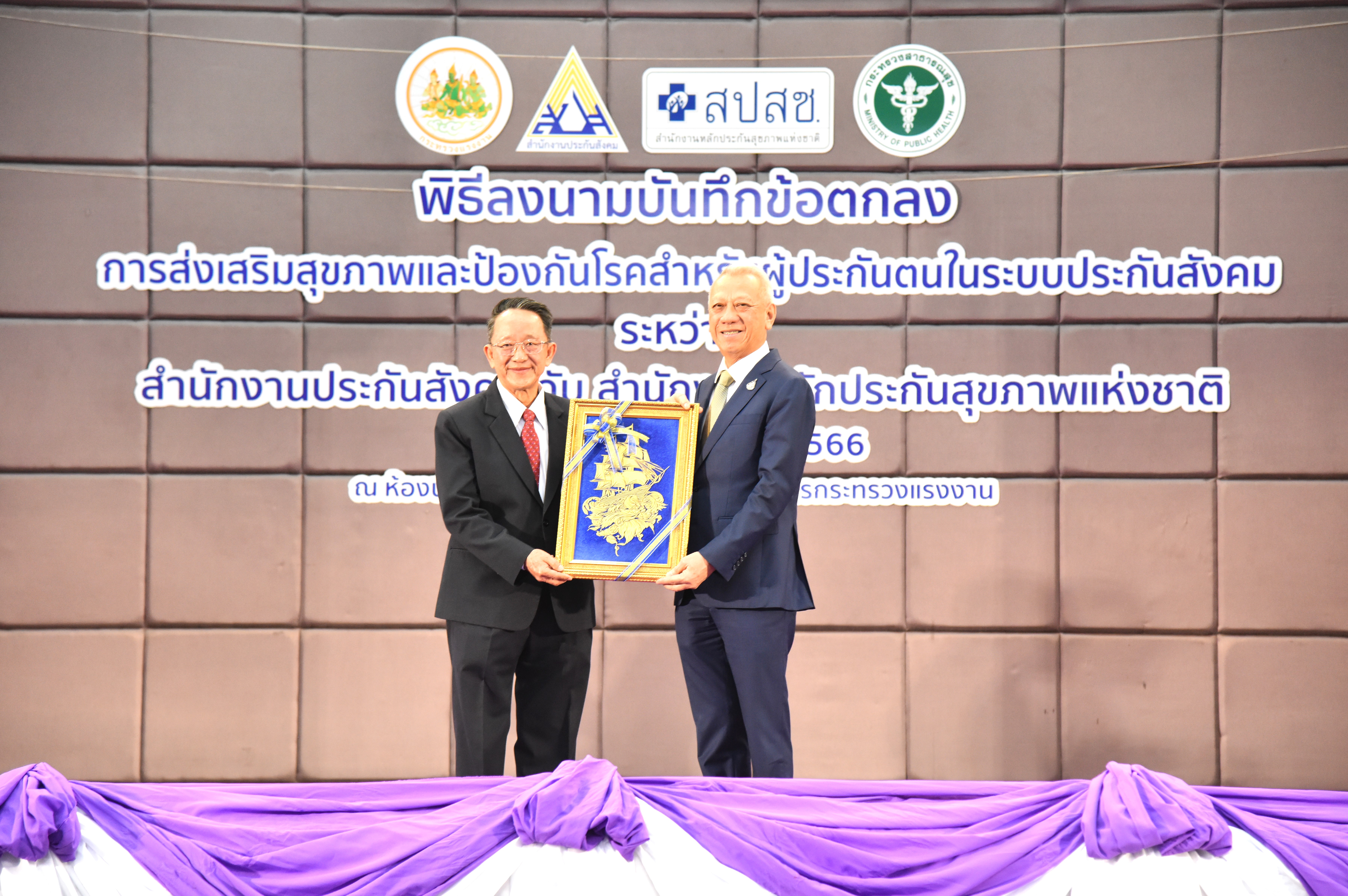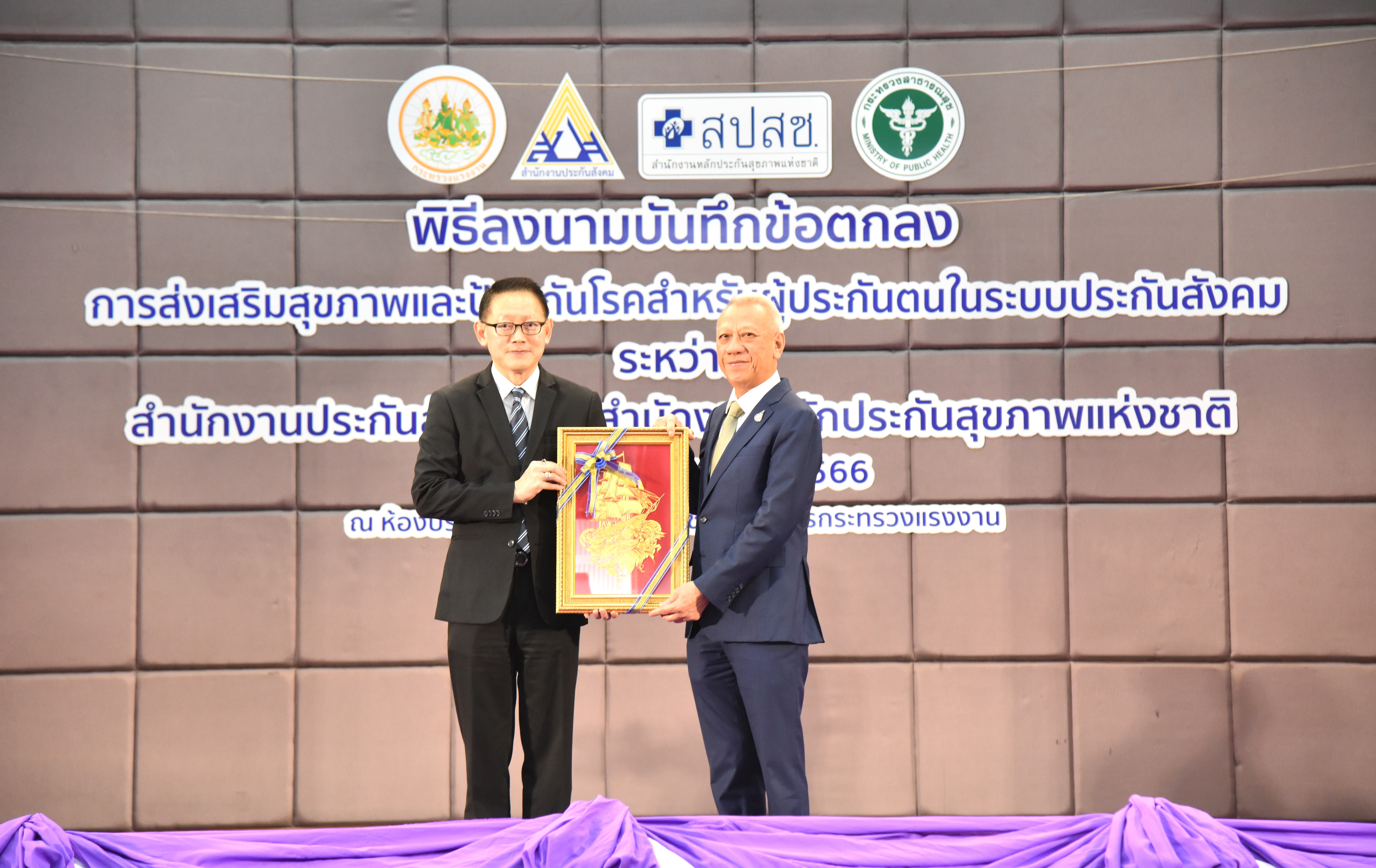 วันที่ 20 ธันวาคม 2566 เวลา 10.00 น. นายพิพัฒน์ รัชกิจประการ รัฐมนตรีว่าการกระทรวงแรงงาน และนายแพทย์ชลน่าน ศรีแก้ว รัฐมนตรีว่าการกระทรวงสาธารณสุข ได้มอบหมายรองศาสตราจารย์นายแพทย์เชิดชัย ตันติศิรินทร์ ผู้ช่วยรัฐมนตรีประจำกระทรวงสาธารณสุข ร่วมเป็นประธานในพิธีลงนามบันทึกความร่วมมือการดำเนินงาน และการบริหารจัดการในการบูรณาการจัดระบบบริการส่งเสริมสุขภาพและป้องกันโรคสำหรับผู้ประกันตนในระบบประกันสังคม ระหว่างสำนักงานประกันสังคมและสำนักงานหลักประกันสุขภาพแห่งชาติ โดยมี นายสิรภพ ดวงสอดศรี ผู้ช่วยรัฐมนตรีประจำกระทรวงแรงงาน นายอารี ไกรนรา เลขานุการรัฐมนตรีว่าการกระทรวงแรงงาน นายภูมิพัฒน์ เหมือนจันทร์ โฆษกกระทรวงแรงงาน (ฝ่ายการเมือง ) นายวรรณรัตน์ ศรีสุขใส รองปลัดกระทรวงแรงงาน ร่วมเป็นเกียรติในพิธีลงนาม นายบุญสงค์ ทัพชัยยุทธ์ เลขาธิการสำนักงานประกันสังคม ร่วมลงนามบันทึกข้อตกลงกับนายแพทย์จเด็จ ธรรมธัชอารี เลขาธิการสำนักงานหลักประกันสุขภาพแห่งชาติ ผู้บริหารระดับสูงกระทรวงแรงงาน ผู้บริหารสำนักงานประกันสังคม ผู้บริหารสำนักงานหลักประกันสุขภาพแห่งชาติ พร้อมผู้แทนสถานพยาบาล เข้าร่วมพิธี ณ ห้องประชุมกระทรวงแรงงาน ชั้น 5 อาคารกระทรวงแรงงาน ถนนมิตรไมตรี เขตดินแดง กรุงเทพมหานคร