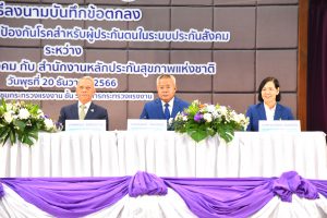 The Labour Minister, Mr. Phiphat Ratchakitprakarn, said that the Ministry of Labour’s Social Security Office and the Ministry of Public Health’s National Health Security Office have a mission to drive the creation of health insurance for Thai people “focusing on prevention over treatment for a long quality of life.” In 2023, the Social Security Office has taken steps to promote health promotion and disease prevention for insured persons. It launched the project to detect the risk of cardiovascular disease, piloting in 13 provinces. The effort has reached 277,654 insured persons who participated in the project. The National Health Security Office has given importance to working-age people and has therefore designated health promotion as a foundational service.