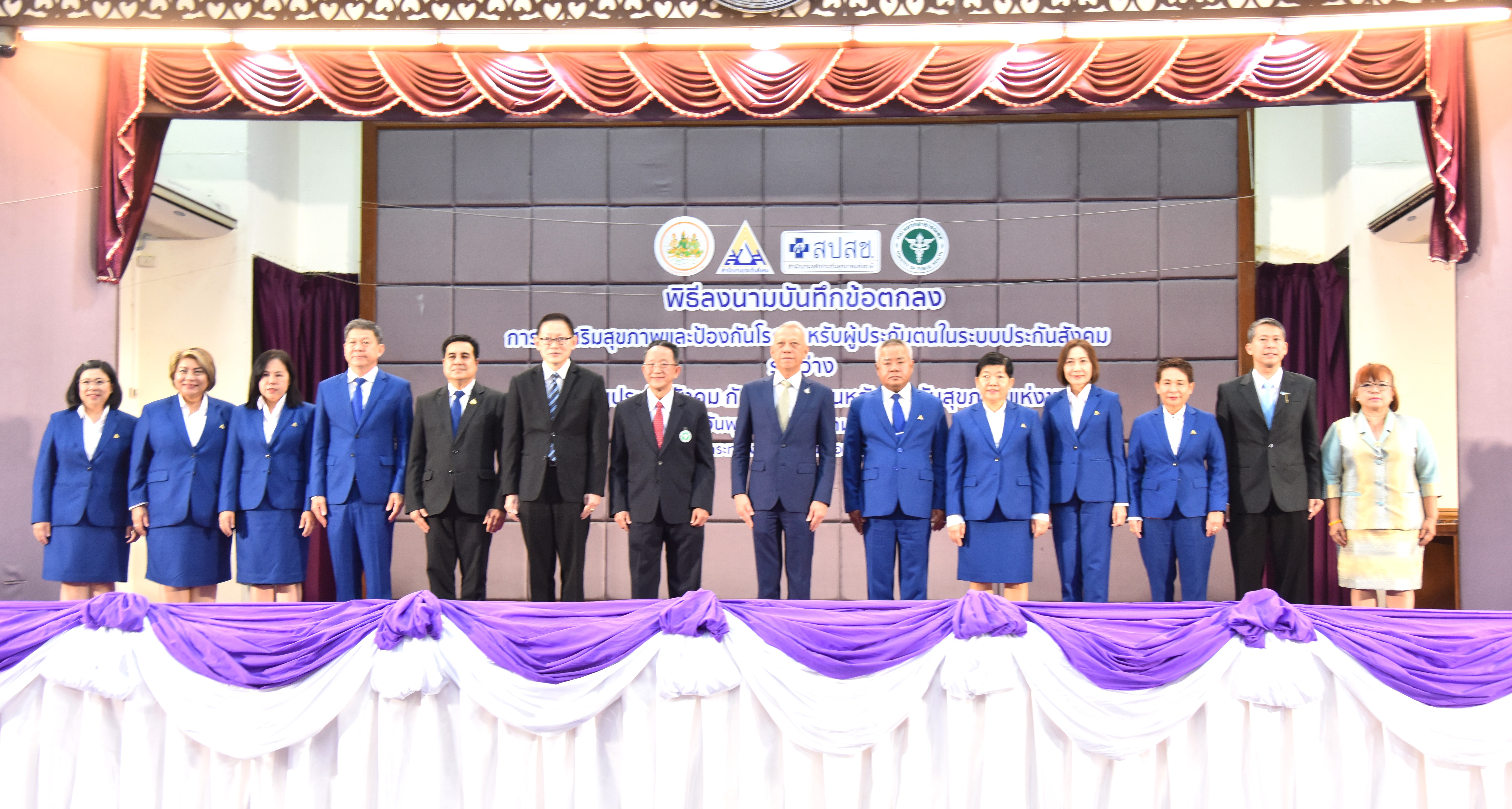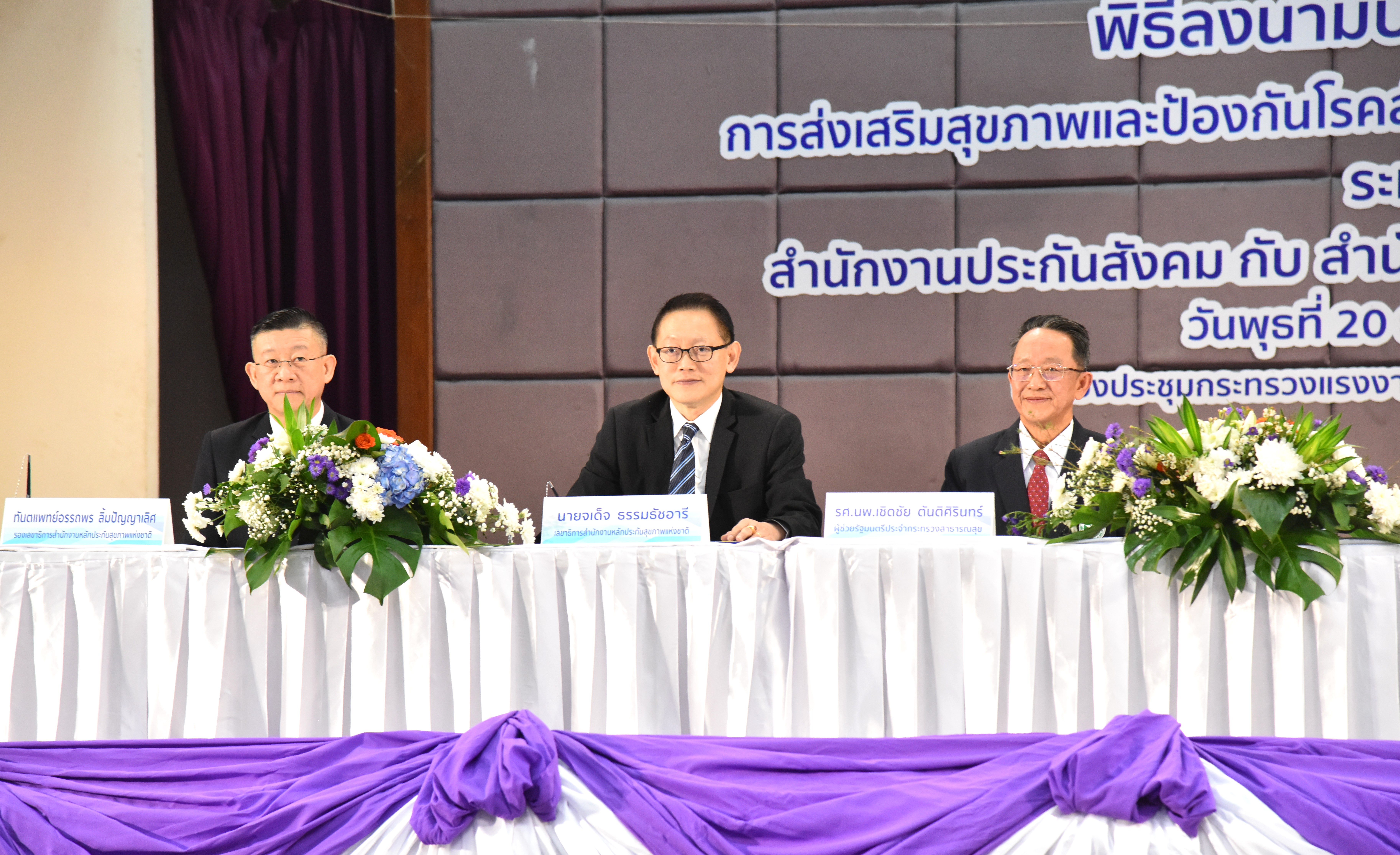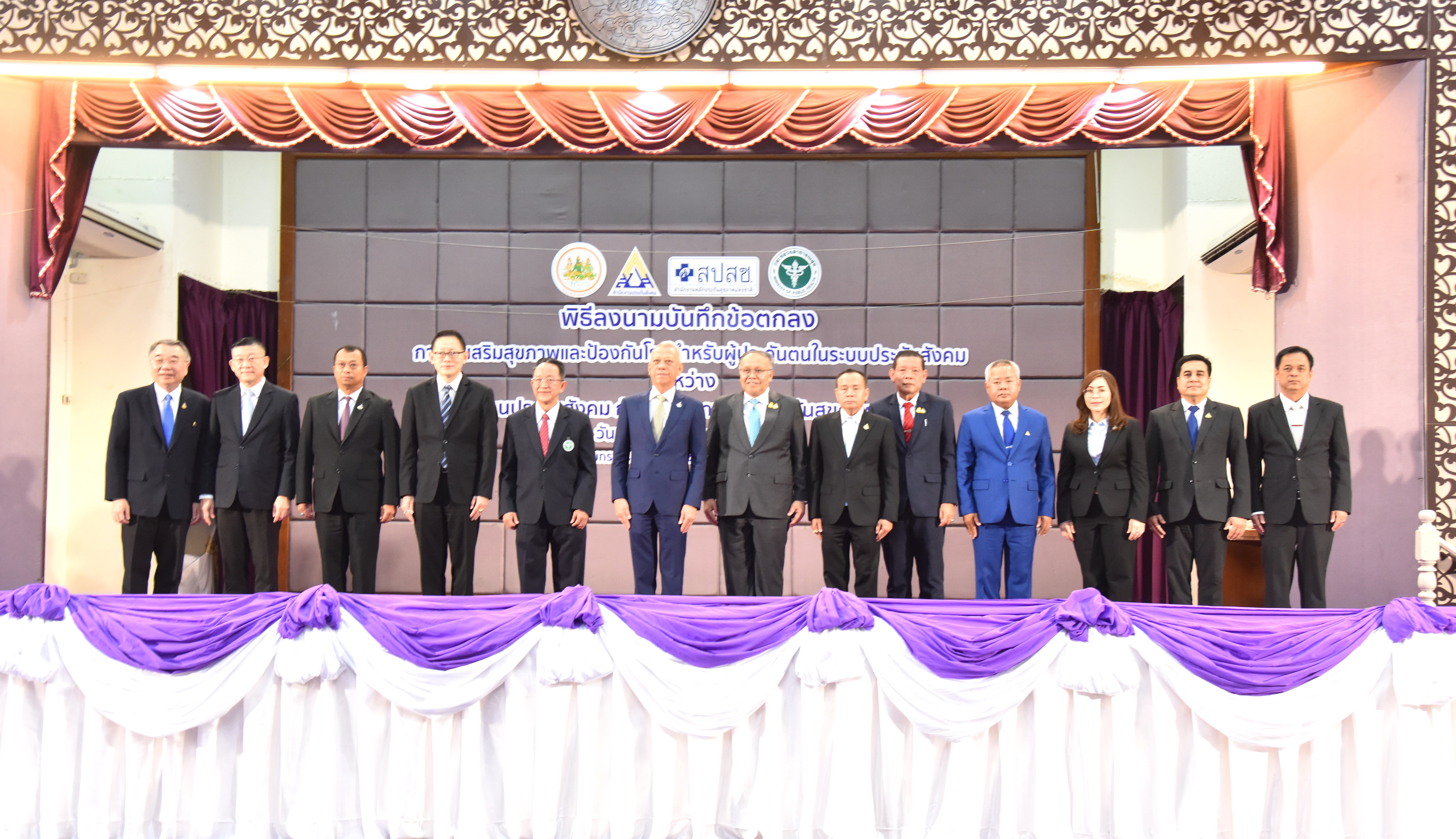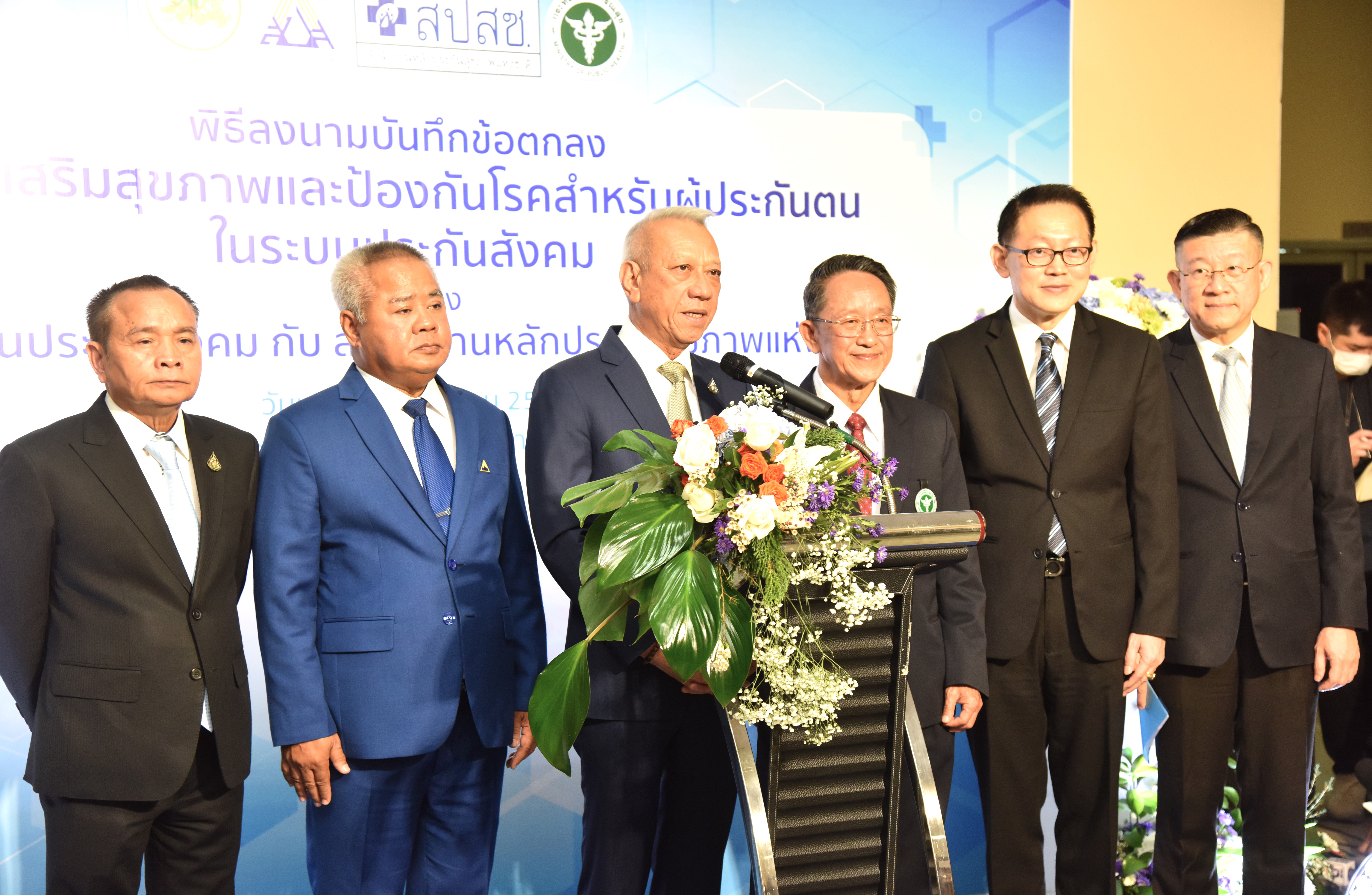 The Labour Minister, Mr. Phiphat, continued that today is a great opportunity for the Social Security Office and the National Health Security Office to come together to make a Memorandum of Understanding on integrating and organizing health promotion and disease prevention services for insured persons in the social security system. Such cooperation reduces overall public health costs, prevents duplication, and is more efficient. It also ensures that all Thai citizens have the right to receive public health services that are of a standard. More importantly, insured persons will receive additional benefits beyond the basic checkup items, such as kidney function, Cr, urine test, Ua, and lung x-ray, through a single, excellent standard treatment management system.