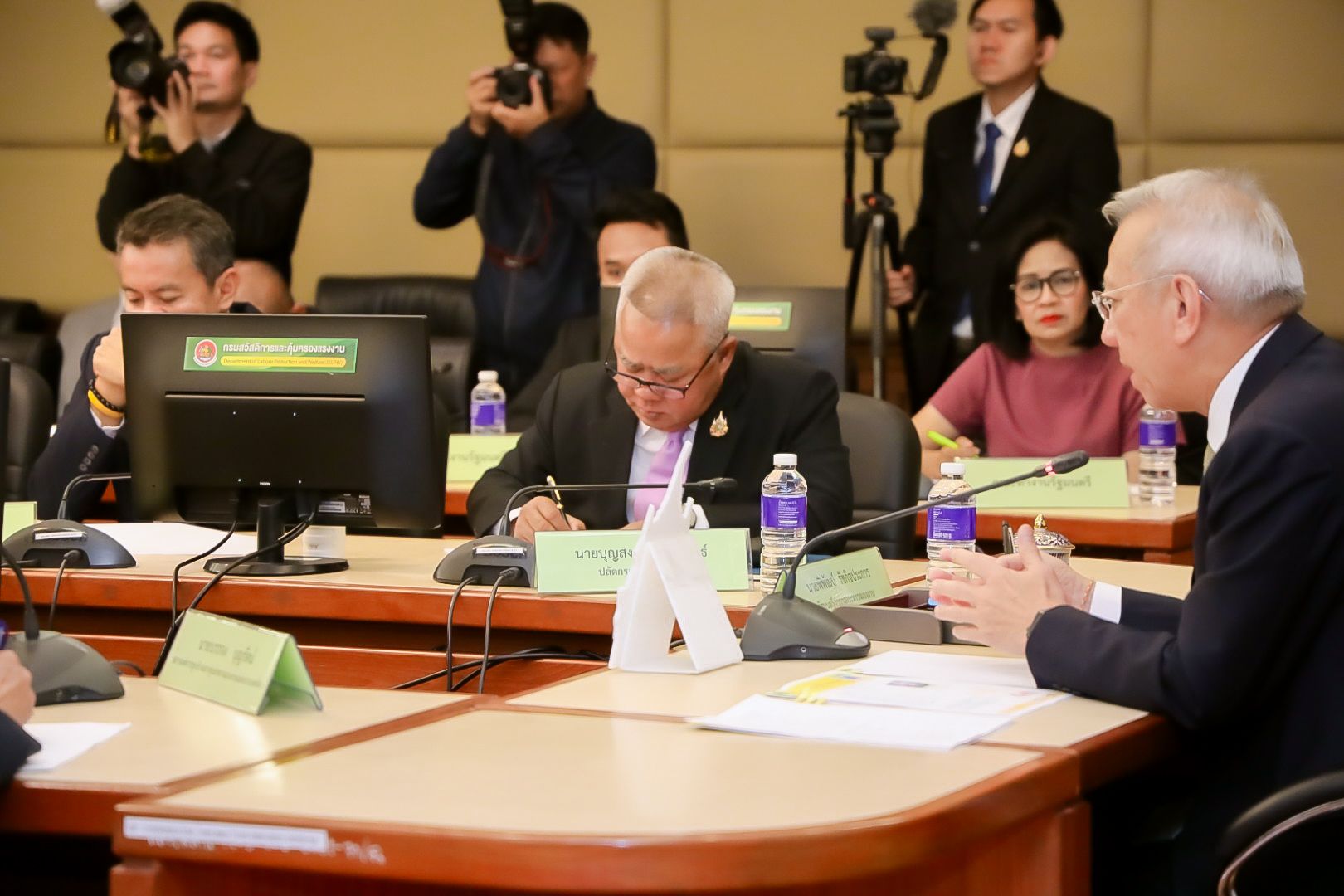 วันที่ 5 กุมภาพันธ์ 2568 เวลา 10.30 น. นายพิพัฒน์ รัชกิจประการ รัฐมนตรีว่าการกระทรวงแรงงาน พร้อมด้วย นายภุชงค์ วรศรี ประจำสำนักเลขาธิการนายกรัฐมนตรี นายบุญสงค์ ทัพชัยยุทธ์ ปลัดกระทรวงแรงงาน และผู้บริหารระดับสูงกระทรวงแรงงาน ให้การต้อนรับ คณะกรรมการบริหารองค์การแรงงานแห่งประเทศไทย (อรท.) ในโอกาสเข้าพบ รัฐมนตรีว่าการกระทรวงแรงงานเพื่อนำเสนอปัญหาแรงงาน นำโดย นายบรรจง บุญรัตน์ ประธานสภาองค์การลูกจ้างสภาศูนย์กลางแรงงานแห่งประเทศไทย ณ ห้องประชุม ศ.นิคม ชั้น 5 กรมสวัสดิการและคุ้มครองแรงงาน อาคารกระทรวงแรงงาน