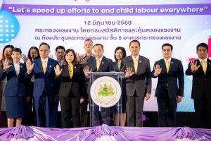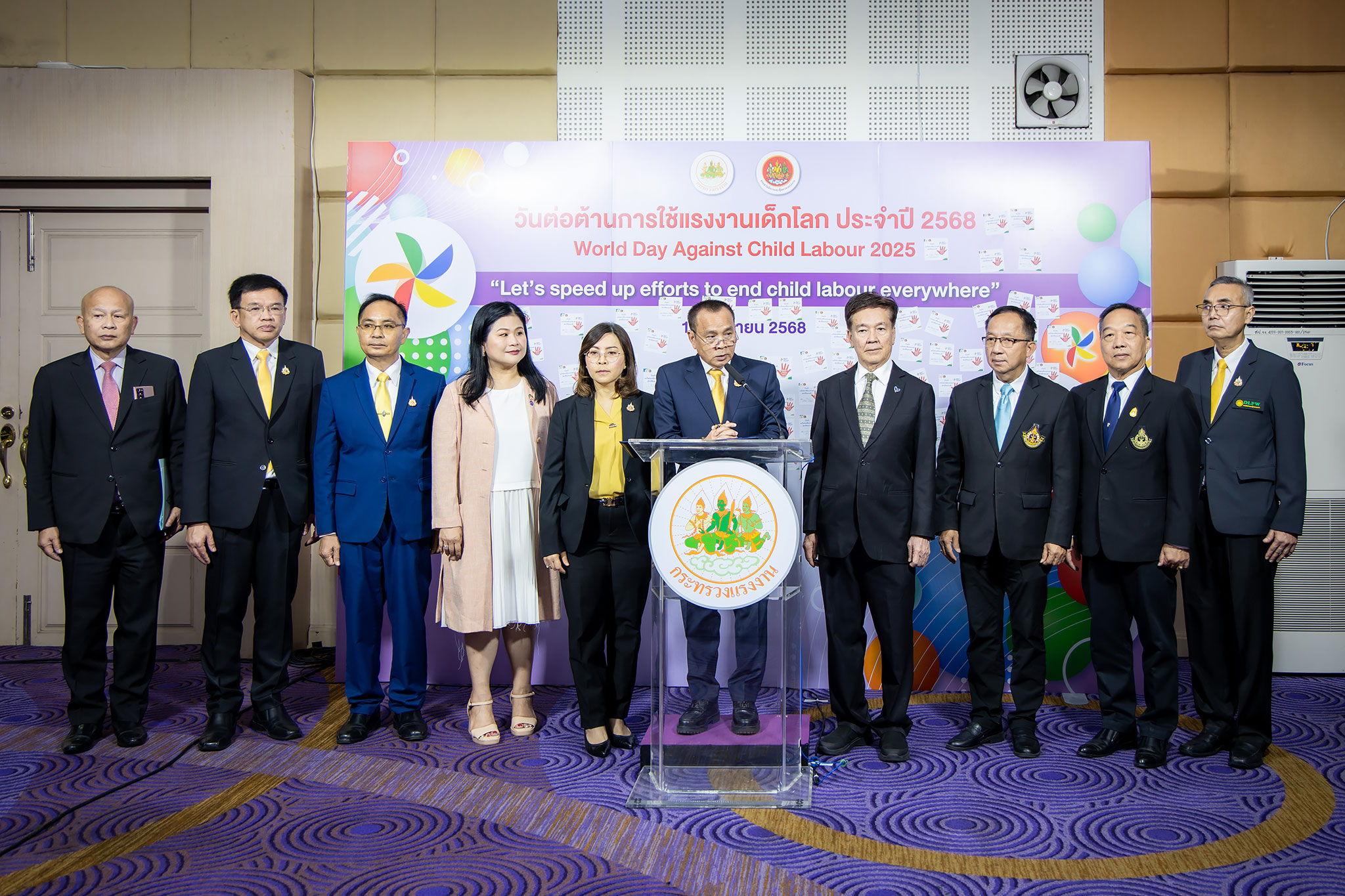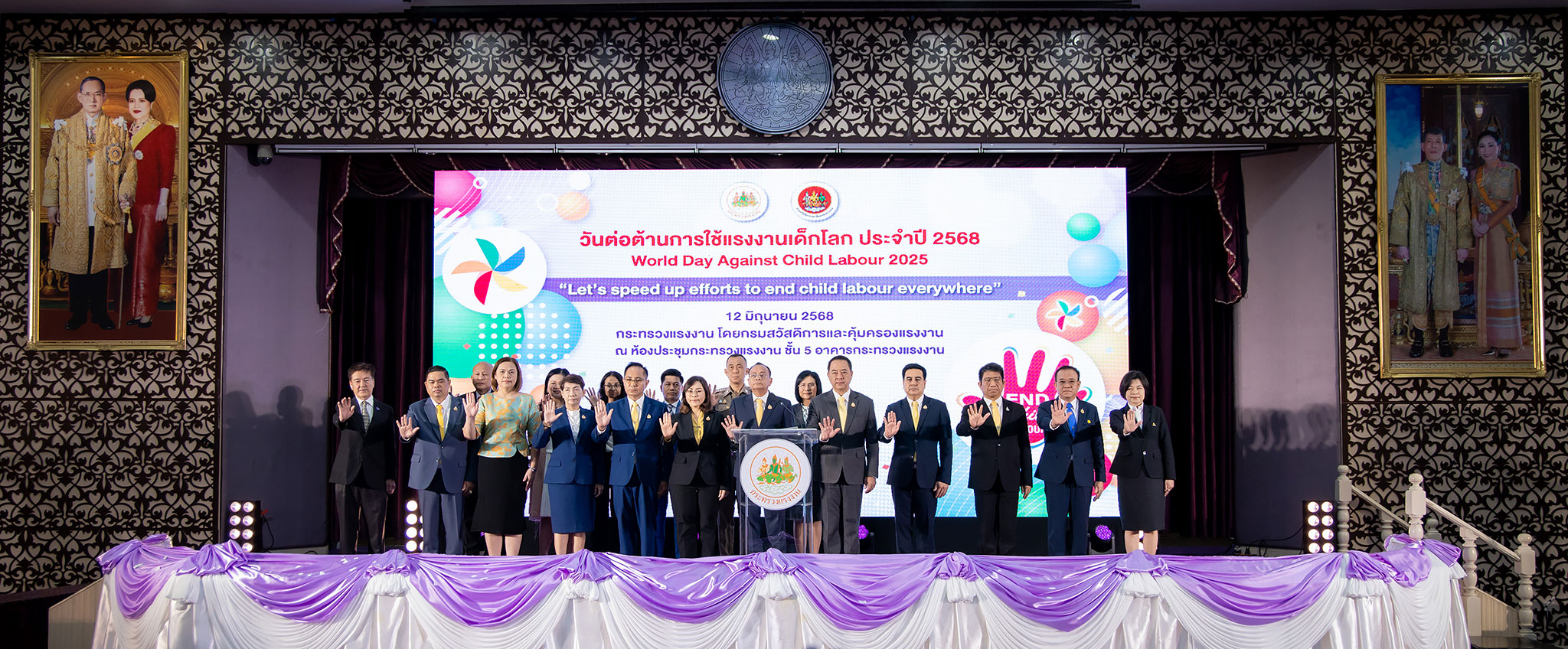 วันที่ 12 มิถุนายน 2568 เวลา 10.00 น. นายพิพัฒน์ รัชกิจประการ รัฐมนตรีว่าการกระทรวงแรงงาน มอบหมายให้ นายอารี ไกรนรา เลขานุการรัฐมนตรีว่าการกระทรวง เป็นประธานในพิธีเปิดงานรณรงค์เนื่องในวันต่อต้าน การใช้แรงงานเด็กโลก ประจำปี 2568 (World Day Against Child Labour, 2025) โดยมี นางสาวบุปผา เรืองสุด รองปลัดกระทรวงแรงงาน นายสมาสภ์ ปัทมะสุคนธ์ รองปลัดกระทรวงแรงงาน ว่าที่ร้อยตรี สมศักดิ์ พรหมดำ ผู้ตรวจราชการกระทรวงแรงงาน นายเกริกไกร นาสมยนต์ ที่ปรึกษากฎหมาย นางสาวกรจิรัฏฐ์ พงจันทร์ศธร ผู้ช่วยปลัดกระทรวงแรงงาน และผู้บริหารกระทรวงแรงงาน ร่วมเป็นเกียรติในงานด้วย ณ ห้องประชุมกระทรวงแรงงาน ชั้น 5 อาคารกระทรวงแรงงาน