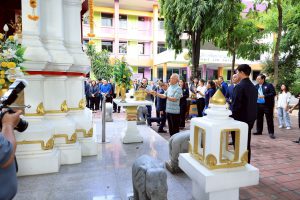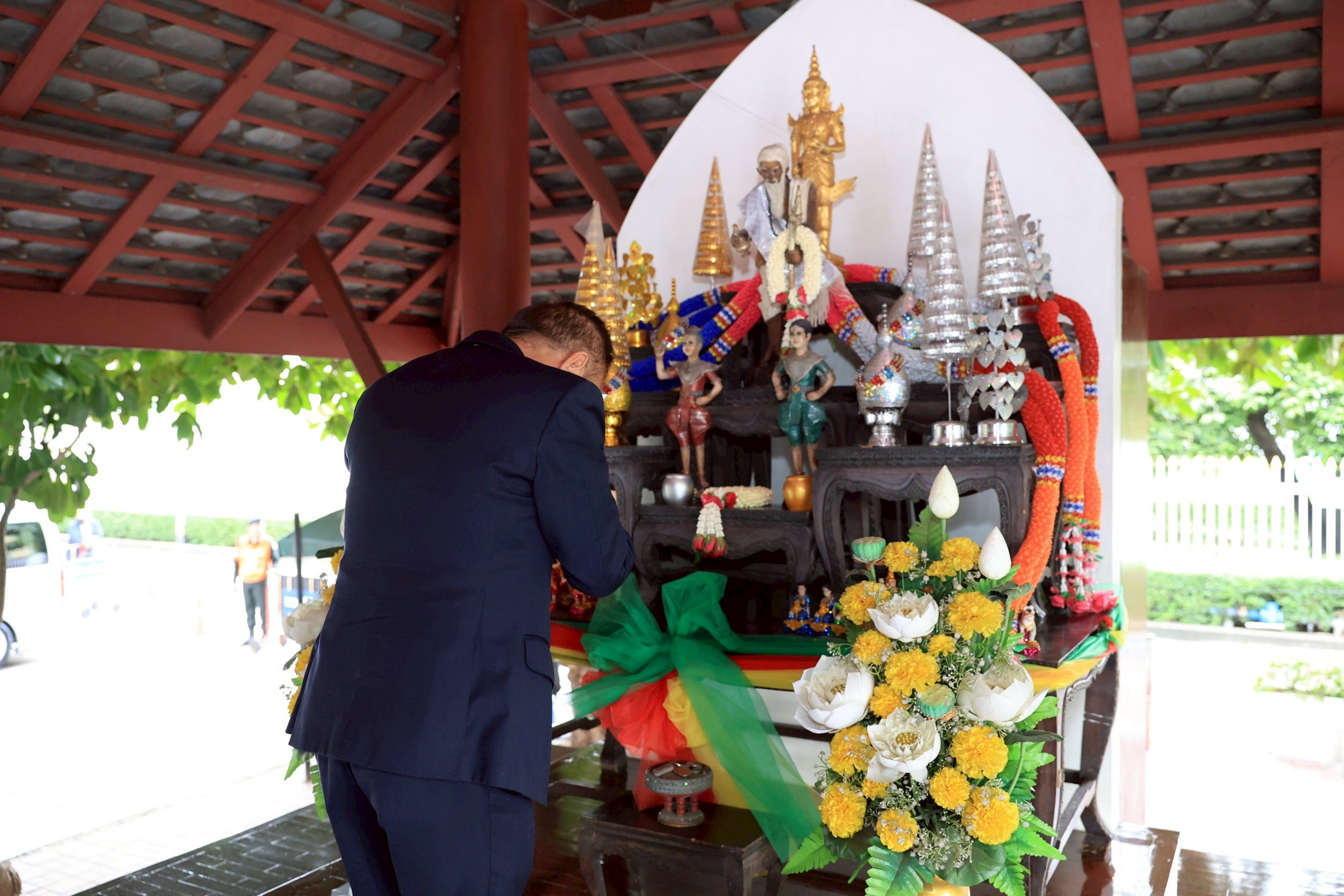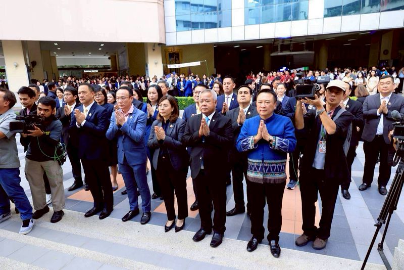 วันที่ 19 มิถุนายน 2568 เวลา 16.00 น. นายพิพัฒน์ รัชกิจประการ รัฐมนตรีว่าการกระทรวงแรงงาน พร้อมด้วย นายอารี ไกรนรา เลขานุการรัฐมนตรีว่าการกระทรวงแรงงาน นาวาอากาศเอก อธิคุณ คงมี คณะทำงานรัฐมนตรีด้านการบริหารจัดการแรงงานผิดกฎหมาย สักการะสิ่งศักดิ์สิทธิ์ประจำกระทรวงแรงงาน ประกอบด้วย พระพุทธสุทธิธรรมบพิตร พระพุทธชินราช ศาลพ่อปู่ชัยมงคล ศาลท้าวมหาพรหมเทวฤทธิ์ ศาลพ่อปู่ชินพรหมมา เนื่องในโอกาสอำลาตำแหน่ง โดยมีนายบุญสงค์ ทัพชัยยุทธ์ ปลัดกระทรวงแรงงาน นางสาวบุปผา เรืองสุด รองปลัดกระทรวงแรงงาน นายสมาสภ์ ปัทมะสุคนธ์ รองปลัดกระทรวงแรงงาน นายสันติ นันตสุวรรณ รองปลัดกระทรวงแรงงาน พร้อมด้วย ผู้บริหารระดับสูงกระทรวงแรงงาน ข้าราชการ เจ้าหน้าที่ จากทุกหน่วยงานในสังกัดกระทรวงแรงงาน ร่วมมอบดอกไม้ให้กำลังใจ ณ บริเวณโถงด้านล่างกระทรวงแรงงาน