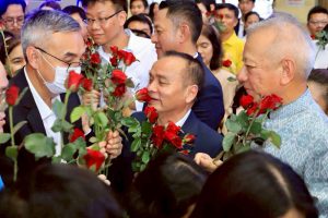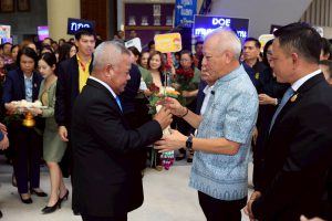 โอกาสนี้ รัฐมนตรีว่าการกระทรวงแรงงาน ได้พบปะพูดคุยด้วยความเป็นกันเองกับคณะผู้บริหาร ข้าราชการ เจ้าหน้าที่หน่วยงานในสังกัดกระทรวงแรงงาน และสื่อมวลชน โดยแต่ละหน่วยงานต่างมีป้ายข้อความให้กำลังใจ ซึ่งบรรยากาศเป็นไปด้วยความผูกพัน