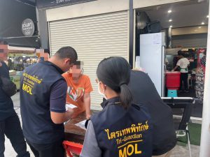 “ พบแรงงานผิดกฎหมาย แจ้งได้ที่: สายด่วนกระทรวงแรงงาน 1506 หรือแจ้งตรงที่ คณะทำงานเฉพาะกิจ “ไตรเทพพิทักษ์” กระทรวงแรงงาน