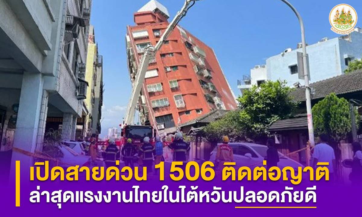 “The cities that were severely affected by buildings collapsing were Hualien, which has 355 Thai workers, and New Taipei City, which has 7,637 Thai workers working in companies there. The workers were not affected by this incident. However, the Labour Offices in Taipei and Kaohsiung and the Thai Trade and Economic Office are continuously following the situation and providing updates to workers via Facebook and LINE,” concluded Mr. Pairoj.