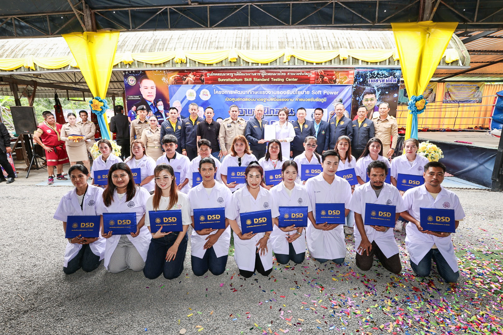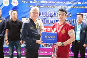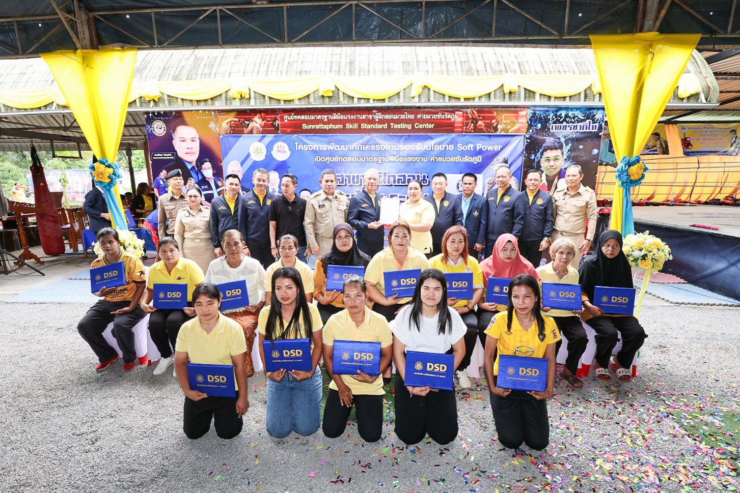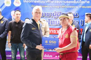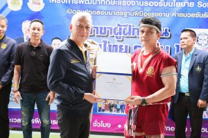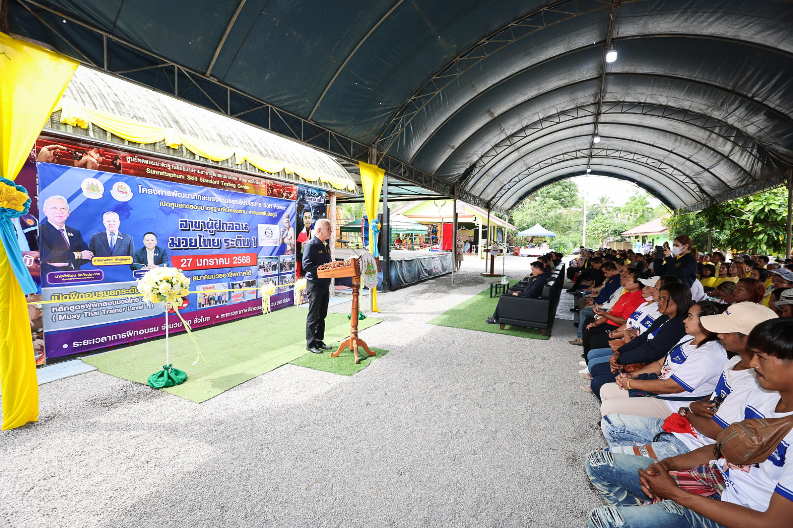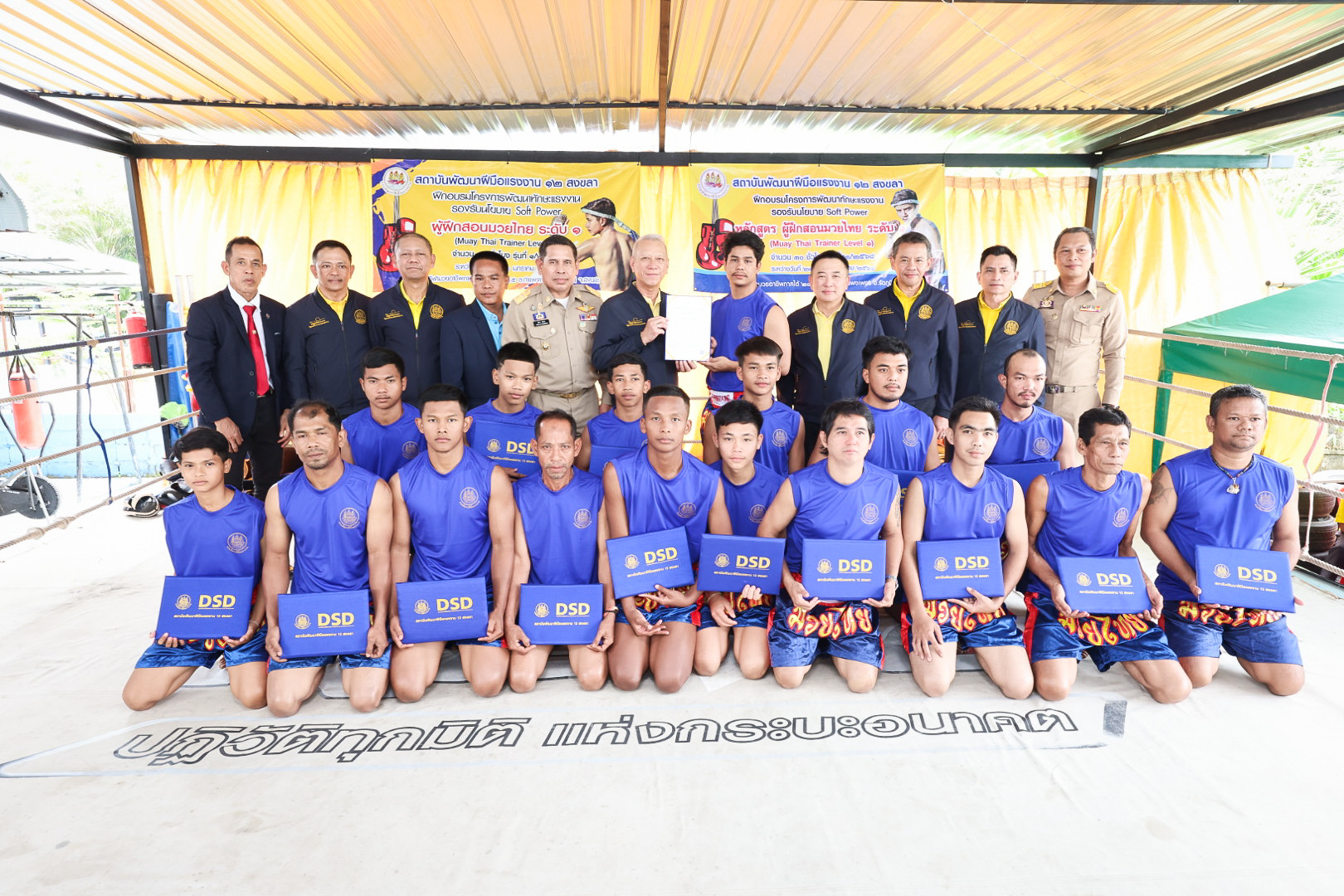 วันที่ 27 มกราคม 2568 นายพิพัฒน์ รัชกิจประการ รัฐมนตรีว่าการกระทรวงแรงงาน เป็นประธานพิธีมอบป้ายศูนย์ทดสอบมาตรฐานฝีมือแรงงาน สาขา ผู้ฝึกสอนมวยไทย ระดับ 1 และมอบวุฒิบัตรให้ผู้ผ่านการฝึกอบรม จำนวน 60 คน พร้อมปิดการฝึกอบรม โดยมี นายสังคม เกิดก่อ รองผู้ว่าราชการจังหวัดสงขลา กล่าวต้อนรับ นายเดชา พฤกษ์พัฒนรักษ์ อธิบดีกรมพัฒนาฝีมือแรงงาน กล่าวรายงาน พร้อมด้วย นายภุชงค์ วรศรี ประจำสำนักเลขาธิการนายกรัฐมนตรี ปฏิบัติหน้าที่ประจำกระทรวงแรงงาน นายพิเชษฐ์ ทองพันธ์ ผู้ตรวจราชการกระทรวงแรงงาน ผู้บริหารกระทรวงแรงงาน นายพิทยา รัตนพันธ์ นายกสมาคมกีฬามวยอาชีพภาคใต้ นาวาอากาศเอก อธิคุณ คงมี อดีตผู้อำนวยการ องค์การบริหารการพัฒนาพื้นที่พิเศษเพื่อการท่องเที่ยวอย่างยั่งยืน และหัวหน้าส่วนราชการสังกัดกระทรวงแรงงานร่วมเป็นเกียรติ ณ ค่ายมวยซันรัตภูมิ อำเภอรัตภูมิ จังหวัดสงขลา