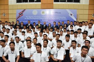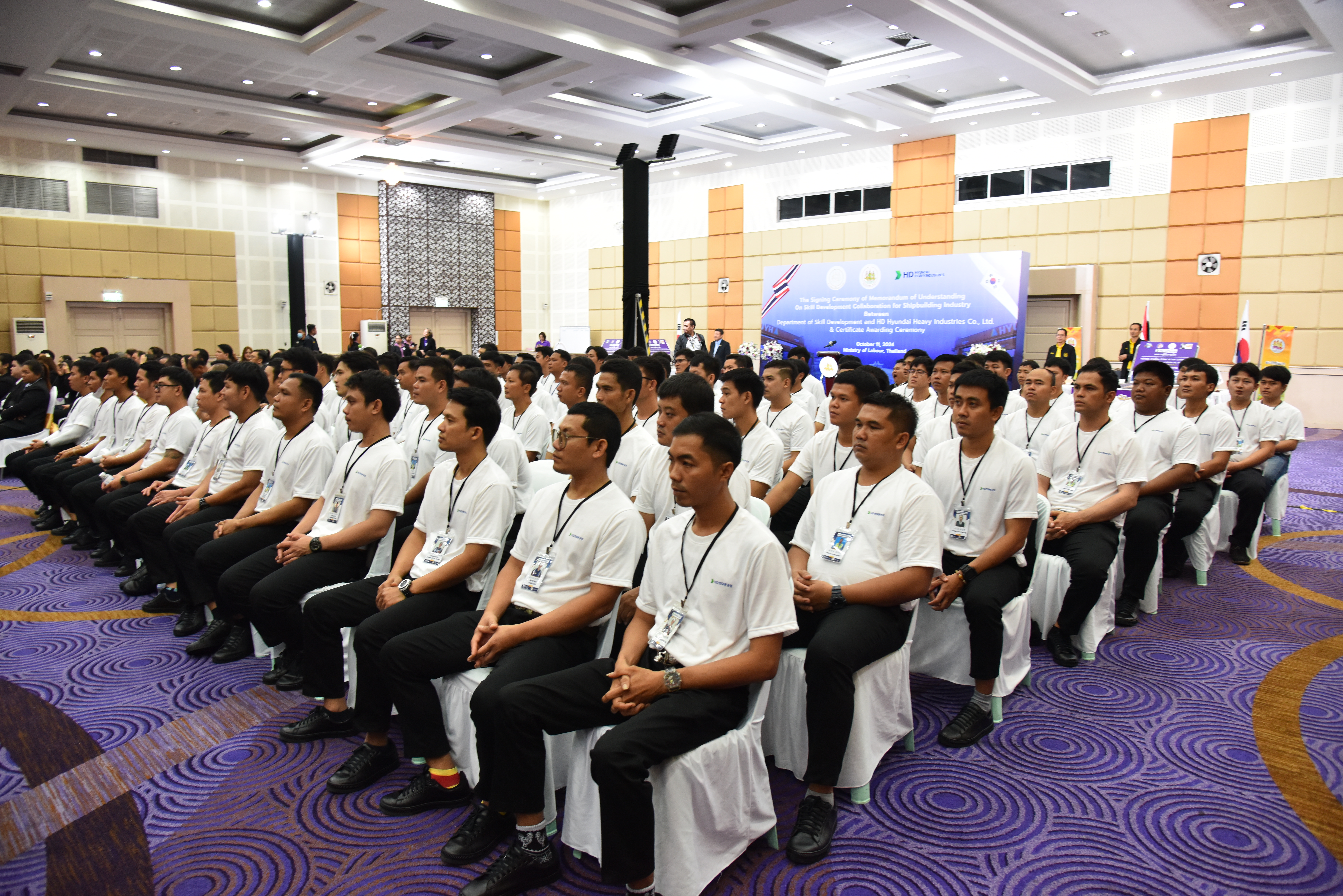 นายพิพัฒน์ กล่าวต่อว่า สำหรับวันนี้ ยังมีการมอบวุฒิบัตรให้แก่ผู้ผ่านการฝึกอบรม จำนวน 88 คน ที่จะได้เดินทางไปทำงานสาธารณรัฐเกาหลี ในอุตสาหกรรมอู่ต่อเรือ กลุ่มแรก ที่ผ่านการอบรม 3 หลักสูตร ได้แก่ 1) หลักสูตรการประกอบท่อแรงดันสูงในงานอุตสาหกรรมอู่ต่อเรือ จำนวน 41 คน ฝึกอบรม ณ สถาบันพัฒนาบุคลากรการเชื่อม จังหวัดสมุทรปราการ 2) การเชื่อมทิกสำหรับท่อแรงดันสูงในงานอุตสาหกรรมการต่อเรือ จำนวน 21 คน และ 3) การเชื่อมฟลักคอร์ 3G, 6G จำนวน 26 คน ฝึกอบรม ณ สถาบันพัฒนาฝีมือแรงงาน 3 ชลบุรี ซึ่งนายจ้าวจะรับเข้าทำงานในสาธารณรัฐเกาหลี โดยจะได้รับเงินเดือนเริ่มต้นจำนวน 75,000 บาทต่อเดือน