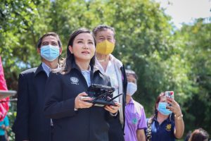 วันที่ 3 กันยายน 2563 ศาสตราจารย์ นฤมล ภิญโญสินวัฒน์ รัฐมนตรีช่วยว่าการกระทรวงแรงงาน พร้อมด้วย ดร.ภาคิน สมมิตรธนกุล ผู้ช่วยเลขานุการรัฐมนตรีว่าการกระทรวงแรงงาน และผู้บริหารกระทรวงแรงงาน เยี่ยมชมและมอบวุฒิบัตรแก่ผู้เข้ารับการฝึกหลักสูตรการควบคุมอากาศยานไร้คนขับ (Drone) เพื่อการเกษตร ณ ศูนย์เรียนรู้ชุมชนคลอง 2 อ.ไทยน้อย จ.นนทบุรี