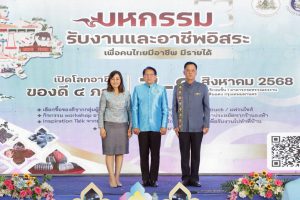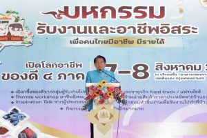 โดยภายในงานยังมีร้านธงฟ้าราคาประหยัดจากกระทรวงพาณิชย์ ผู้ประกอบการแฟรนไชส์ และ Food Truck ที่มาจำหน่ายสินค้าอาหารและเครื่องดื่ม รวมทั้งให้คำปรึกษาแก่ผู้สนใจเริ่มต้นอาชีพอิสระ งานจัดขึ้นระหว่างวันที่ 7 – 8 สิงหาคม 2568 ตั้งแต่เวลา 09.00 – 16.00 น. ณ กระทรวงแรงงาน ถนนมิตรไมตรี ดินแดง กรุงเทพฯ สำหรับผู้ที่ไม่สามารถเดินทางมาร่วมงานได้ สามารถติดตาม Live สด การจำหน่ายสินค้าของกลุ่มผู้รับงานไปทำที่บ้านได้ทางเพจ Facebook : กรมการจัดหางาน หรือสอบถามข้อมูลเพิ่มเติมได้ที่ สายด่วนกระทรวงแรงงาน โทร. 1506 กด 2 กรมการจัดหางาน หรือ สายด่วนกรมการจัดหางาน โทร. 1694