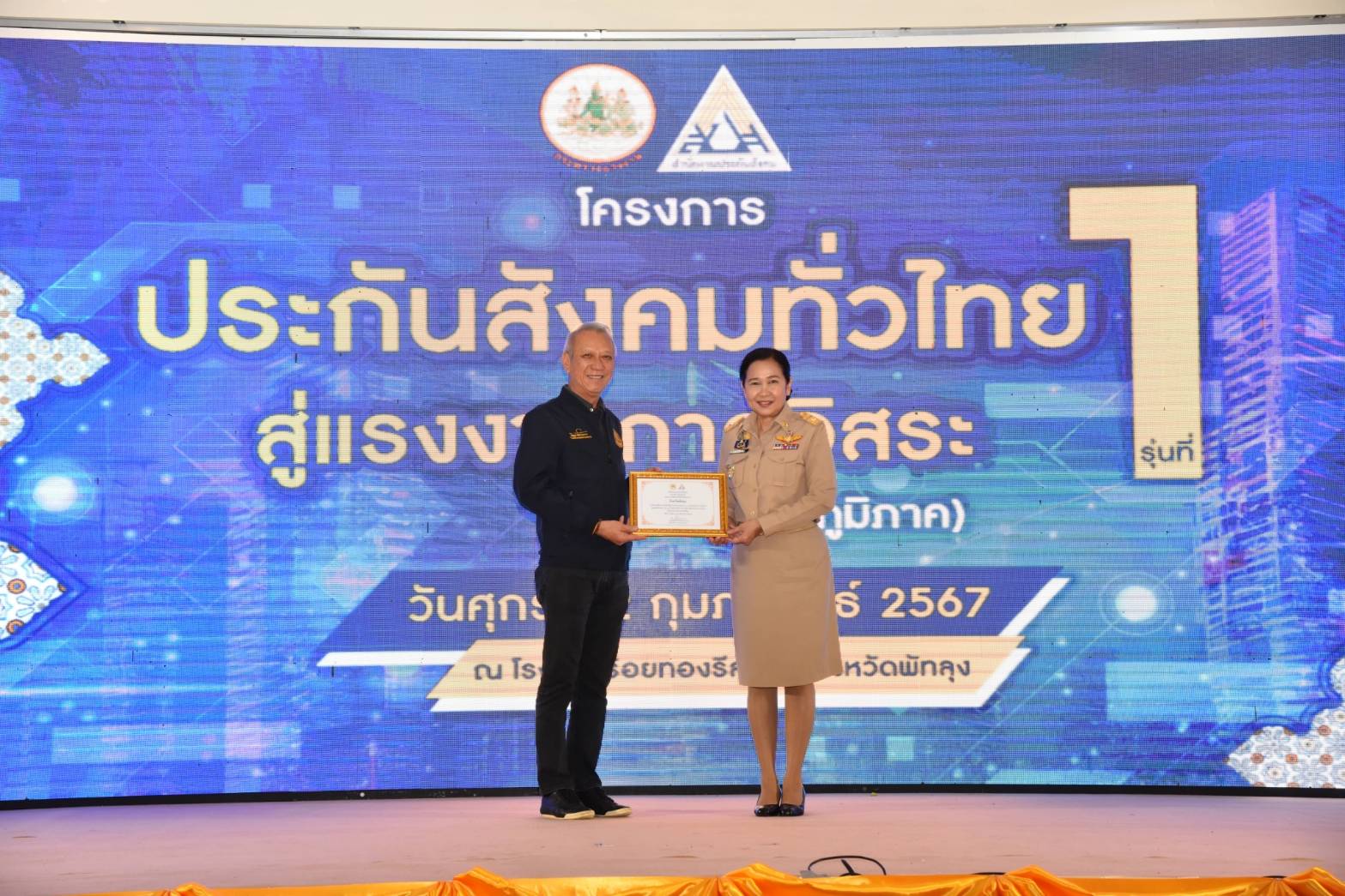 On February 2, 2024, at 10.00 hours, the Labour Minister, Mr. Phiphat Ratchakitprakarn, chaired the opening of the Social Security for Independent Workers Throughout Thailand Project for the first batch. Governor of Phatthalung Province, Mrs. Nisakorn Wisitsarat, from the Prime Minister’s Secretariat’s Office, performing duties for the Ministry of Labour, Mr. Phuchong Worasri, the Ministry of Labour’s Spokesperson (on Politics), Mr. Phumiphat Mueanchan, the Permanent Secretary of Labour, Mr. Pairoj Chotiksetian, the Social Security Office’s Secretary-General, Mr. Boonsong Thapchaiyut, heads of government agencies under the Ministry of Labour in Phatthalung Province, insured persons, networks, project participants and people in the area gave a welcome at the Roithong Resort Hotel in Phatthalung Province.