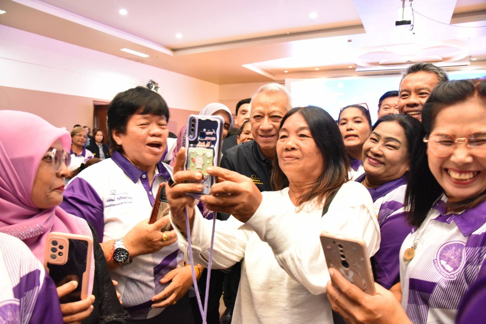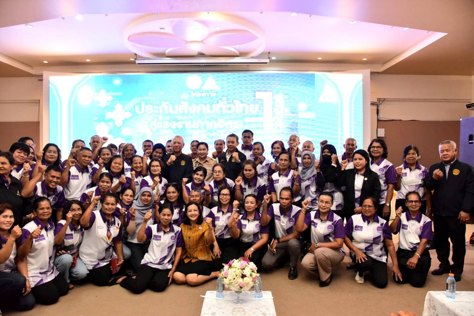 Mr. Phiphat continued that Phatthalung is the birthplace of the famous performing art, Manohra, and shadow puppets, which have been handed down as cultural heritage of the southern region. In addition, Phatthalung has a total of 53,566 people insured under Section 40, consisting of various groups of self-employed people, such as general contractors, farmers, and food processing groups. Many still lack social security protection principles under Section 40. Phatthalung is the province with the highest number of insured persons continuously sending contributions in the southern region and is ranked sixth in the country. The Social Security for Independent Workers Throughout Thailand Project was organized as a campaign to invite self-employed groups and provide access to Social Security Section 40, which protects insured persons in five dimensions, including compensation for loss of income from illness, disability, or death, and old age, and child support. Currently, throughout the country, there are 10,958,136 people insured under Section 40, 24,645 representatives of Social Security Networks, and the “Boworn” Network, a group of members of houses, temples, schools, and factories, totaling 265,214 people.