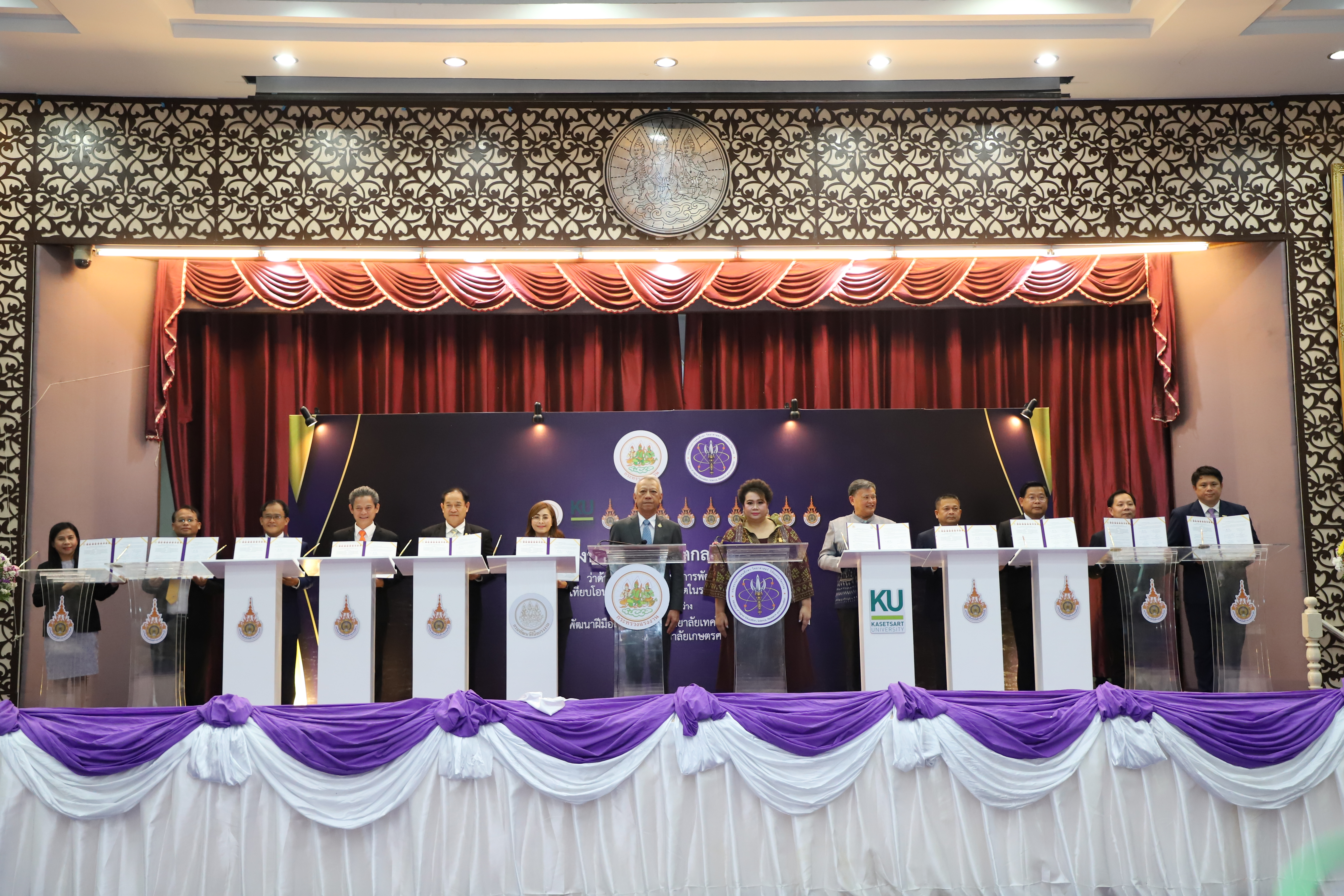 วันที่ 1 กุมภาพันธ์ 2567 นายพิพัฒน์ รัชกิจประการ รัฐมนตรีว่าการกระทรวงแรงงาน และนางสาวศุภมาส อิสรภักดี รัฐมนตรีว่าการกระทรวงการอุดมศึกษาวิทยาศาสตร์วิจัยและนวัตกรรม ร่วมเป็นประธานในพิธีลงนามบันทึกข้อตกลงความร่วมมือว่าด้วยการจัดการศึกษาการพัฒนาฝีมือแรงงาน เทียบโอน และสะสมหน่วยกิตในระบบธนาคารหน่วยกิต ระหว่าง กรมพัฒนาฝีมือแรงงาน มหาวิทยาลัยเทคโนโลยีราชมงคล 9 แห่งและมหาวิทยาลัยเกษตรศาสตร์ โดยมี นายสิรภพ ดวงสอดศรี ผู้ช่วยรัฐมนตรีประจำกระทรวงแรงงาน นายอารี ไกรนรา เลขานุการรัฐมนตรีว่าการกระทรวงแรงงาน นายไพโรจน์ โชติกเสถียร ปลัดกระทรวงแรงงาน นายวรรณรัตน์ ศรีสุขใส รองปลัดกระทรวงแรงงาน นายเดชา พฤกษ์พัฒนรักษ์ รองปลัดกระทรวงแรงงาน นางสาวบุปผา เรืองสุด อธิบดีกรมพัฒนาฝีมือแรงงาน นายนันทชัย ปัญญาสุรฤทธิ์ ผู้ตรวจราชการกระทรวงแรงงาน อธิการบดีมหาวิทยาลัยเทคโนโลยีราชมงคล 9 แห่ง และอธิการบดีมหาวิทยาลัยเกษตรศาสตร์ ลงนามในบันทึกข้อตกลงร่วมกัน นอกจากนี้ยังมีผู้บริหารในสังกัดกระทรวงแรงงาน ผู้บริหารมหาวิทยาลัยเทคโนโลยีราชมงคล 9 แห่ง และผู้บริหารมหาวิทยาลัยเกษตรศาสตร์ ร่วมพิธีด้วย ณ ห้องประชุมกระทรวงแรงงาน ชั้น 5 อาคารกระทรวงแรงงาน
