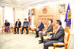 วันที่ 19 กันยายน 2567 เวลา 13.30 น.นายพิพัฒน์ รัชกิจประการ รัฐมนตรีว่าการกระทรวงแรงงาน ให้การต้อนรับ นายสุรศักดิ์ พันธ์เจริญวรกุล รัฐมนตรีช่วยว่าการกระทรวงศึกษาธิการ และคณะผู้บริหารสถานประกอบการ จำนวน 22 แห่ง ในโอกาสเข้าพบเพื่อหารือยความร่วมมือด้านการส่งเสริมการมีงานทำให้นักเรียน นักศึกษาในช่วงปิดภาคเรียนหรือช่วงว่างจากการเรียน โดยมี นายไพโรจน์ โชติกเสถียร ปลัดกระทรวงแรงงาน นายสมชาย มรกตศรีวรรณ อธิบดีกรมการจัดหางาน เข้าร่วม ณ ห้องจัตุมงคล ชั้น 6 อาคารกระทรวงแรงงาน