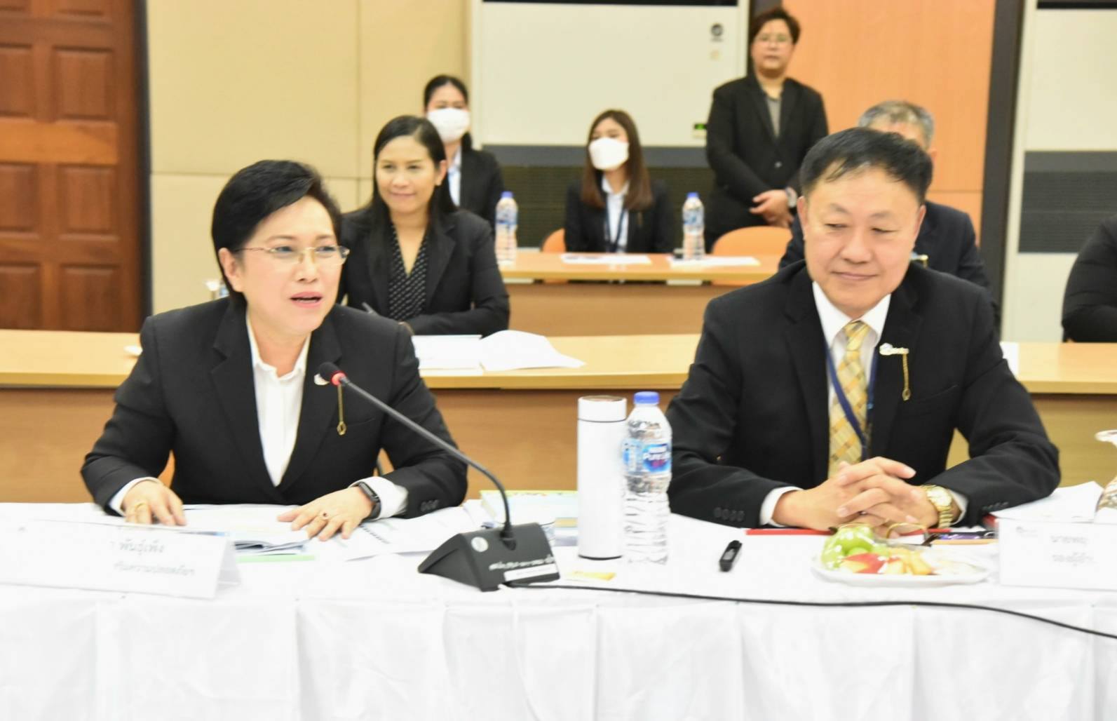 Mr. Phiphat then delivered policies to the executives and officials of the Office of the Basic Education Commission. He asked that the Office of the Basic Education Commission carry out the government policy in protecting workers’ rights to ensure workplace safety, leading to a long-term reduction in statistics of occupational hazards and diseases. He asked that the Office of Basic Education Commission cooperate with agencies, both within the Ministry of Labour and related ministries such as the Ministry of Interior, the Ministry of Education, and the Ministry of Higher Education, Science, Research and Innovation, to join in the integration of workplace safety to cover all target groups, people, and communities, focusing on shared results to create preventive safety for all sectors in society.