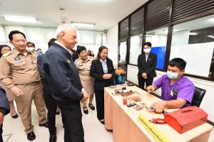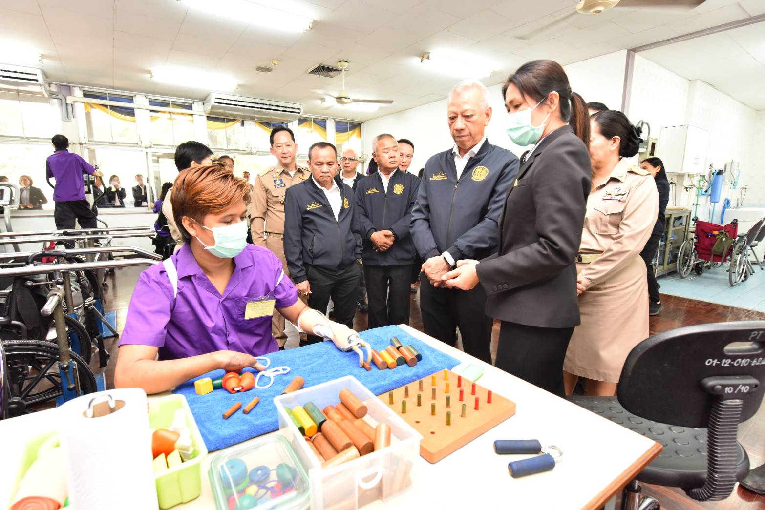 On January 15, 2024, the Labour Minister, Mr. Phiphat Ratchakitprakarn, chaired a visit to the Worker Rehabilitation Center Region 1 in Pathum Thani to acknowledge the mission and work results. They also paid a visit to encourage insured persons with disabilities. The Assistant to the Labour Minister, Mr. Siraphop Duangsodsri, Secretariat to the Labour Minister, Mr. Aree Krainara, the Social Security Office’s Secretary-General, Mr. Boonsong Thapchaiyut, the Ministry of Labour’s Inspector-General, Mr. Nantachai Panyasurarit, and the Ministry of Labour’s executives joined. Director of the Worker Rehabilitation Center Region 1, Pathum Thani, Ms. Saranya Suwannawat, heads of government agencies under the Ministry of Labour in Pathum Thani, and those receiving rehabilitation gave a welcome at the Worker Rehabilitation Center Region 1, Bang Phun Subdistrict, Mueang District, Pathum Thani Province.