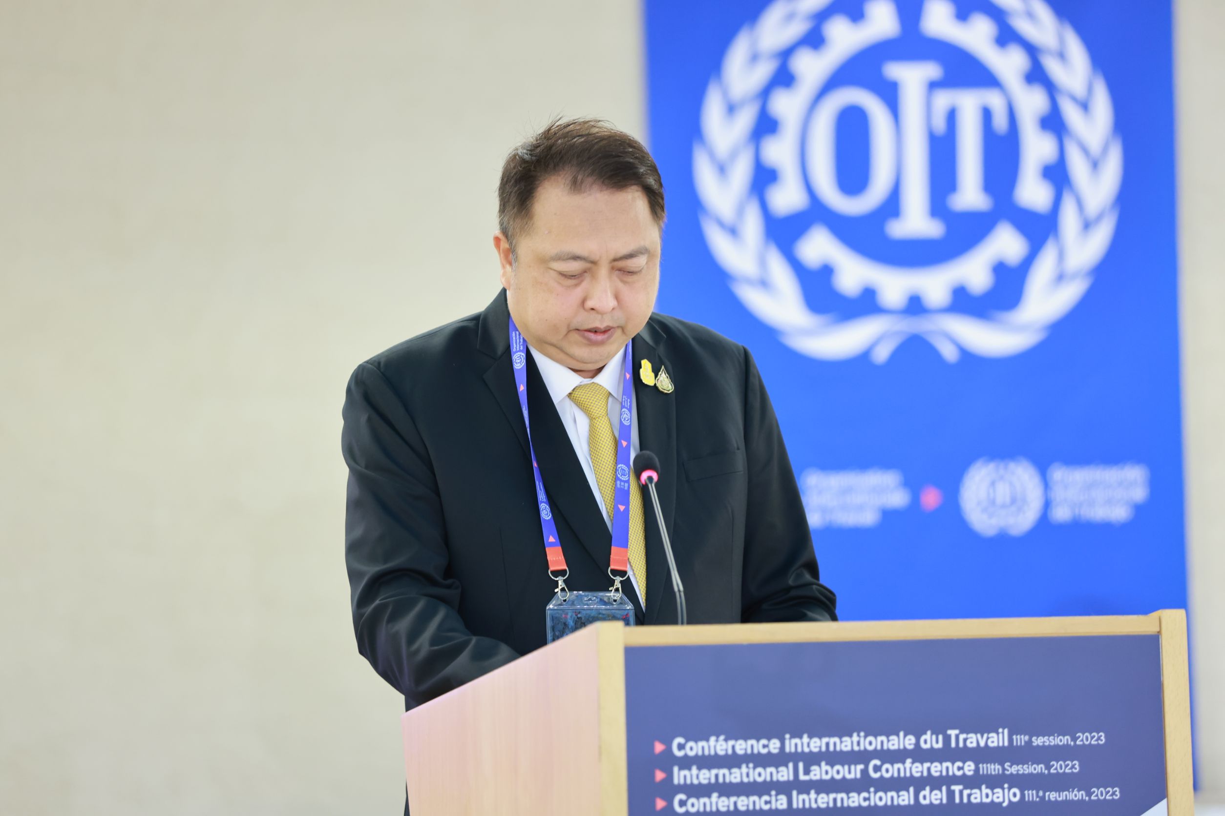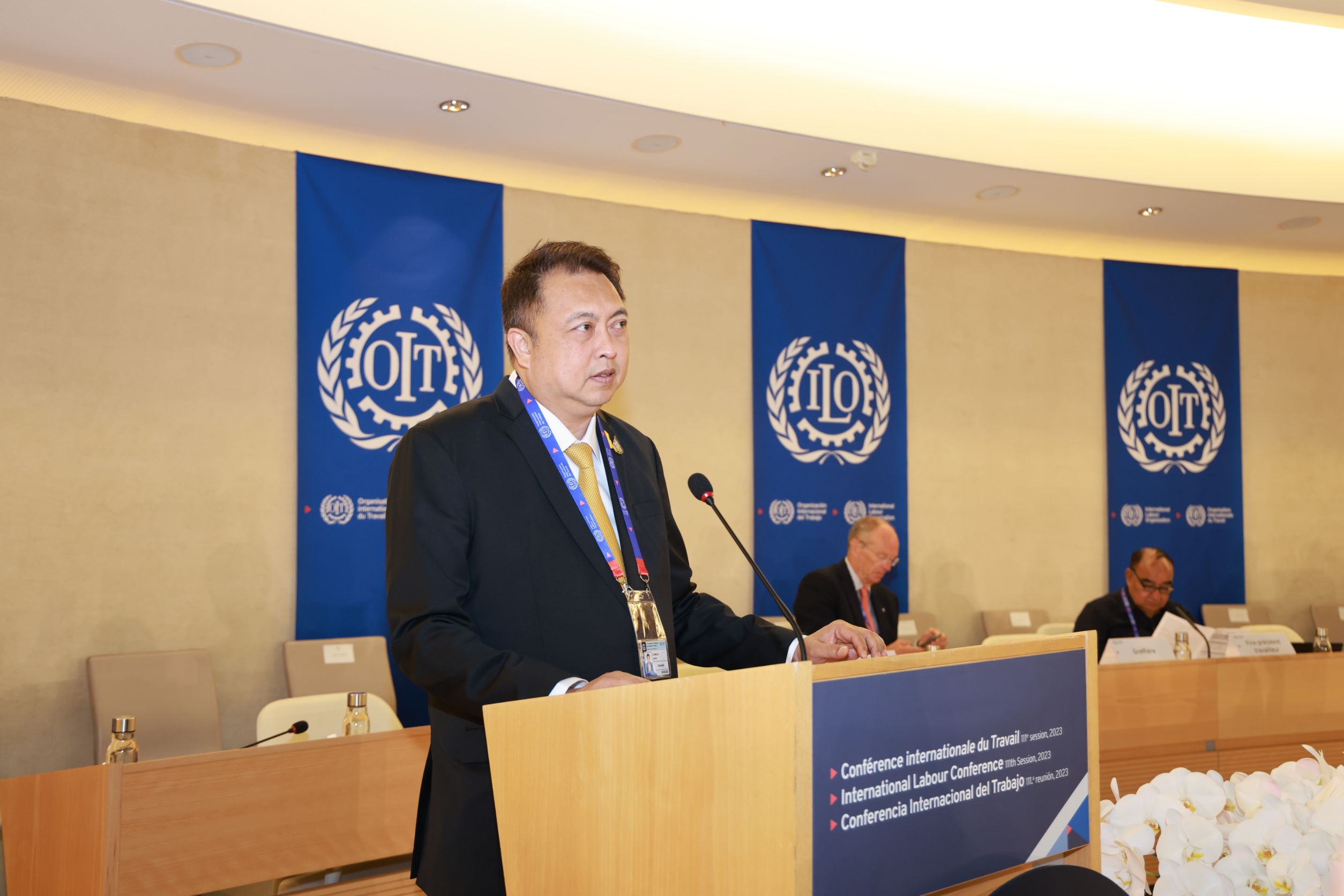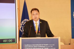 On June 13, 2023, the Labour Minister, Mr. Suchart Chomklin, gave a statement at the 111th Session of the International Labour Conference (ILC) in Geneva, Switzerland. The Permanent Secretary of Labour, Mr. Boonchob Suttamanaswong, the Thai Ambassador and Permanent Representative in Geneva, Mrs. Supattra Srimaitreepitak, the Ministry of Labour’s senior executives, government representatives, employer representatives, and employee representatives, also attended the meetings and listened to the statements as well.